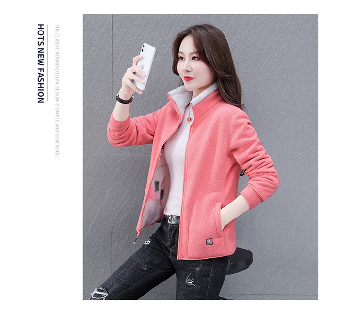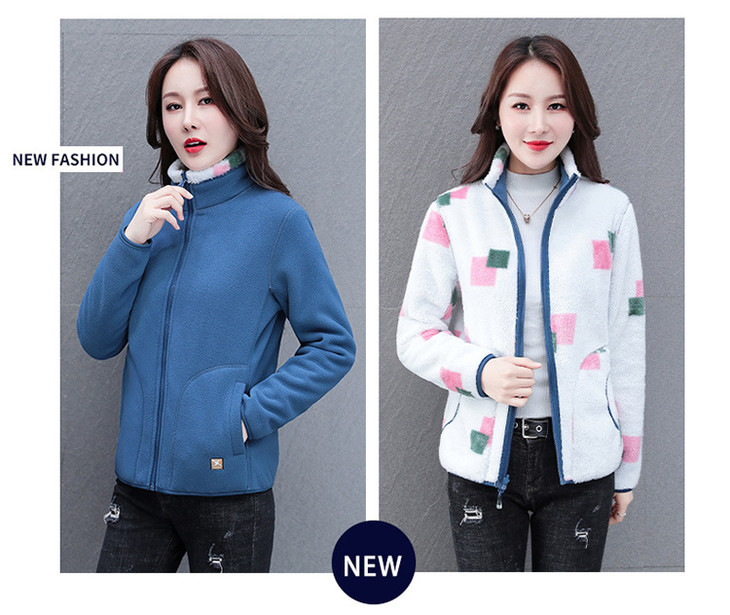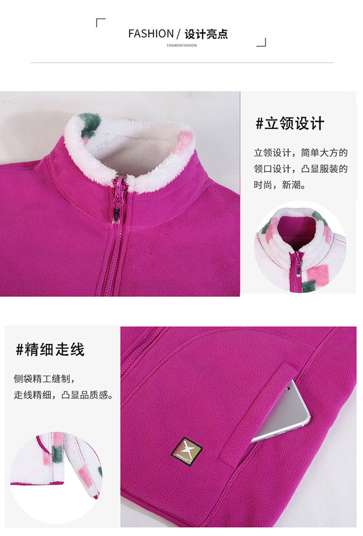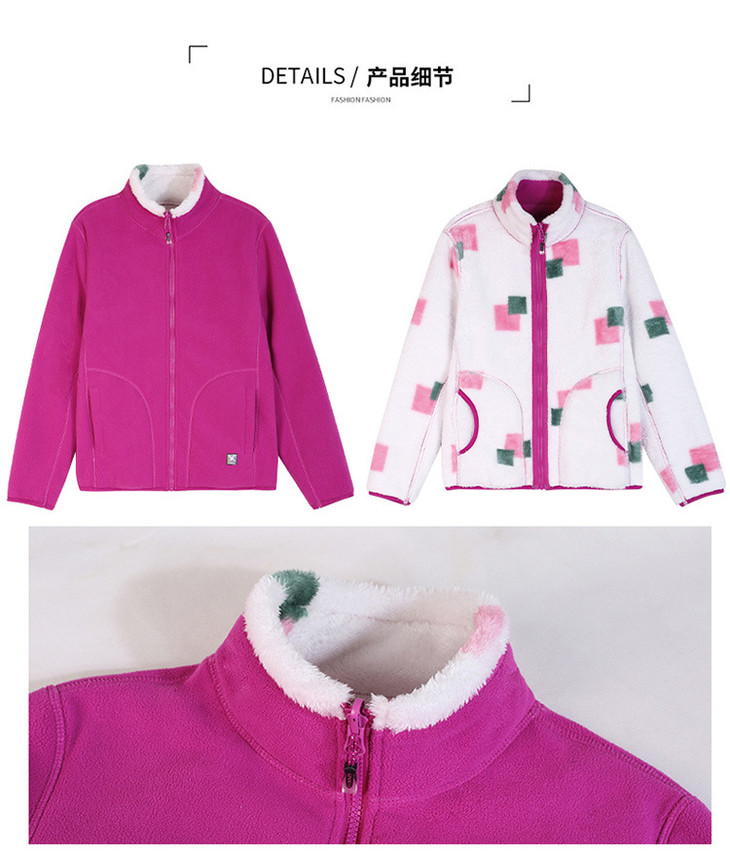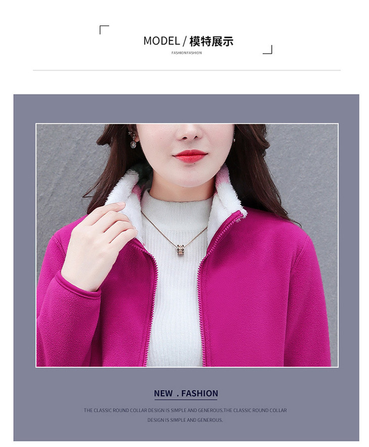LJ-8696 双面穿摇粒绒外套女秋冬装2021新款时尚立领中老年妈妈保暖抓绒衣