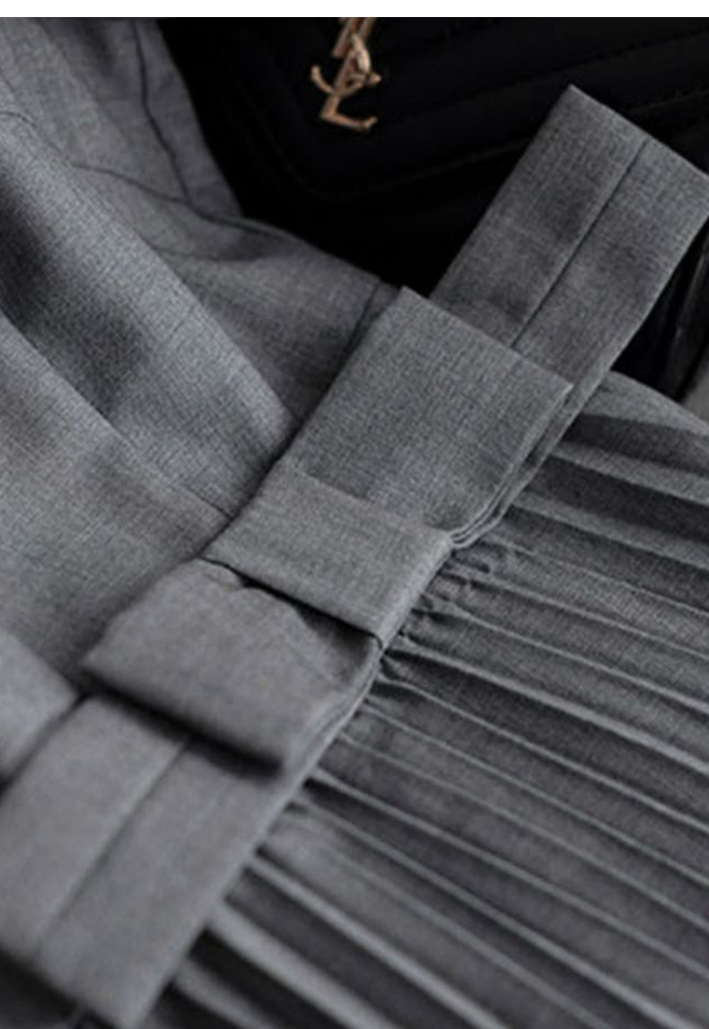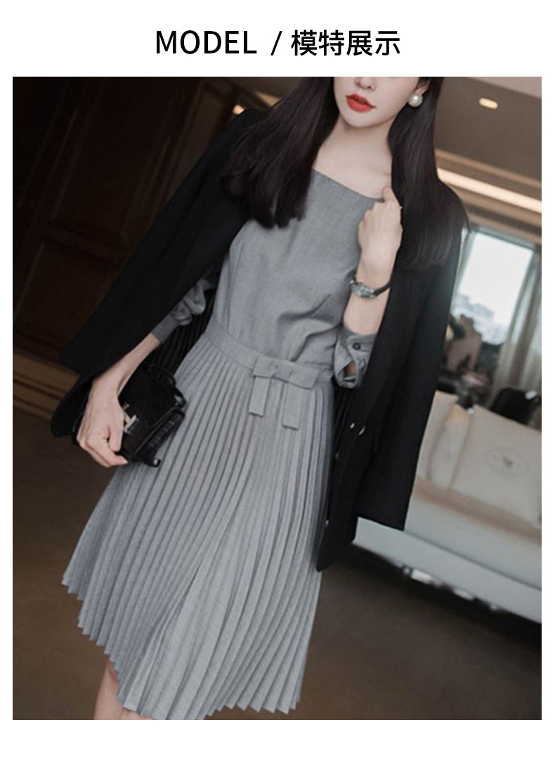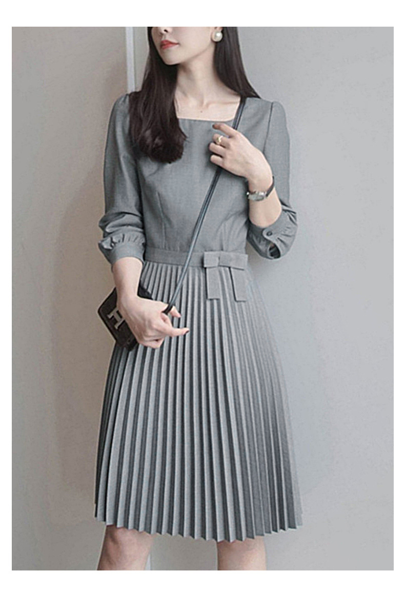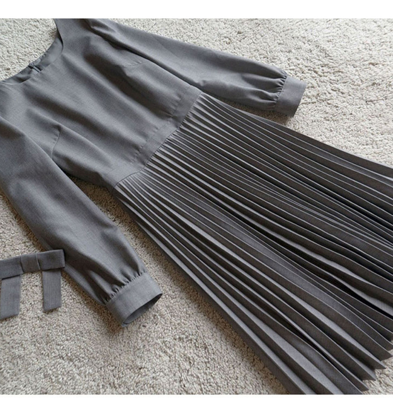 丁摩 秋季新款圆领长袖灰色连衣裙女气质高端女神百褶中裙 5ZF-3251