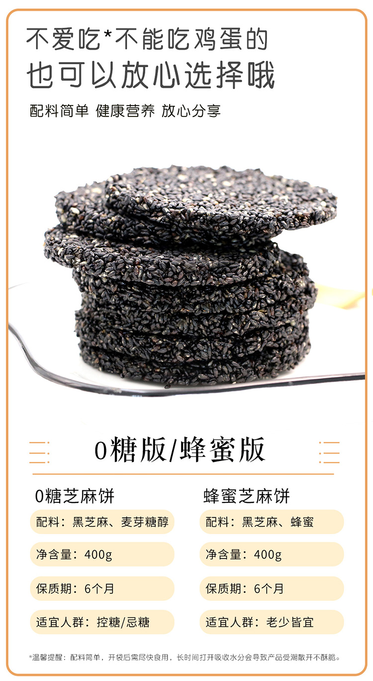 新品上市【千岛农品】柴夫黑芝麻饼400g芝麻饼
