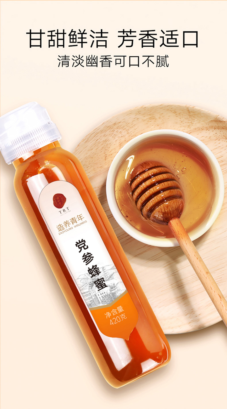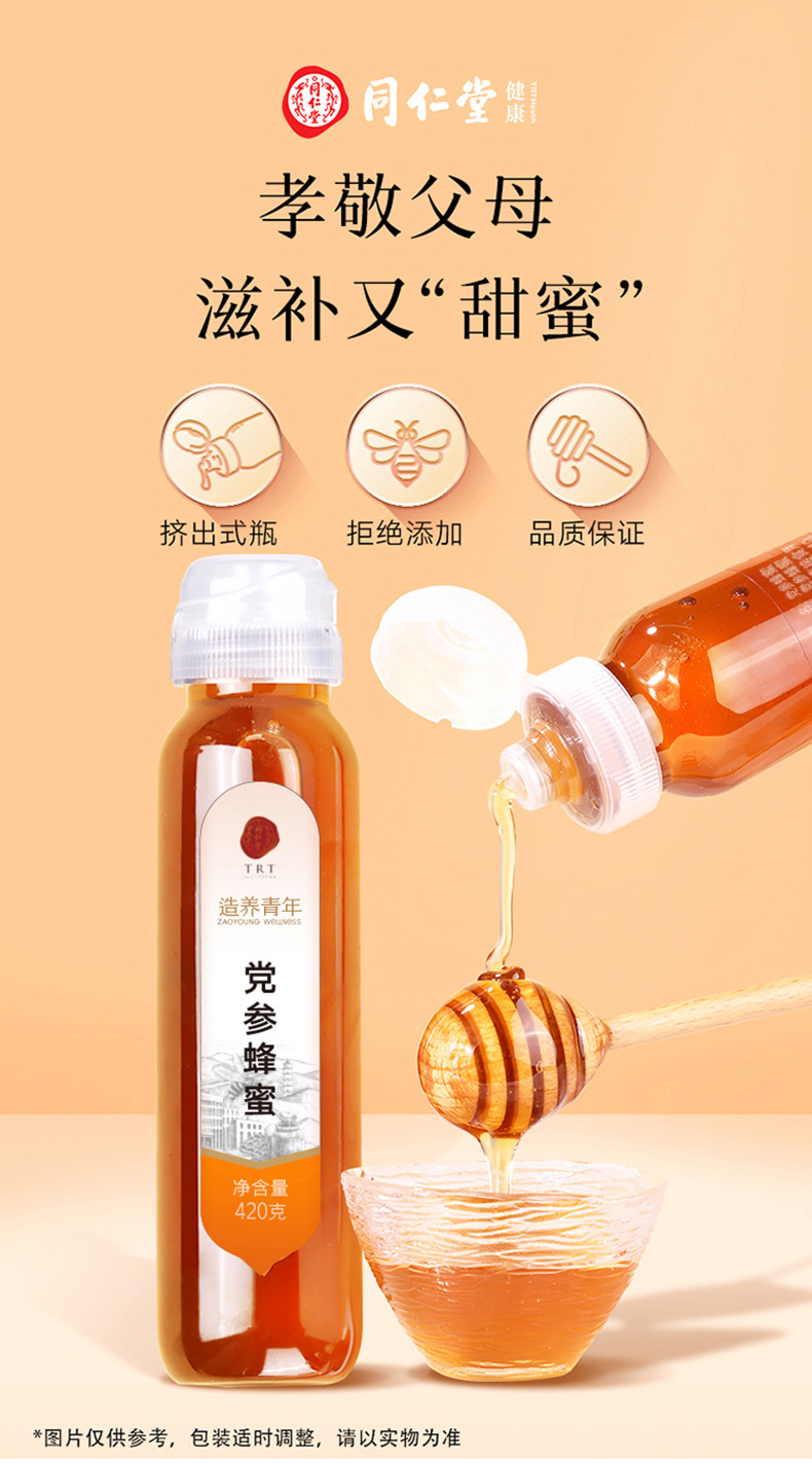 【正宗同仁堂品牌】北京同仁堂 党参蜂蜜420克 清香怡人 纯蜂蜜拒绝添加掺杂 浓稠滋补 便携小瓶装挤压不沾手SY