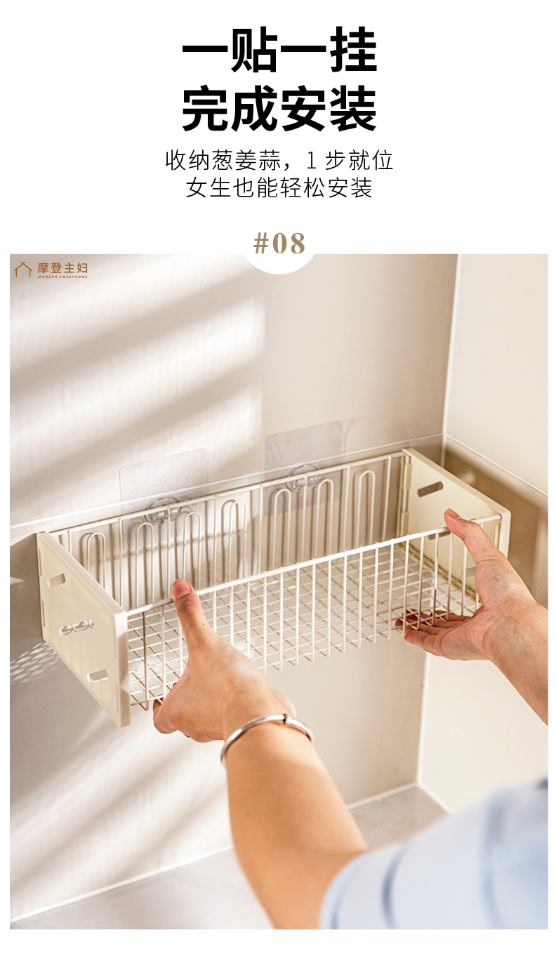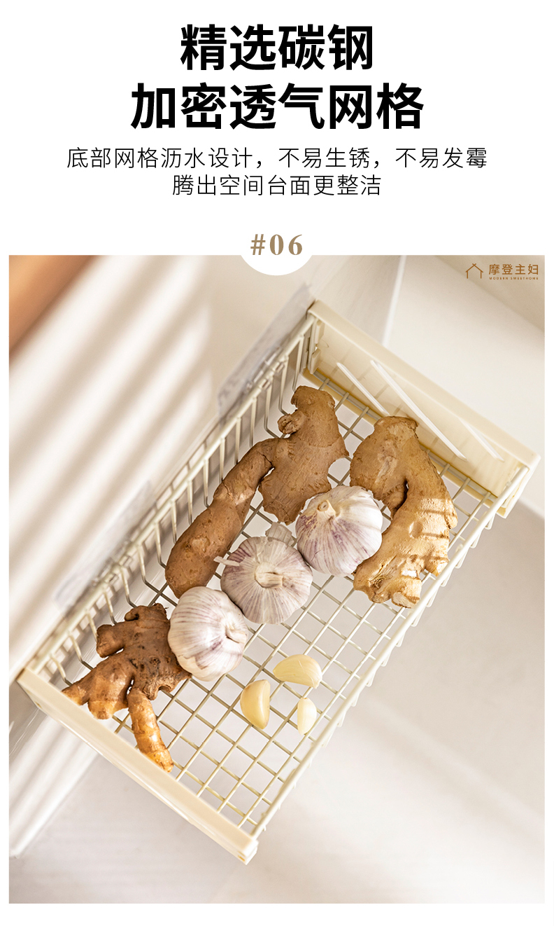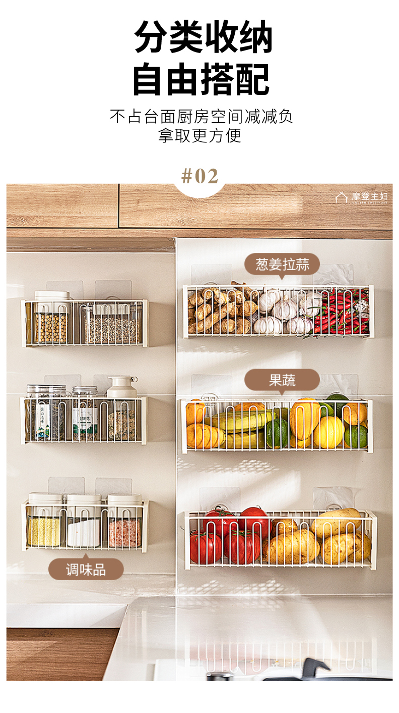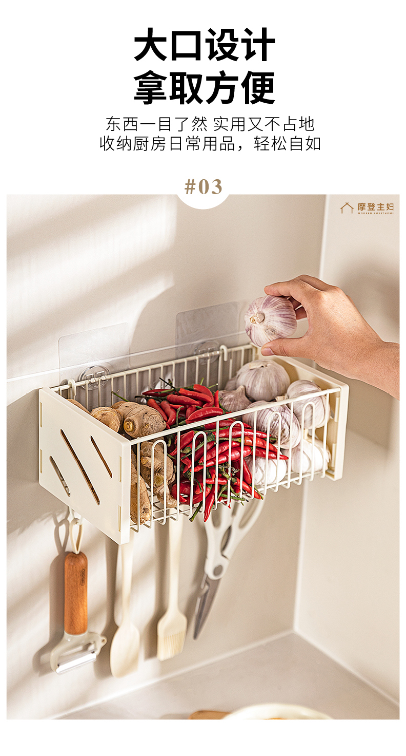 摩登主妇葱姜蒜收纳盒厨房免打孔壁挂调料置物架生姜大蒜收纳神器
