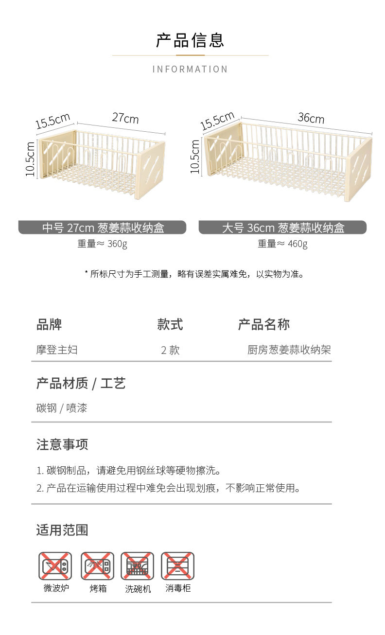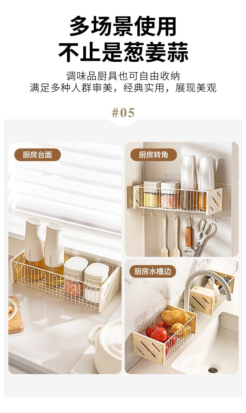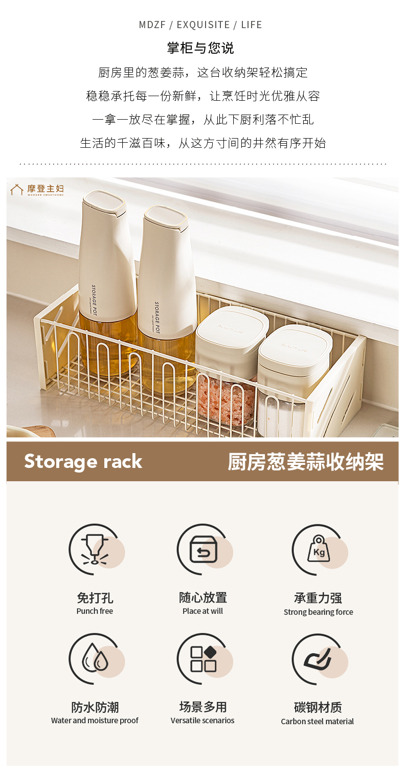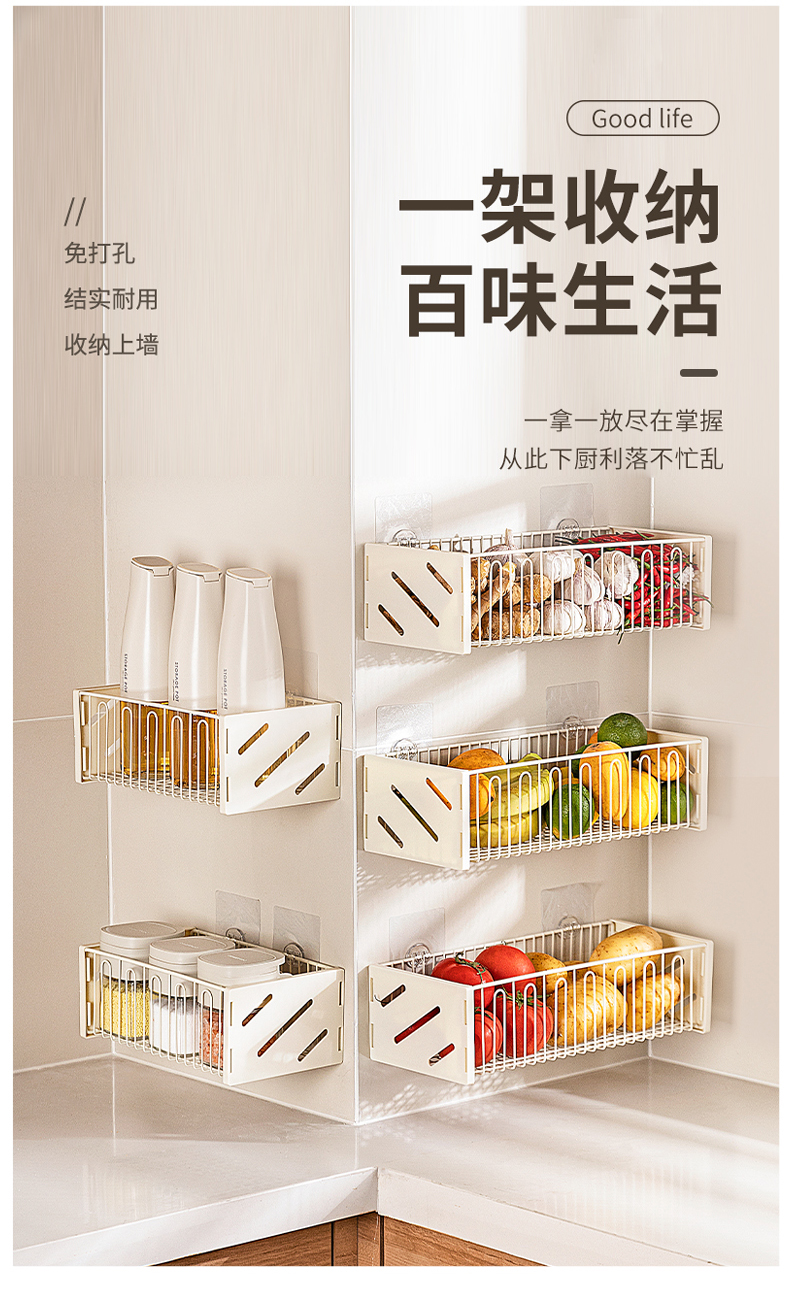摩登主妇葱姜蒜收纳盒厨房免打孔壁挂调料置物架生姜大蒜收纳神器