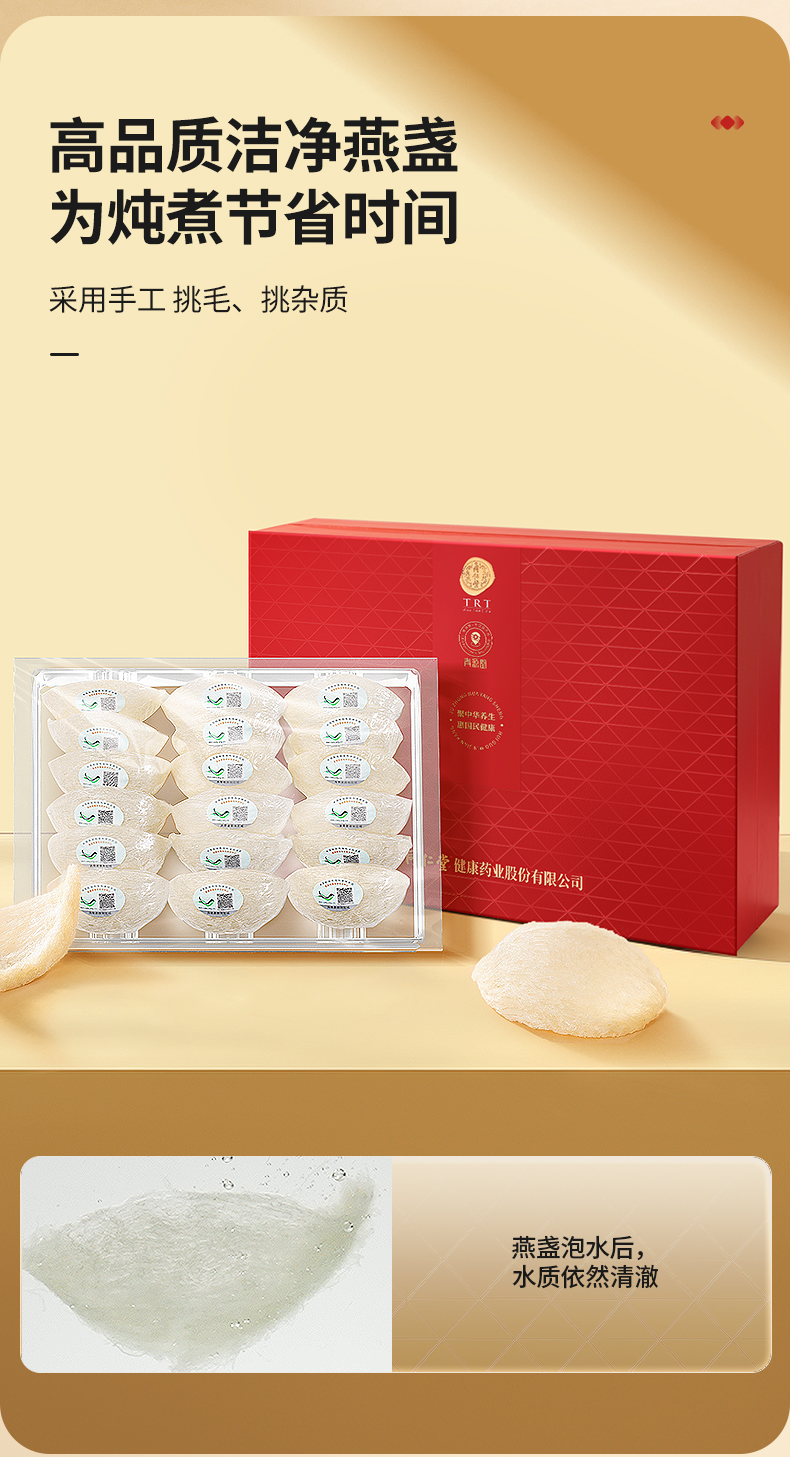 【正宗同仁堂品牌】北京同仁堂青源堂 印尼进口燕窝小盏100克礼盒溯源干燕窝老人孕妇送长辈孝敬父母女营养滋补SY