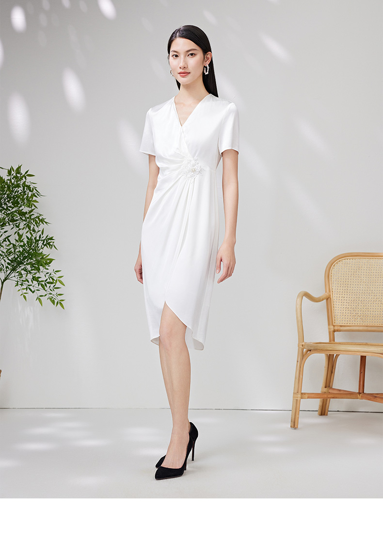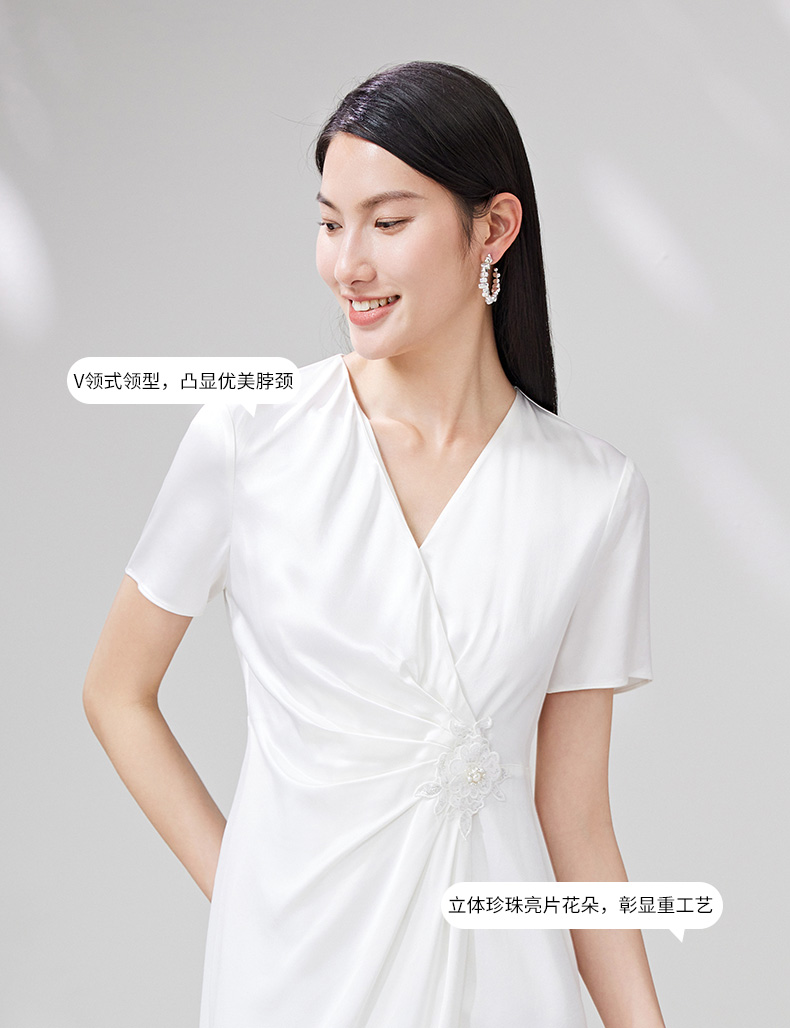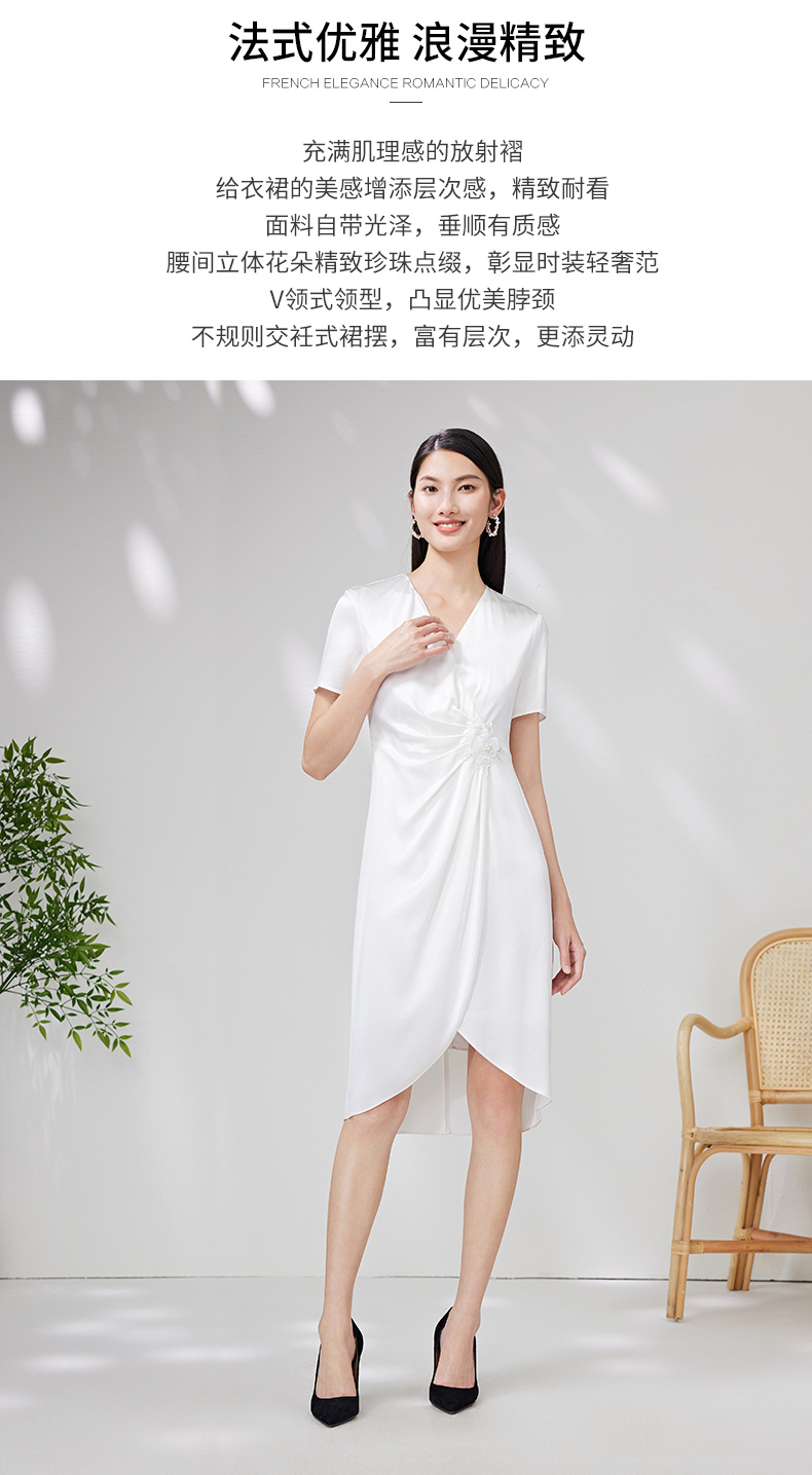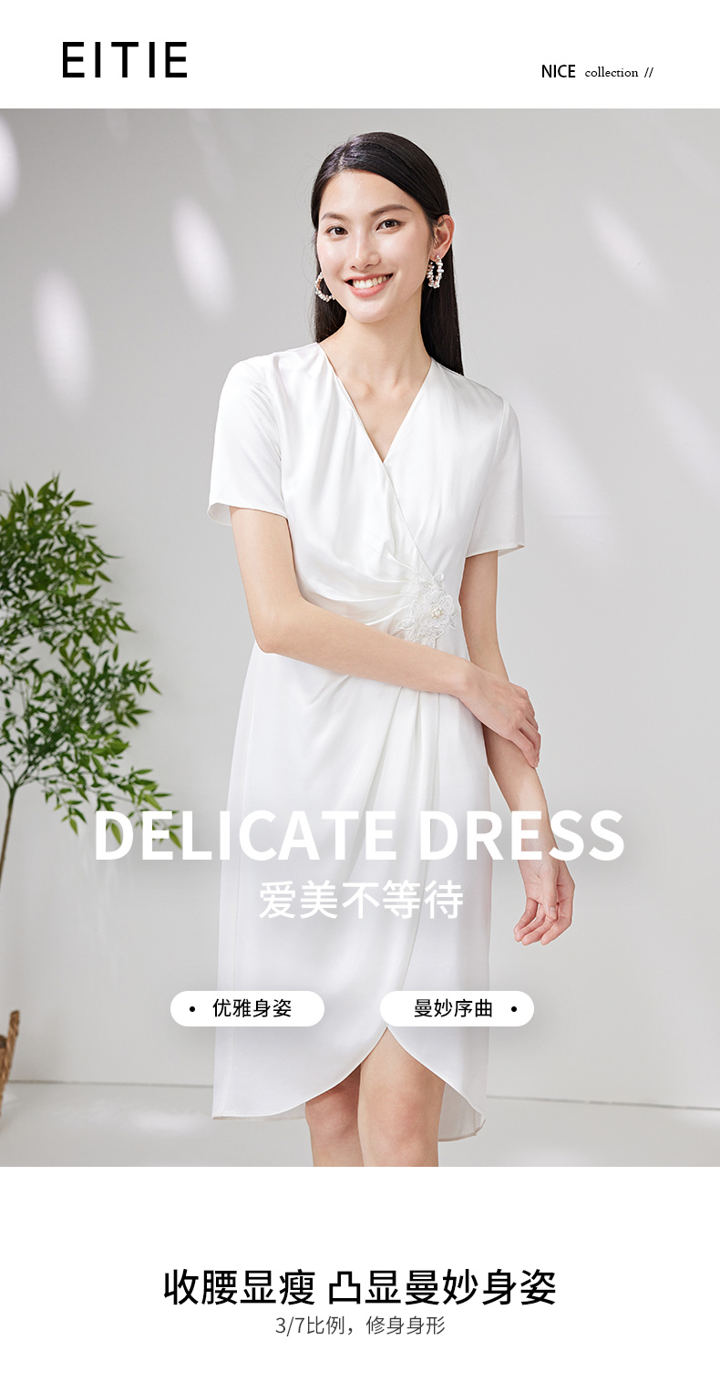 EITIE爱特爱夏季新款洋气优雅显瘦不规则裙摆礼服连衣裙7077701
