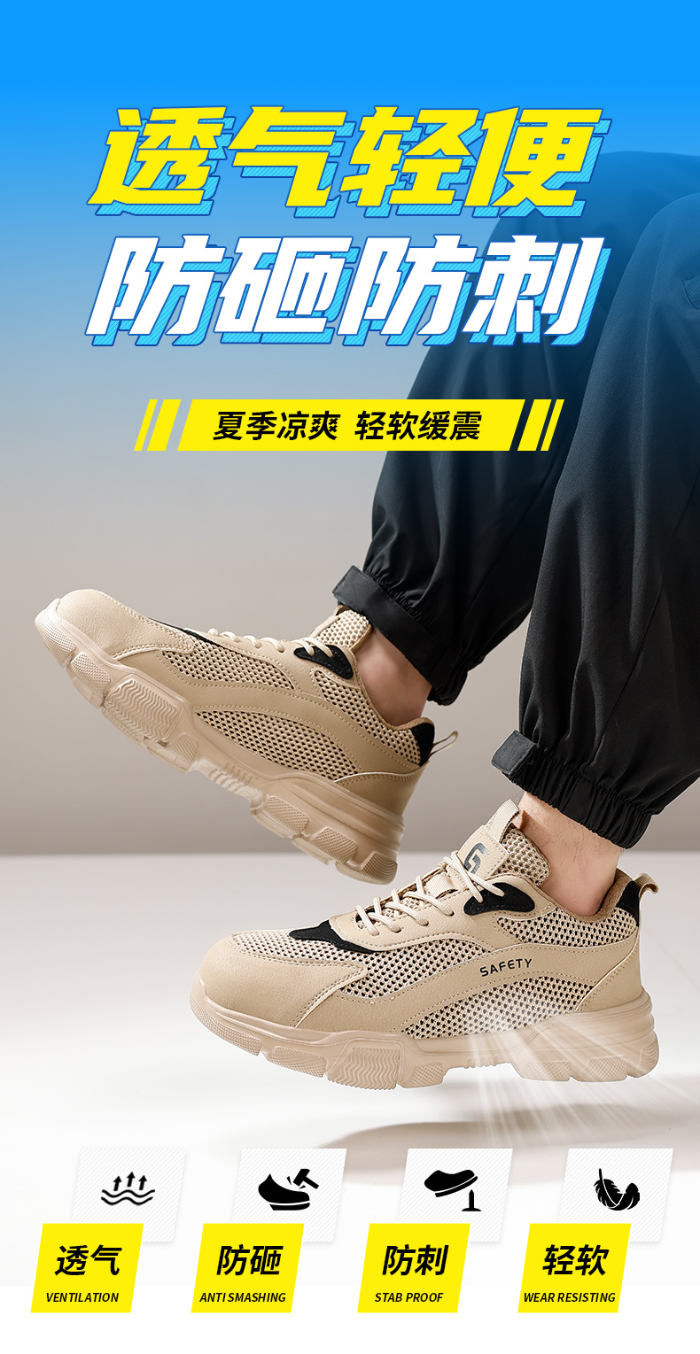 新品夏季透气防砸防刺轻便劳保鞋大网眼透气安全鞋防护鞋钢包头EVA