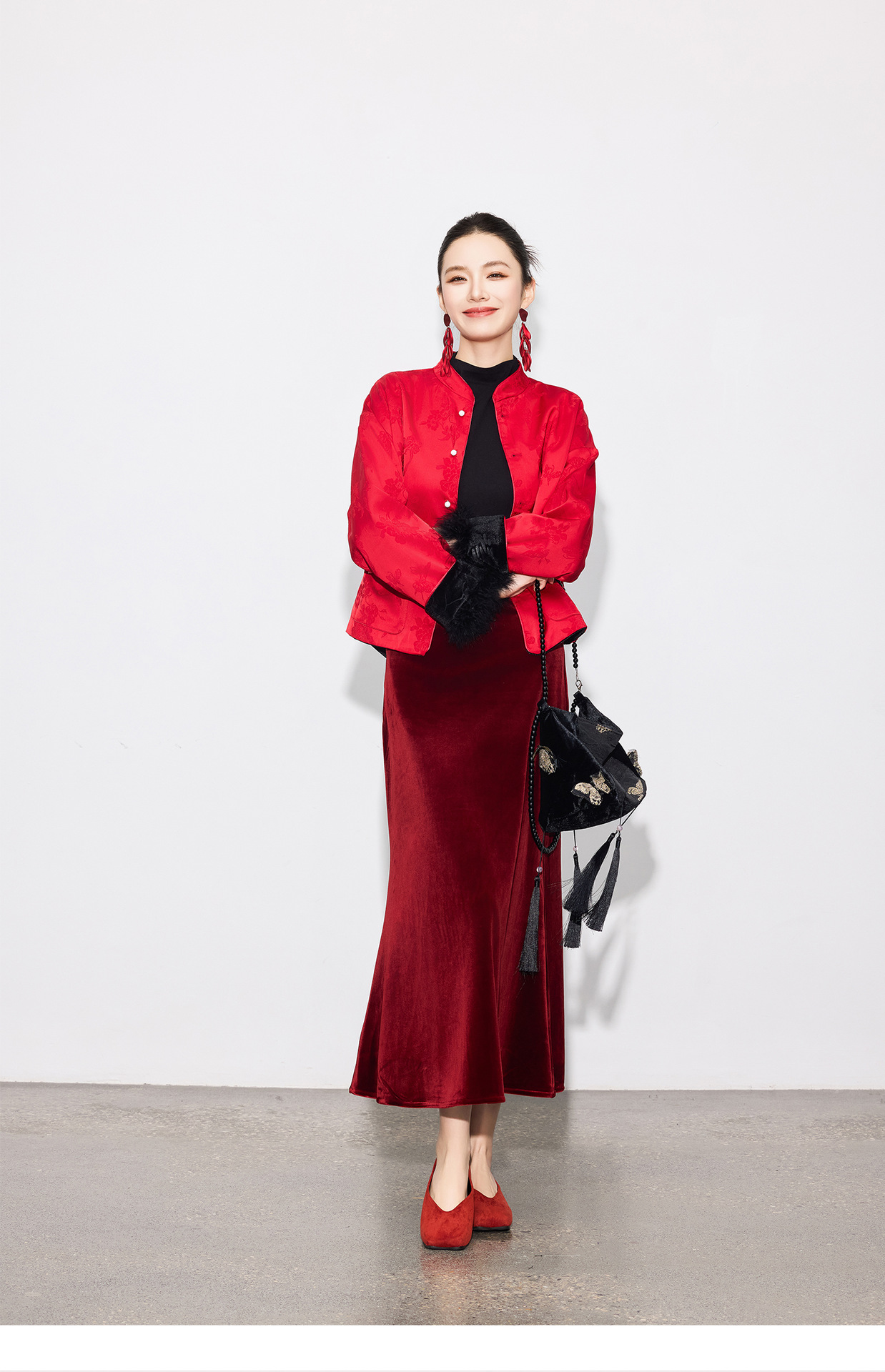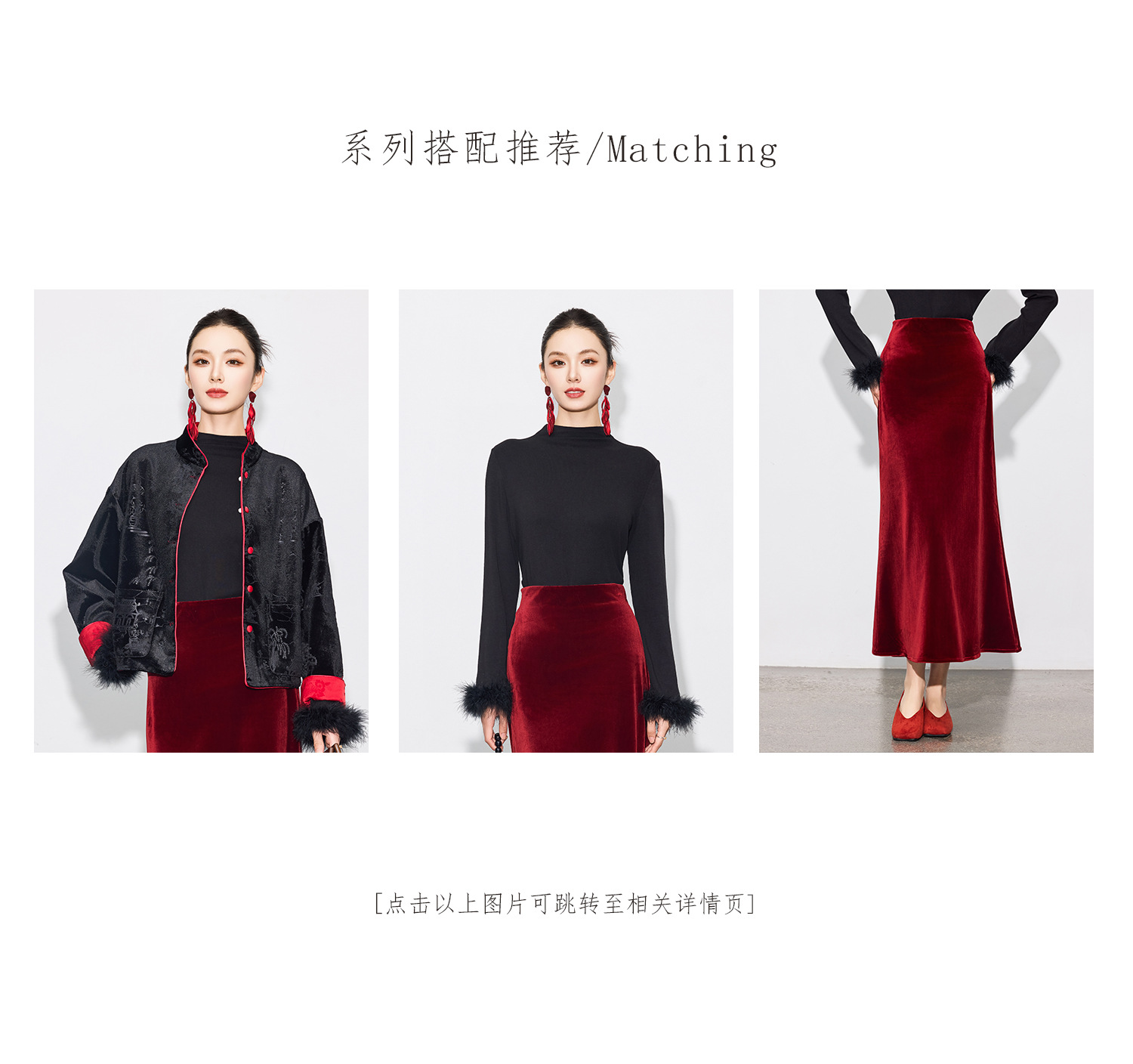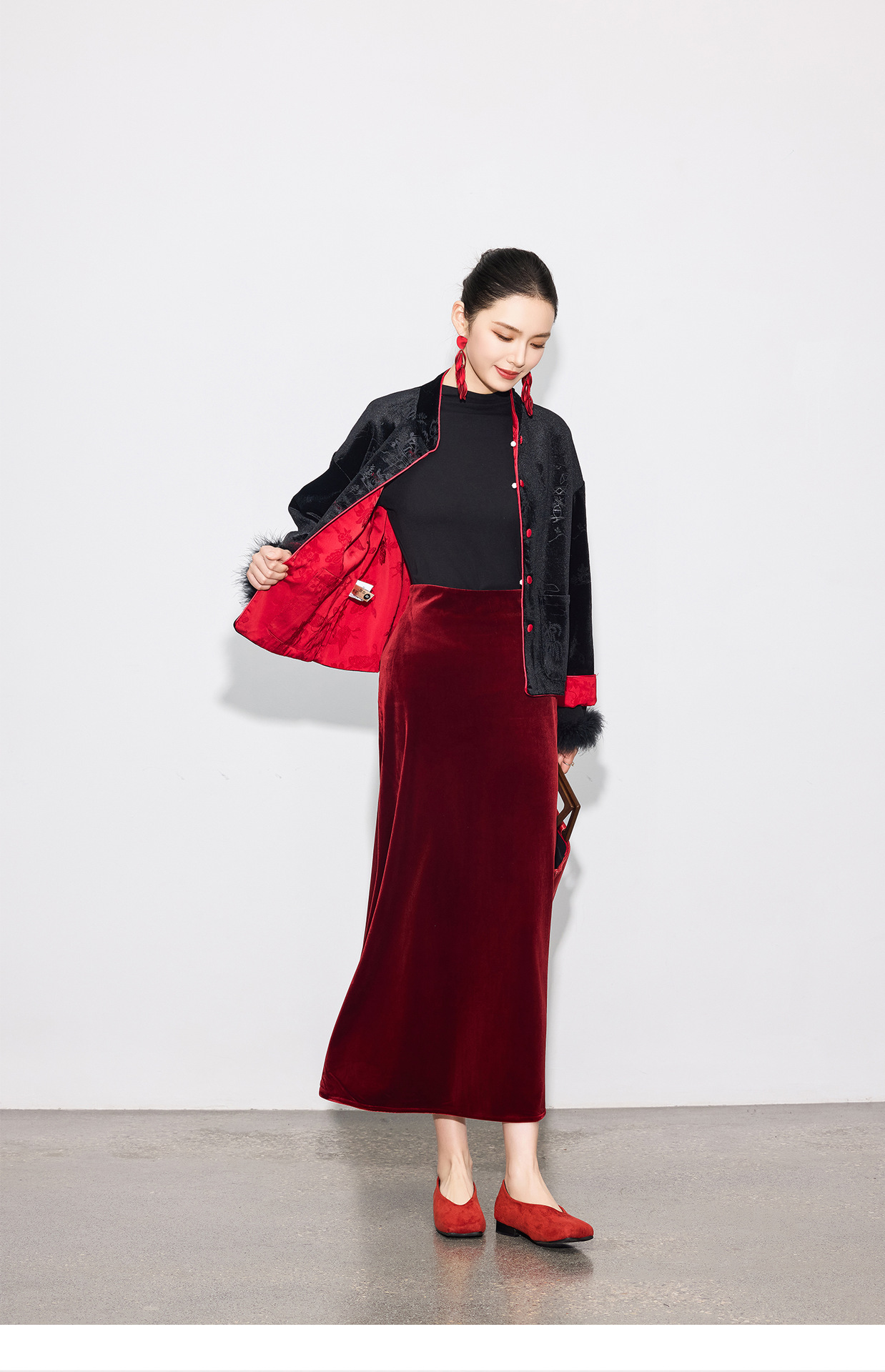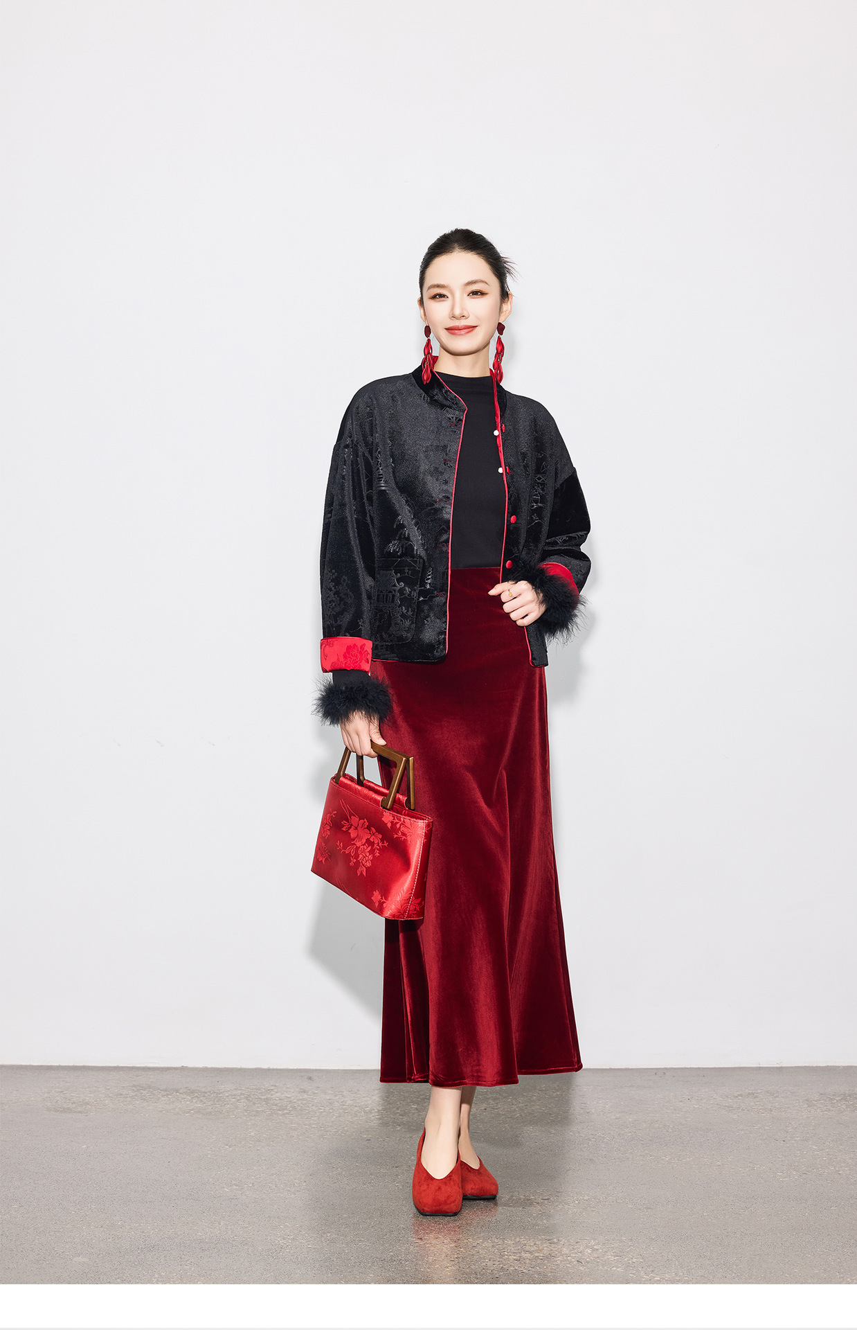【丁摩】秋季新中式双面穿丝绒提花上衣改良唐装红色外套女5786