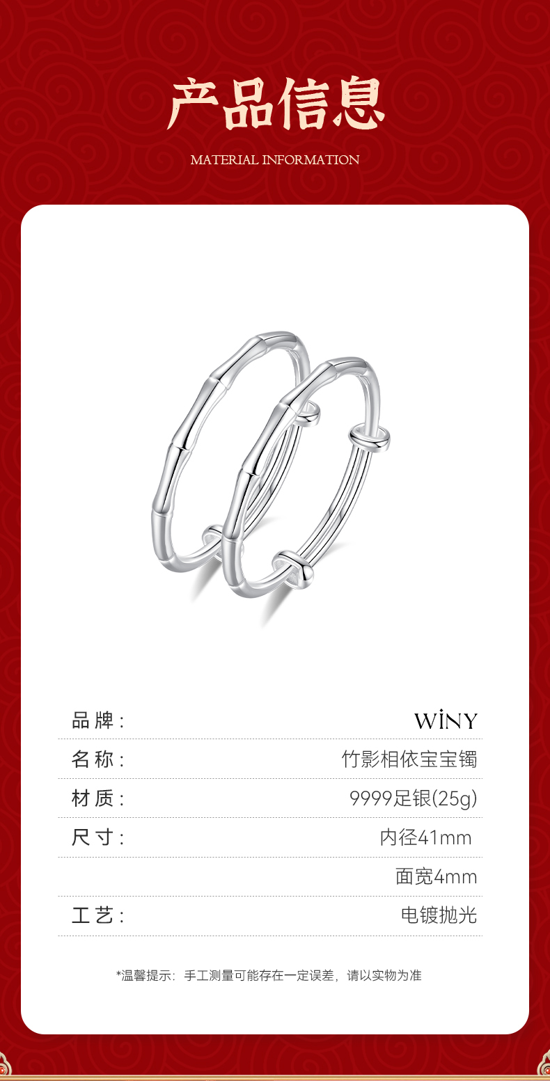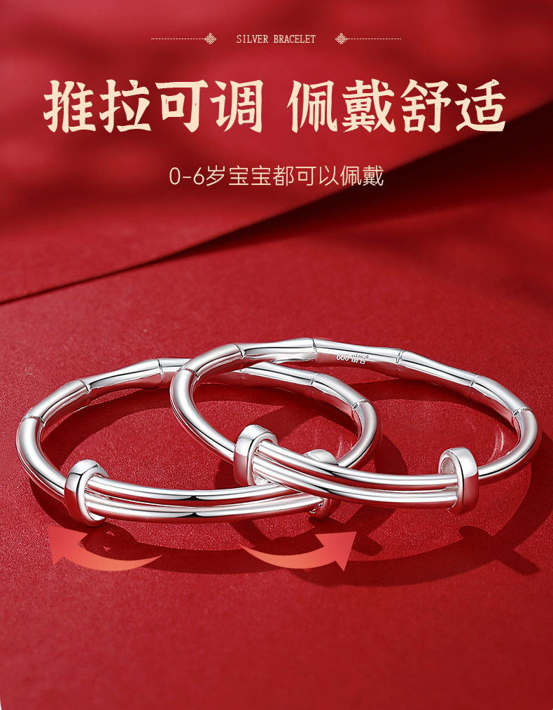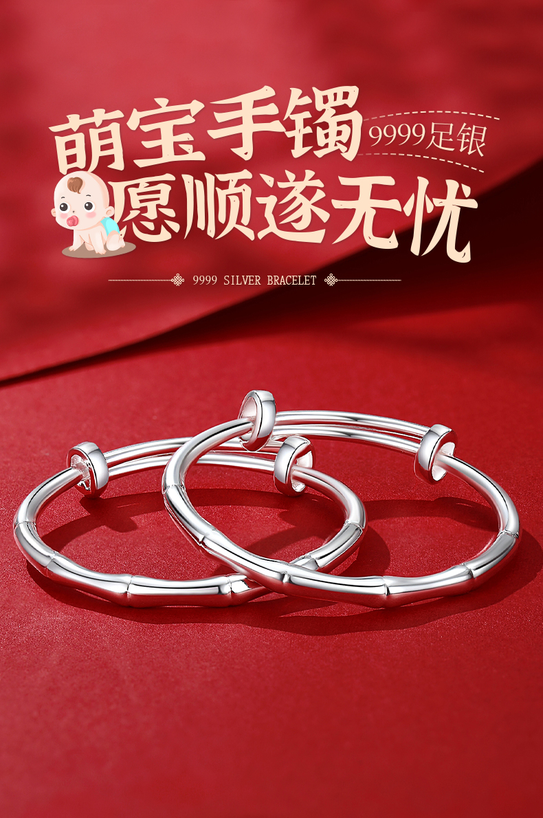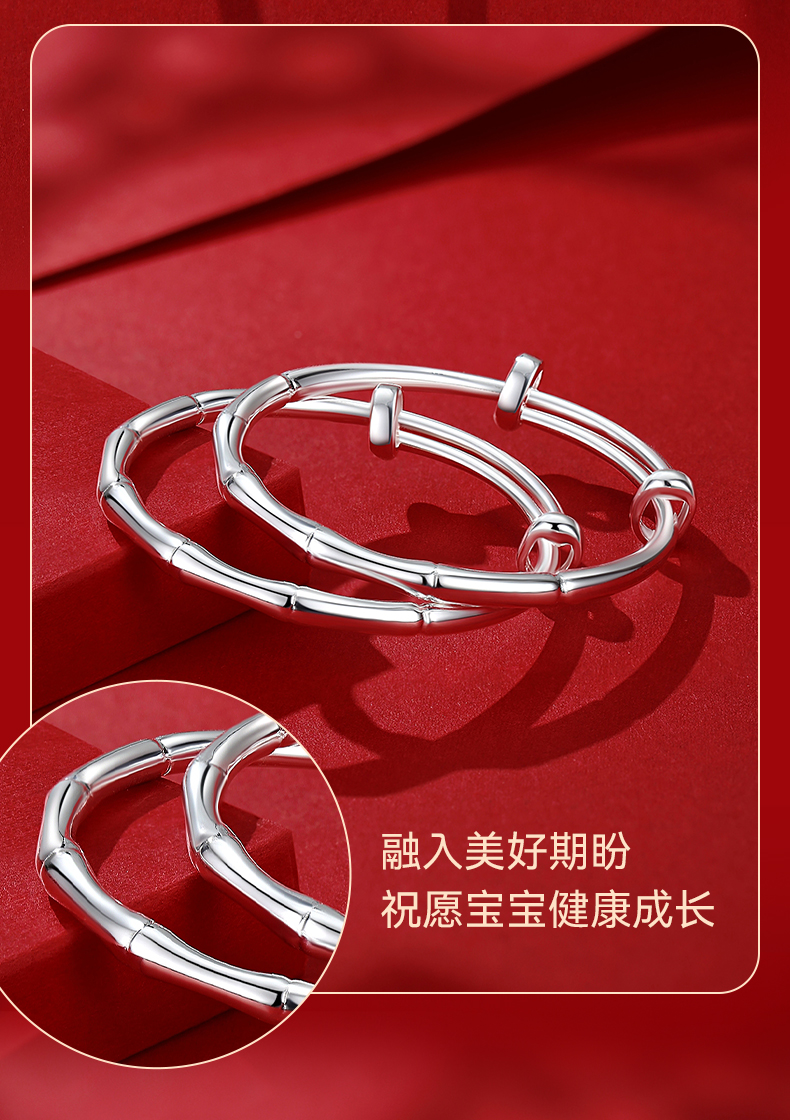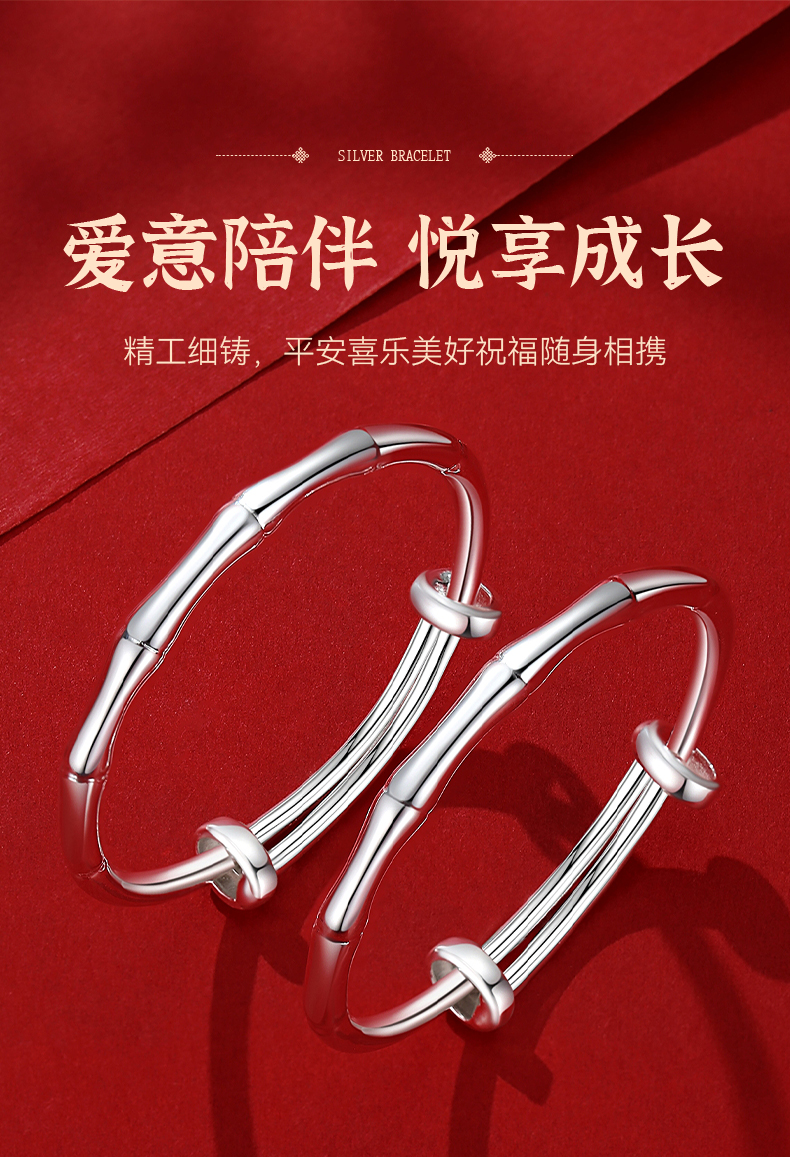 Winy9999足银竹影相依宝宝镯送女友闺蜜节日生日礼物