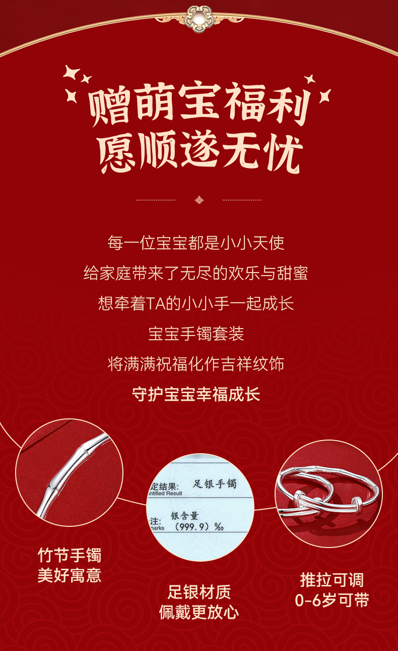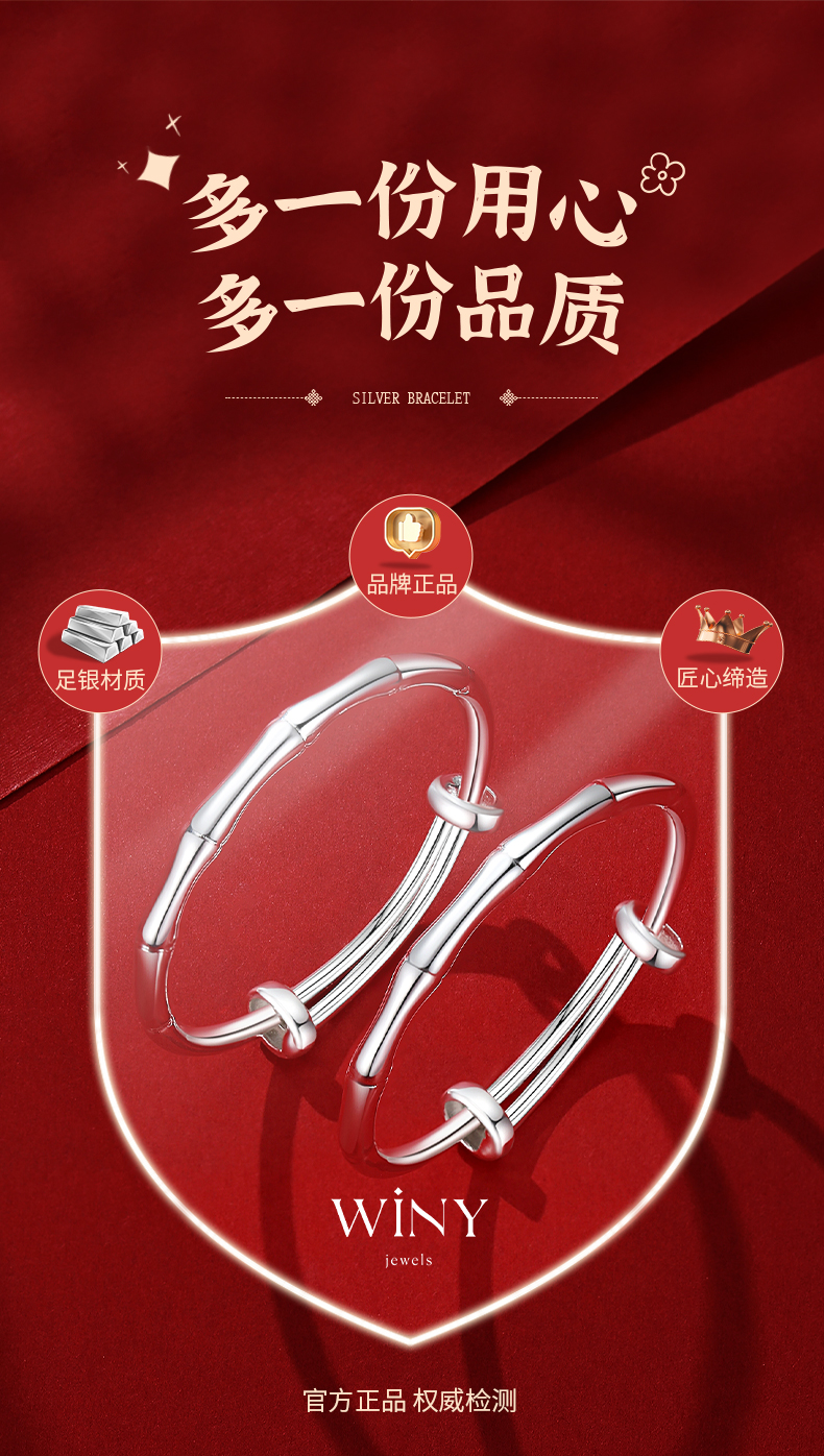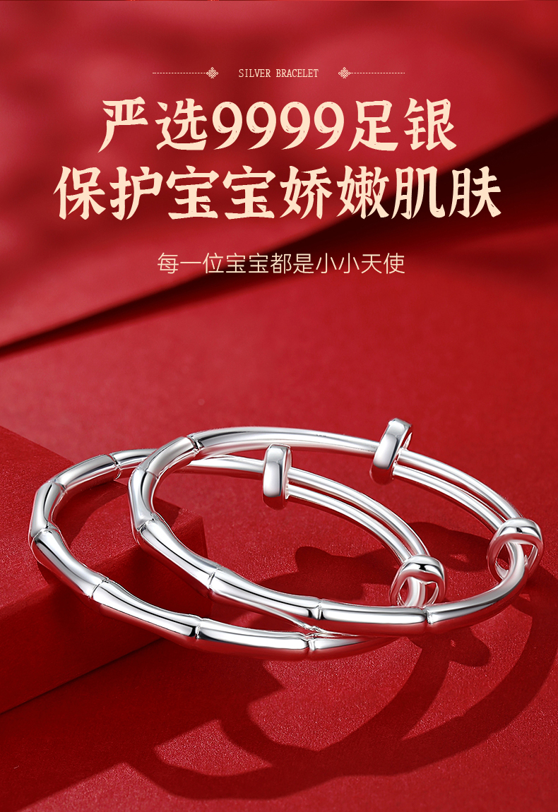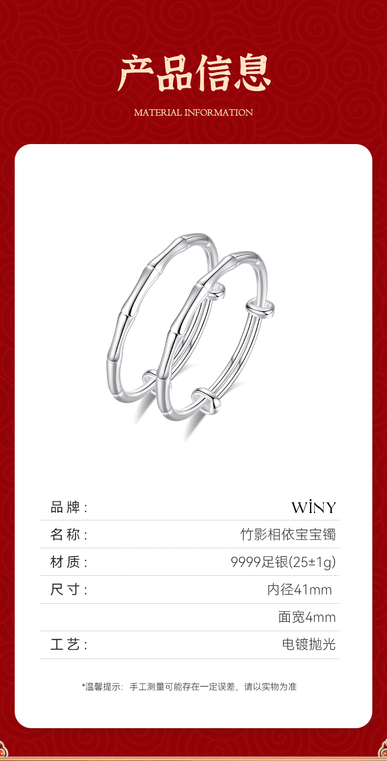 Winy9999足银竹影相依宝宝镯送女友闺蜜节日生日礼物