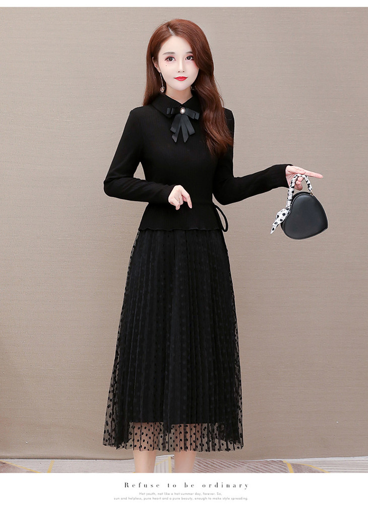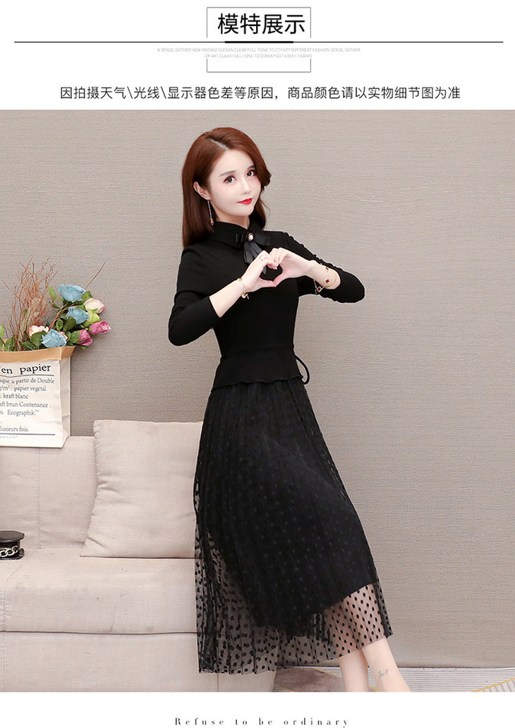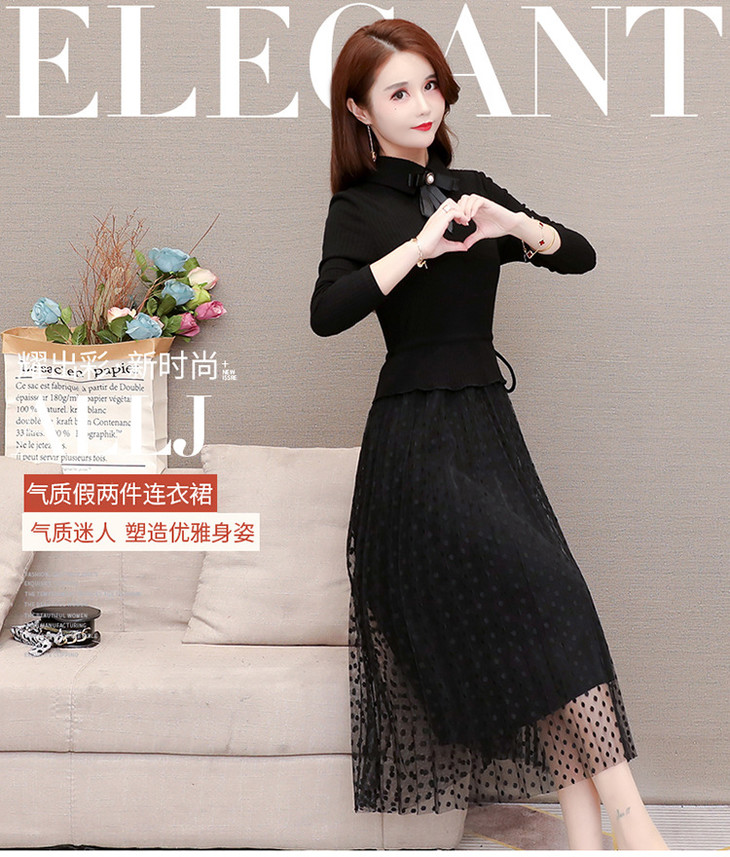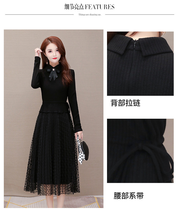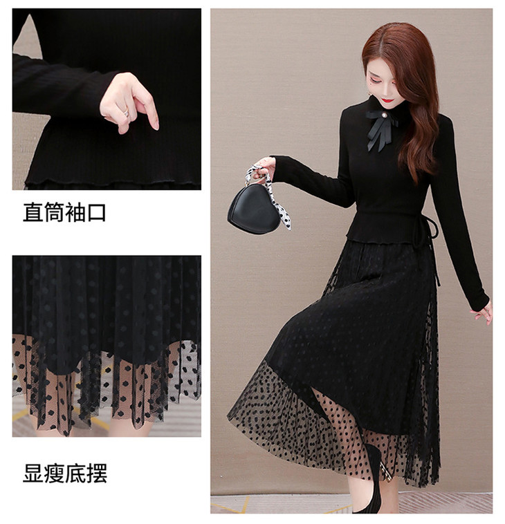 YWE-ALLJ20B59C气质减龄修身长袖网纱针织毛衣连衣裙