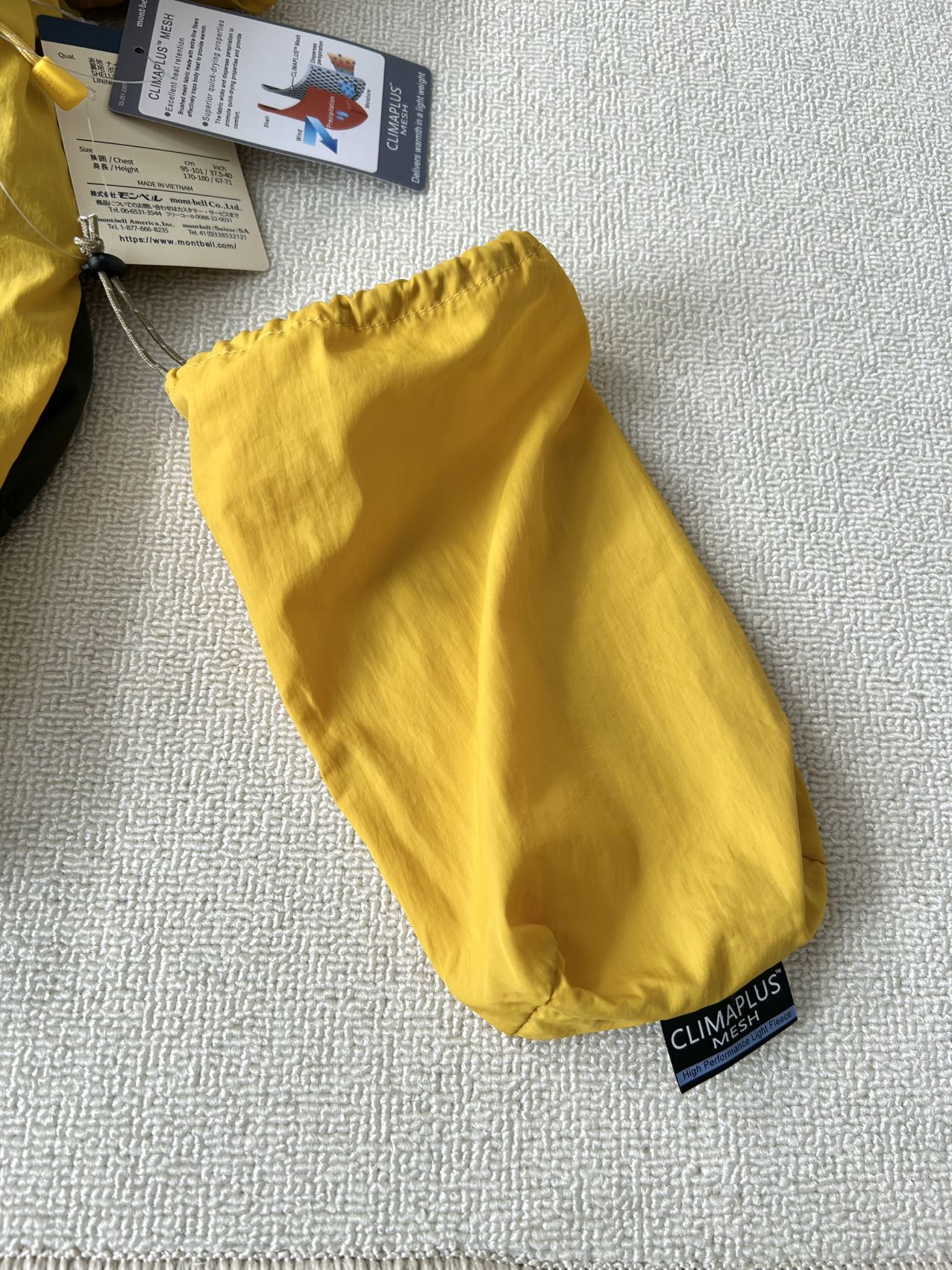 • 内胆/衬里:正如你描述的,内里采用CLIMAPLUS网布(聚酯纤维),这种轻质网眼材质通过特殊编织结构储存空气,实现轻薄但高效的保温性能,同时保证透气,避免闷热。