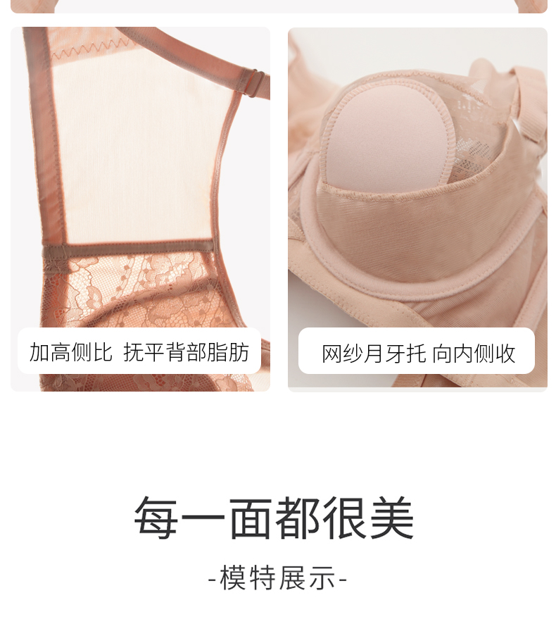 贝佳人薄杯文胸3/4杯舒适无钢圈上托聚拢稳固内衣女BW952008