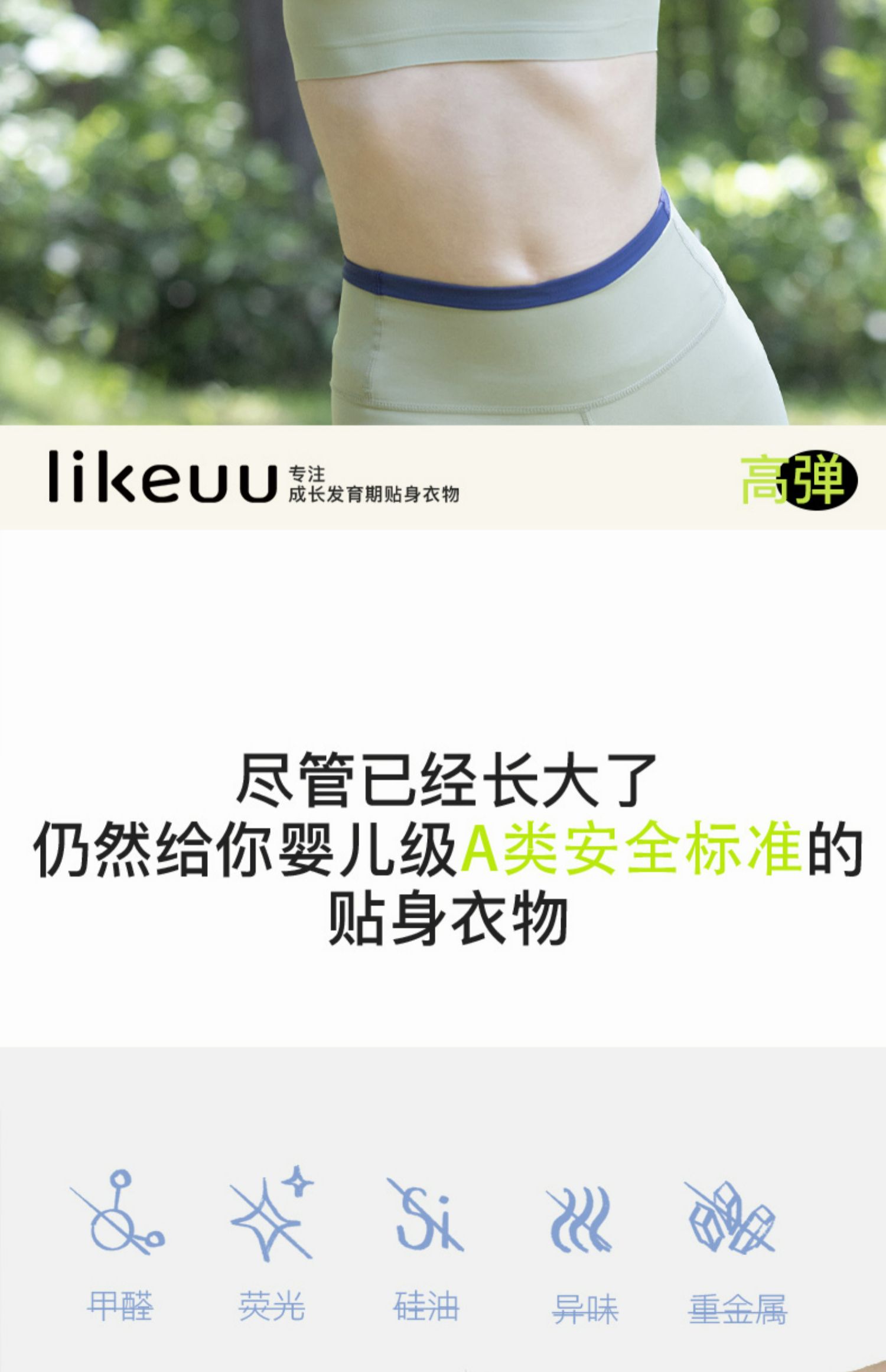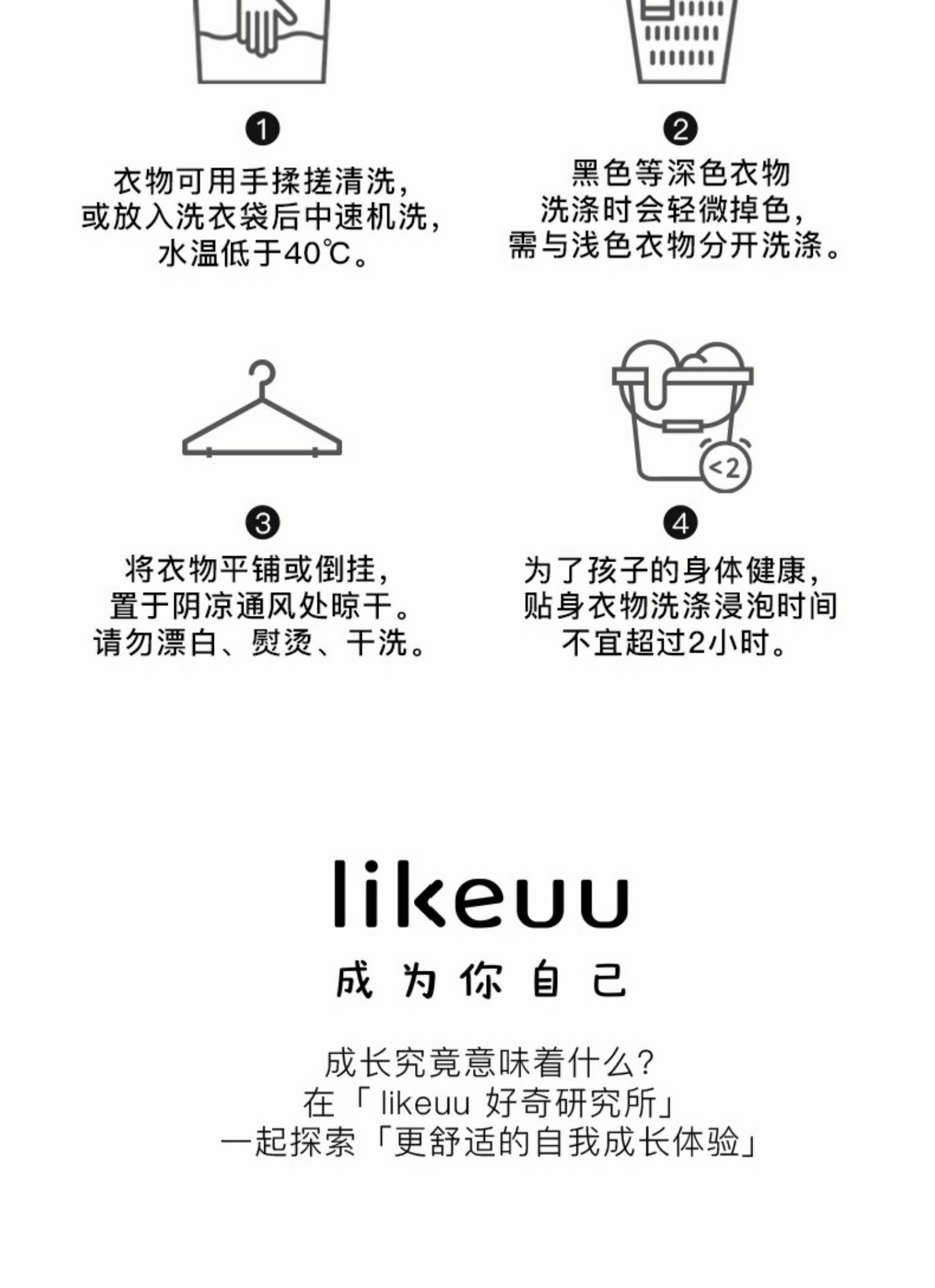 likeuu是专注于为6~15岁的青少年创造柔软、无束缚的成长体验,以好奇心为灵感的成长发育期贴身衣物品牌。likeuu的产品覆盖内衣、内裤、保暖衣、家居服、运动等品类。