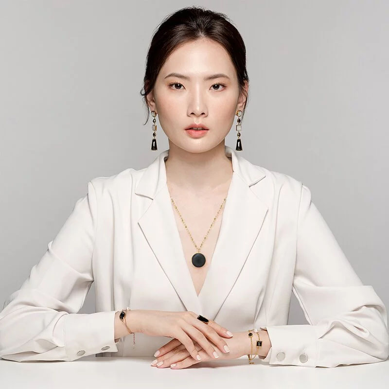 嚴肅?!冷靜?!三不五時出乎意料的驚人點子和俏皮活潑?!雙律師證照的設計總監Tracey將她的生活轉變成設計,運用色彩學裡的黑白雙色即是無色的概念,將高質墨翡搭配冰糯種白翡或白琺瑯運用於基礎幾何系列裡的多款造型,成為此系列的時尚基調。讓珠寶貫穿極簡的歸零美學再變化出無色生萬化的焦點珠寶。搶眼又和諧的設計,創造出時尚都會女性的堅毅和柔美!
