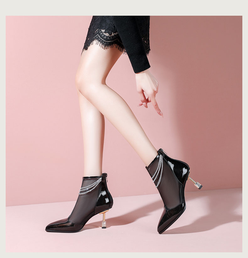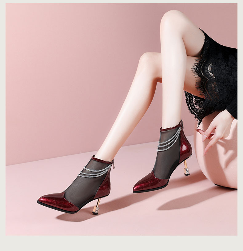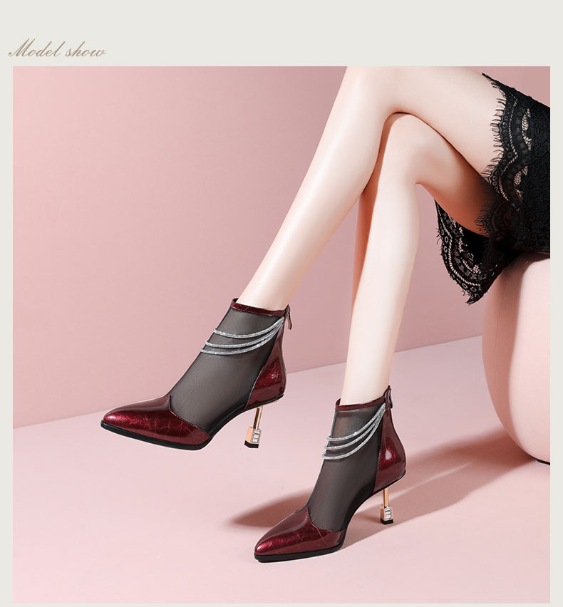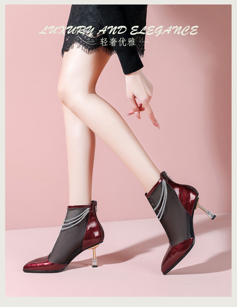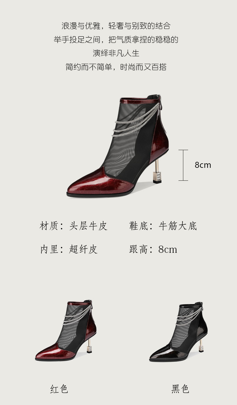 春夏新款,网纱拼接真皮细跟高品质网靴JJ-D867