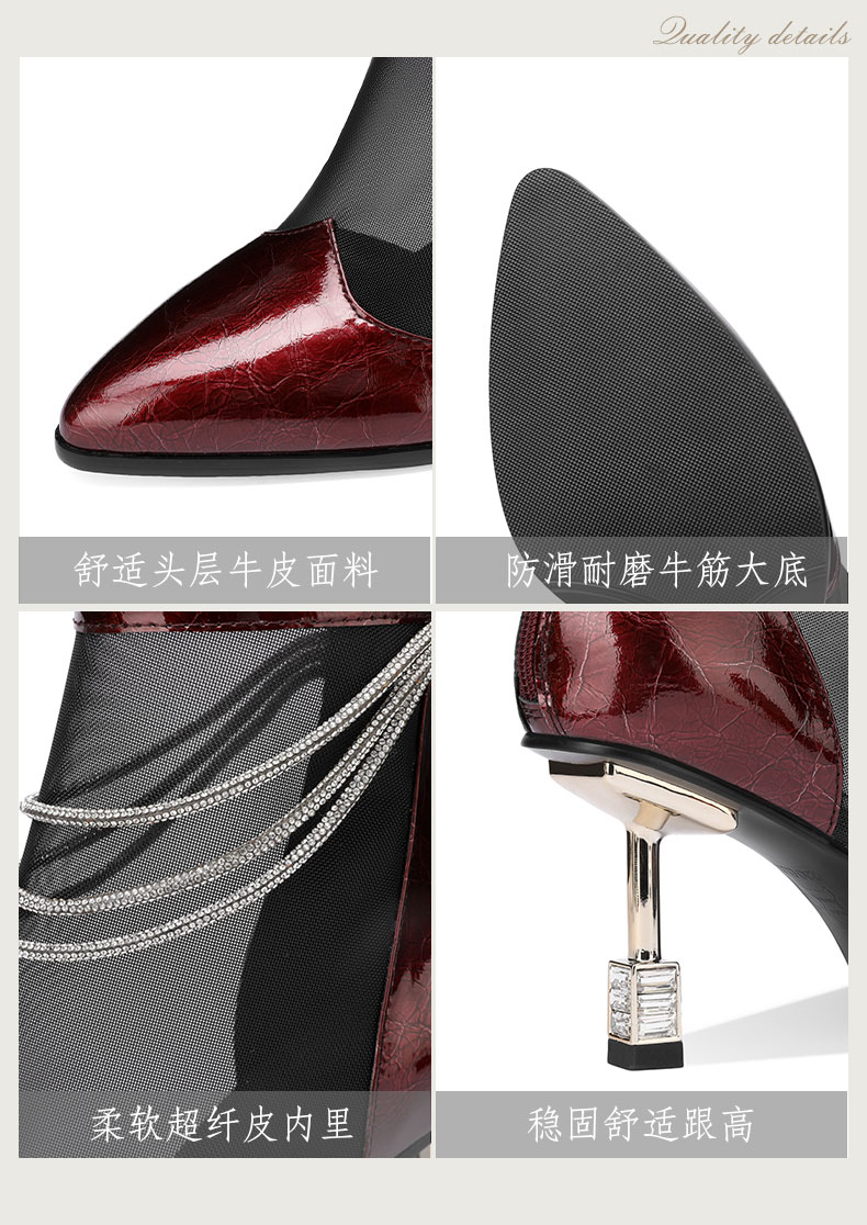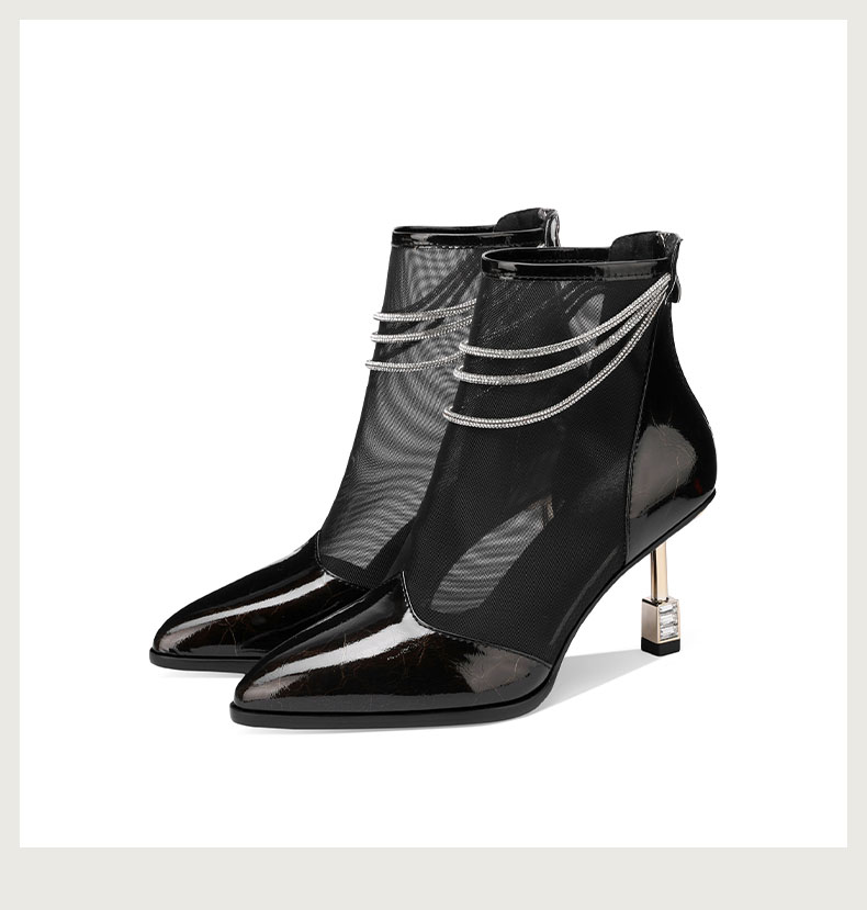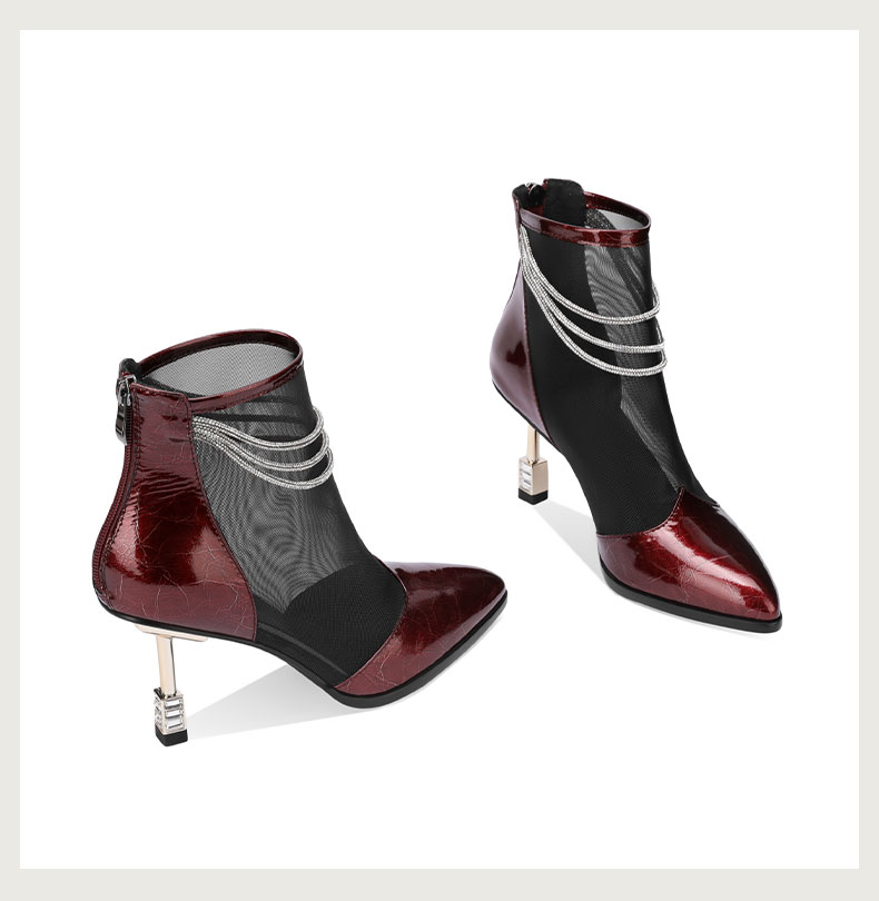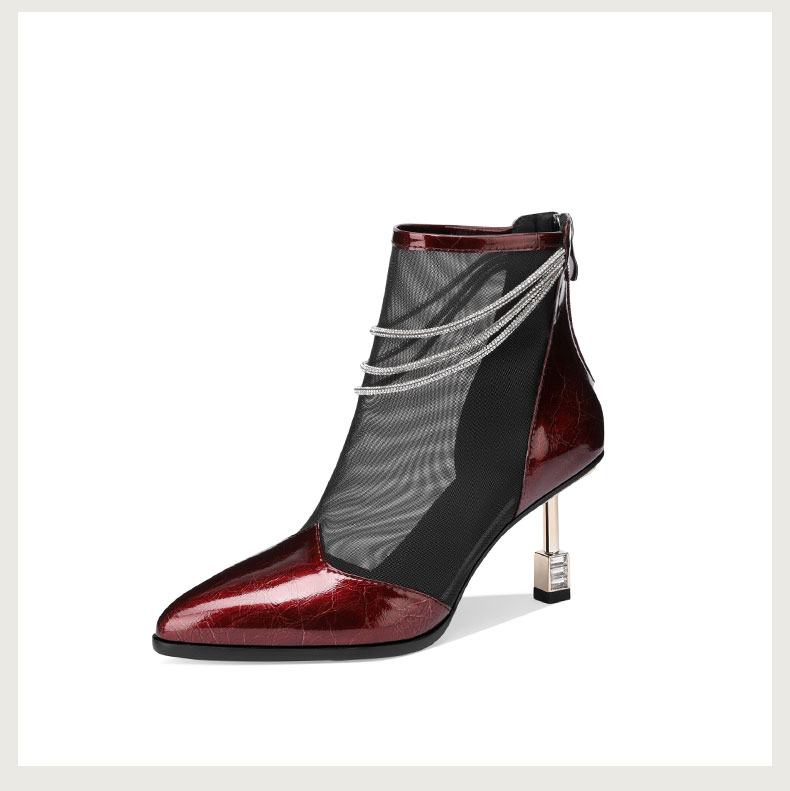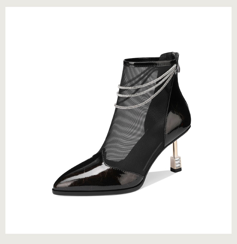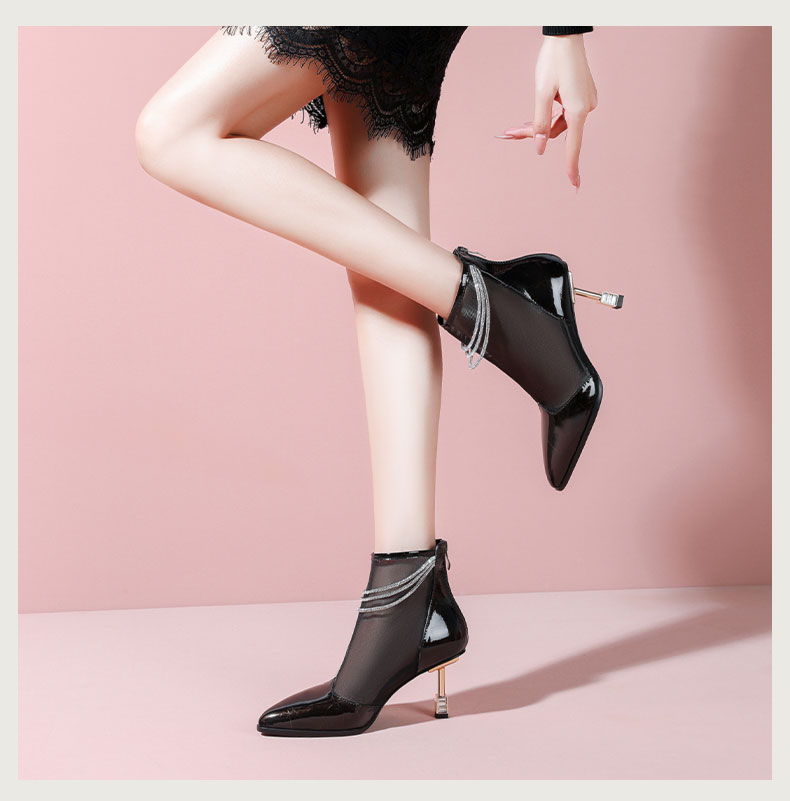 春夏新款,网纱拼接真皮细跟高品质网靴JJ-D867