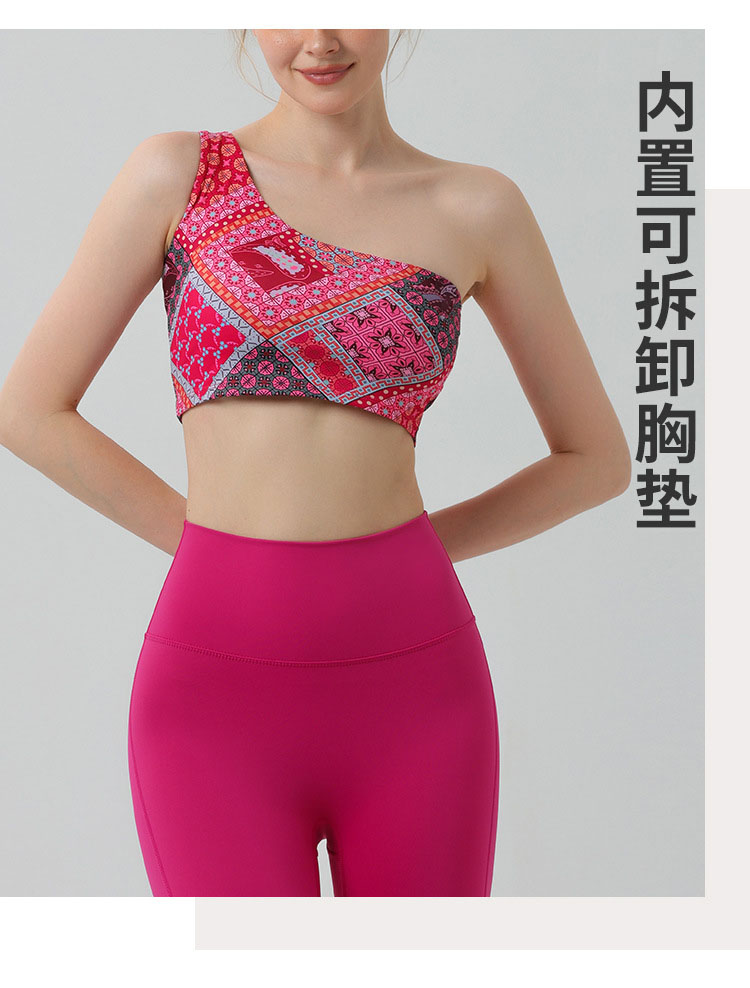 【126元任选2件】跃牌【漫西】系列 斜肩聚拢短背心瑜伽服女带胸垫运动文胸健身内衣Y225