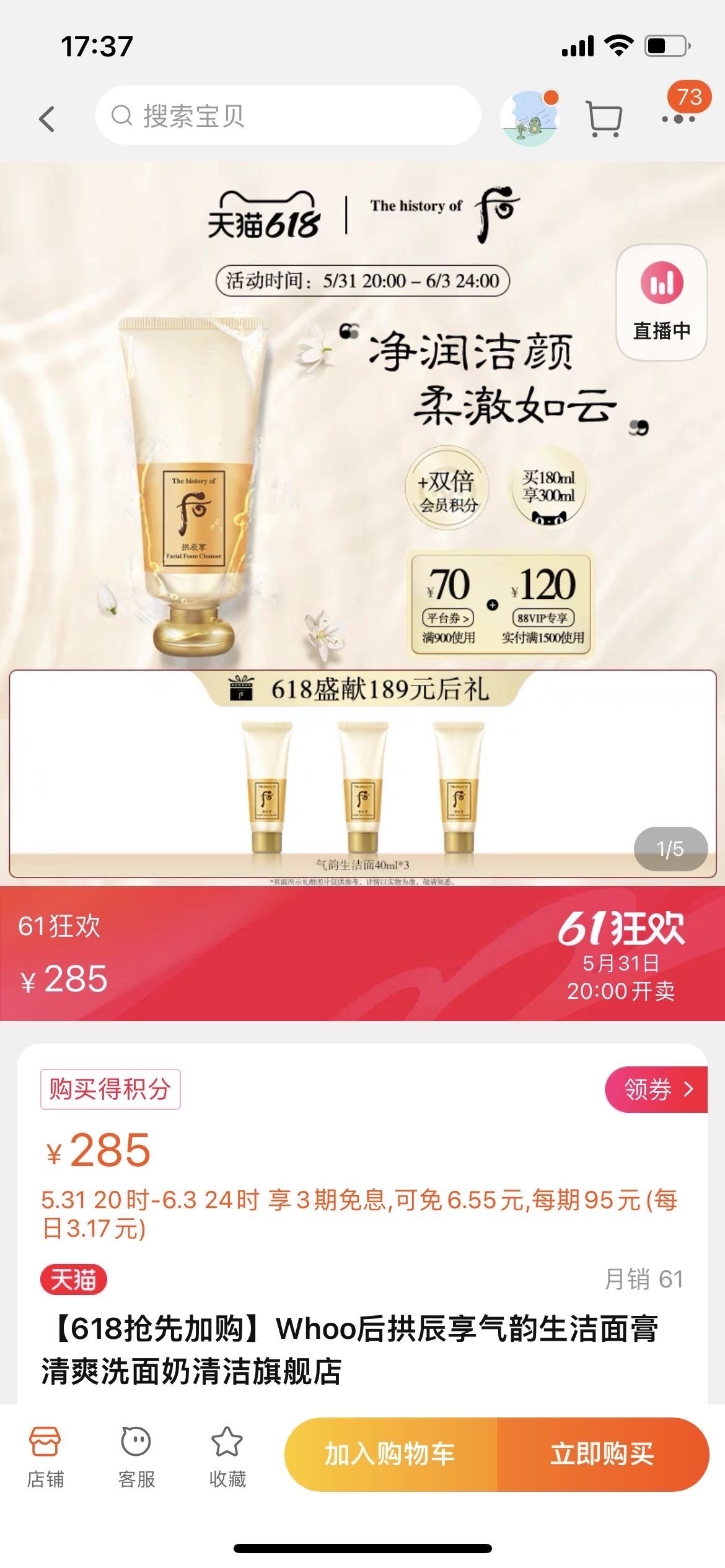【品名】正品韩国后拱辰享洗面奶