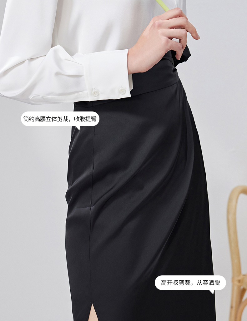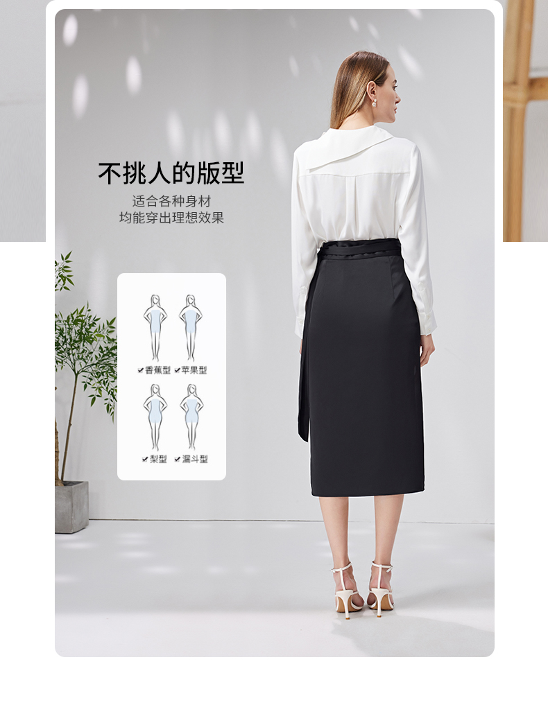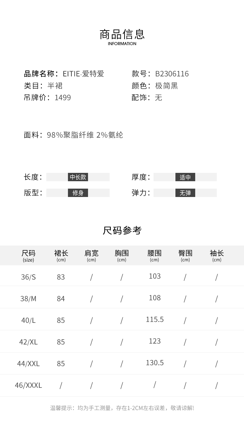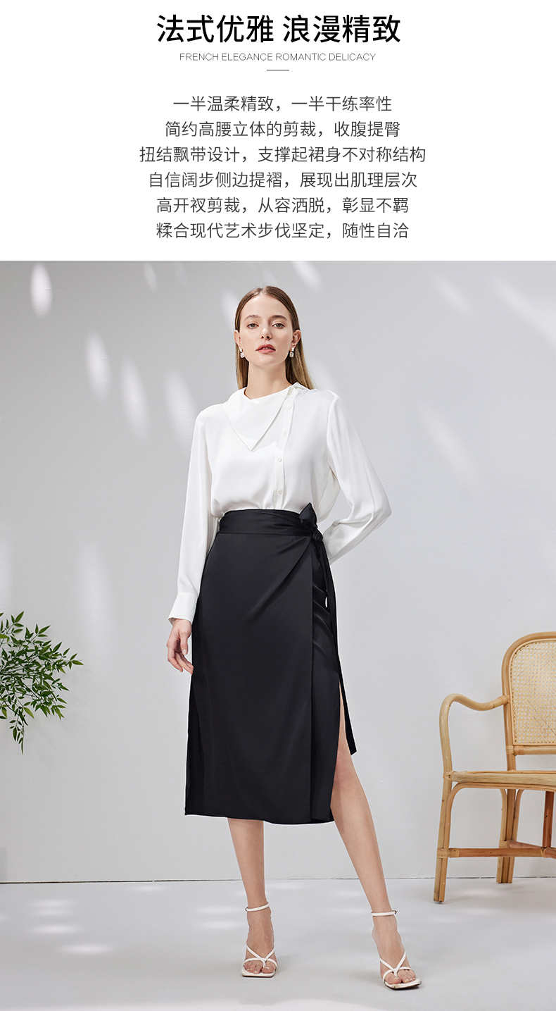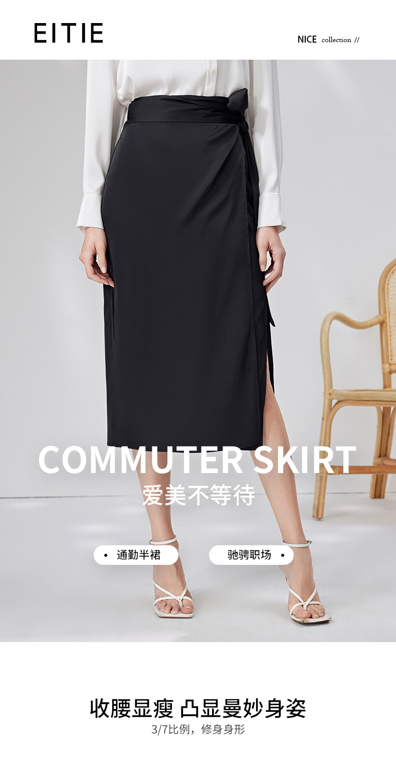 EITIE爱特爱中式高腰一片式绑带开叉半身裙黑色通勤显瘦夏新款B06116
