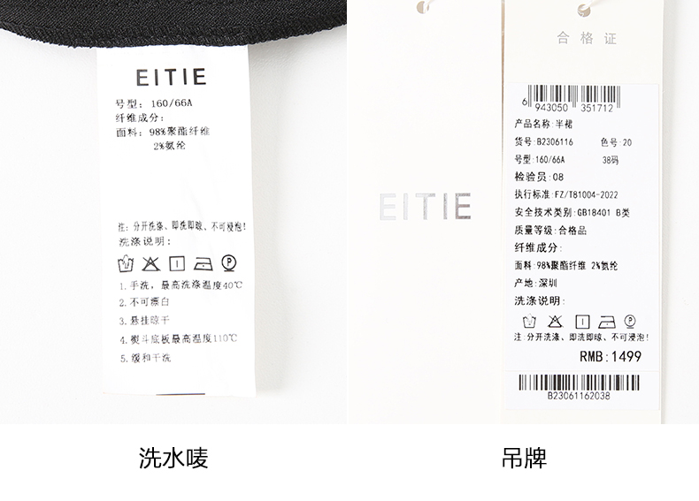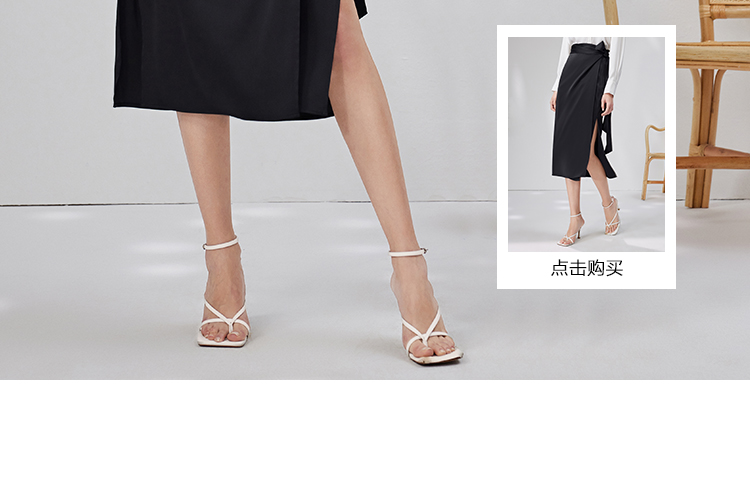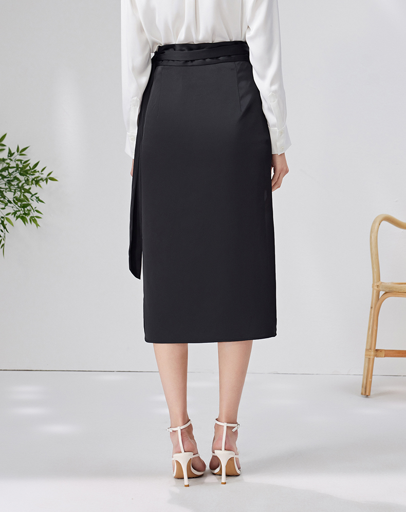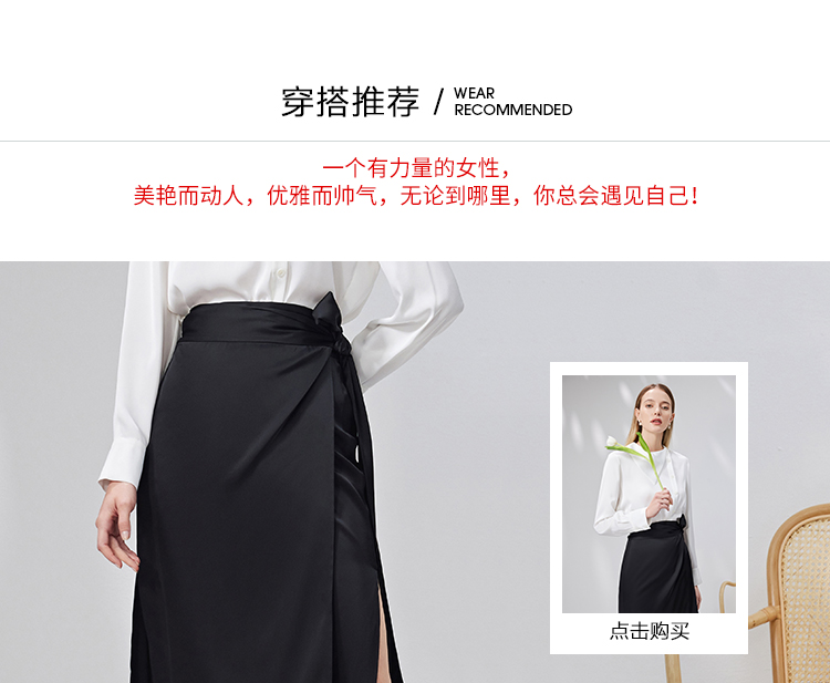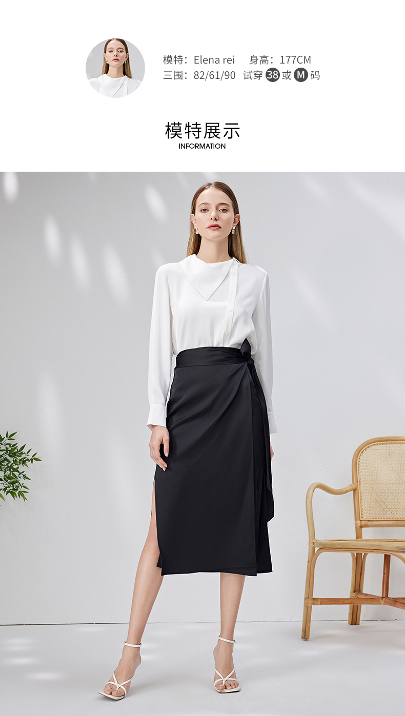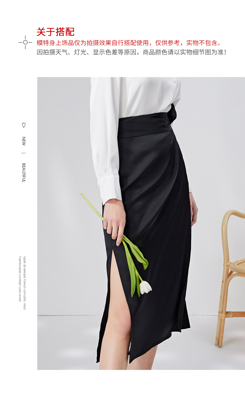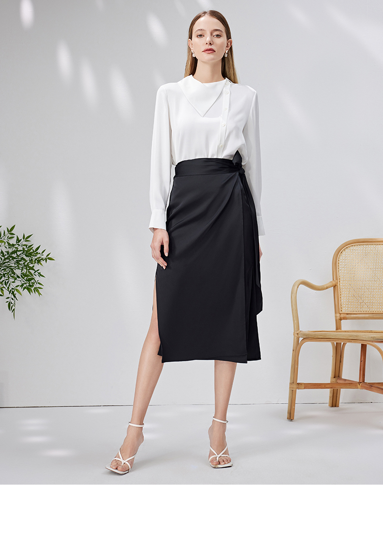 EITIE爱特爱中式高腰一片式绑带开叉半身裙黑色通勤显瘦夏新款B06116