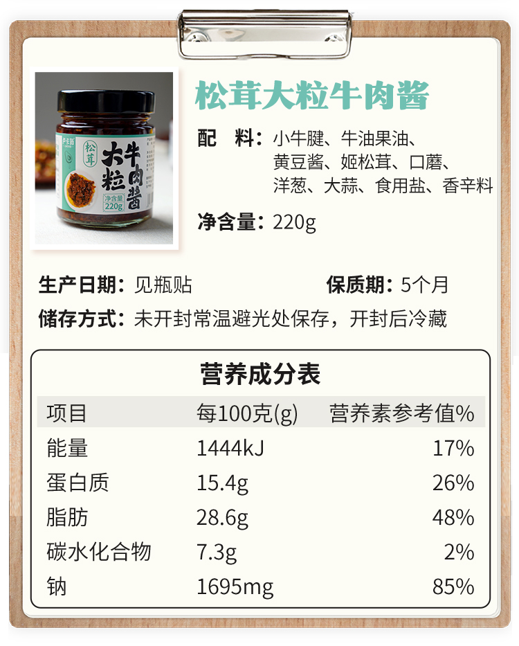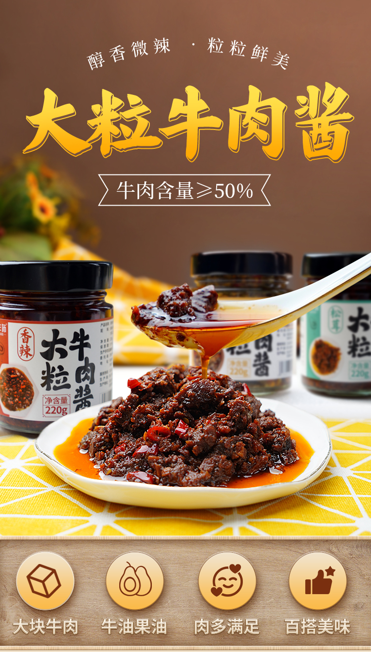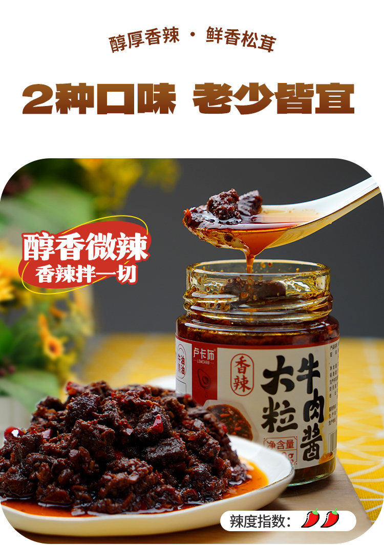 卢卡布痩龙生酮牛肉酱香辣/松茸大粒牛肉酱220g/瓶 牛油果油