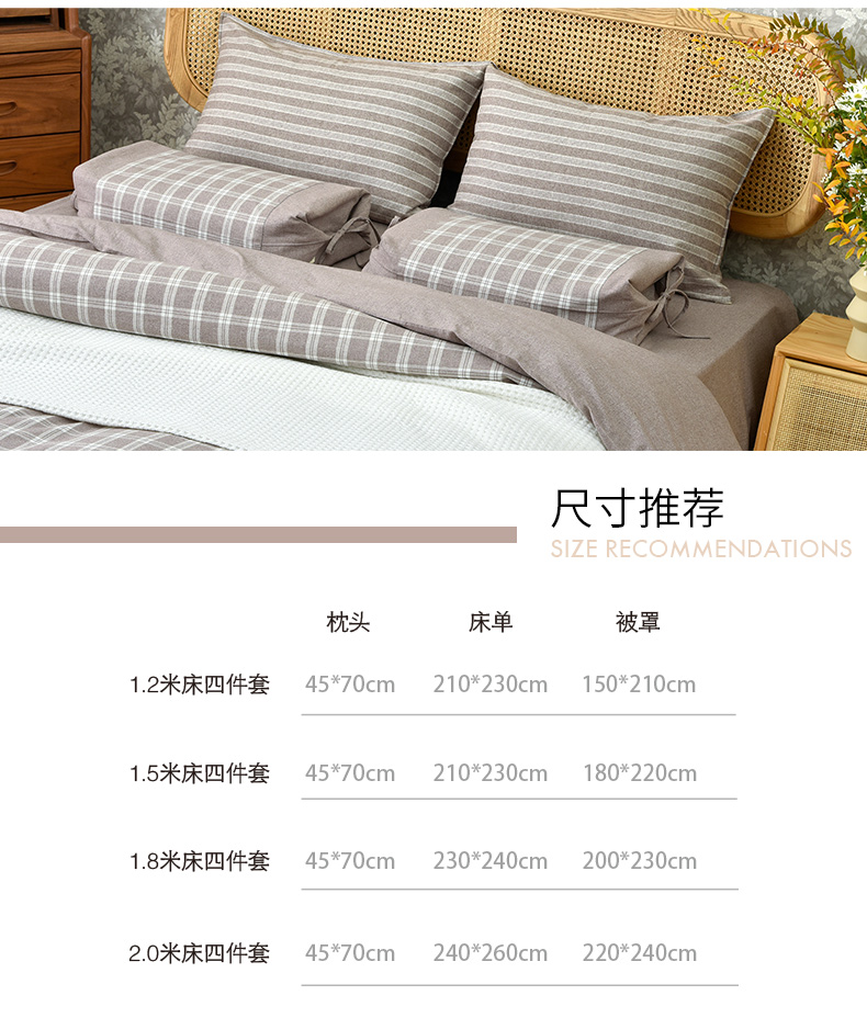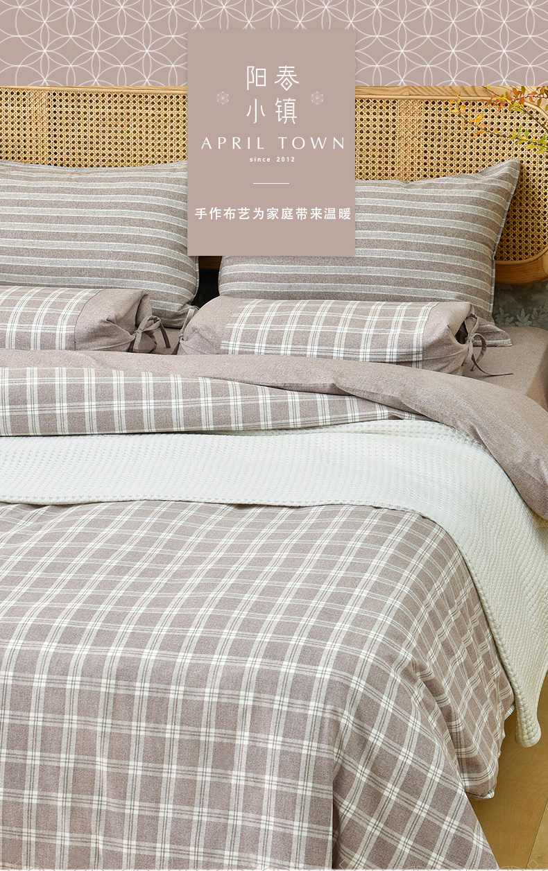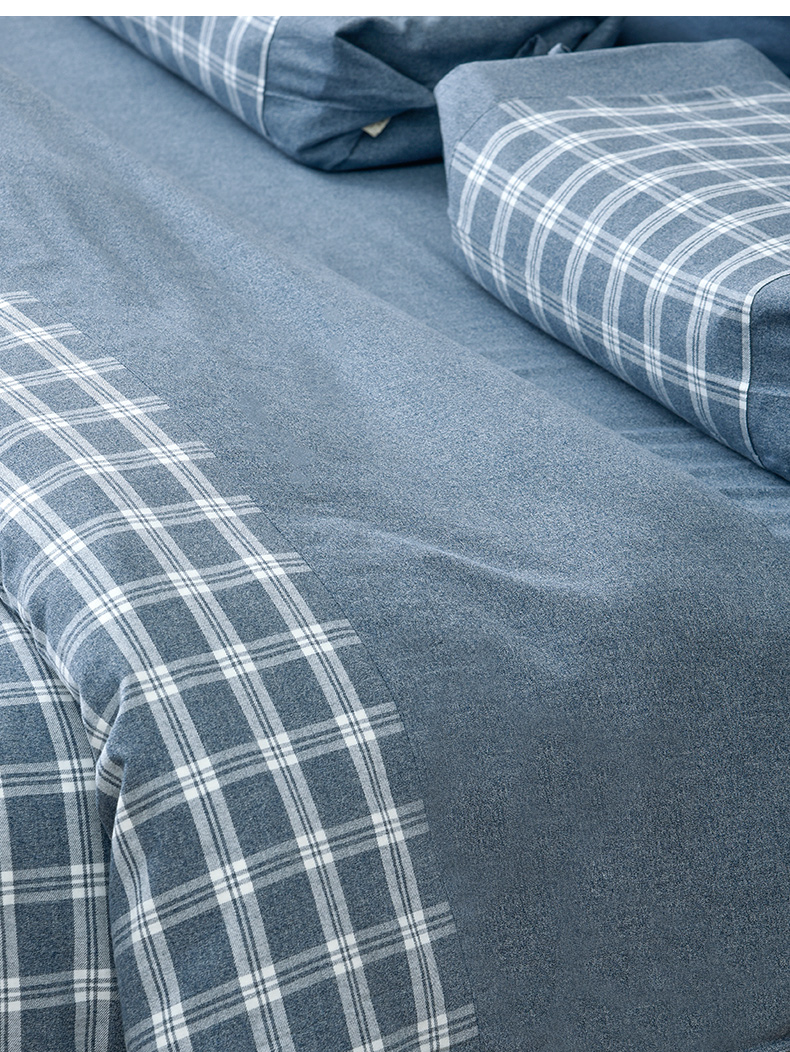 莫兰迪小格子磨毛四件套纯棉秋冬加厚四件套