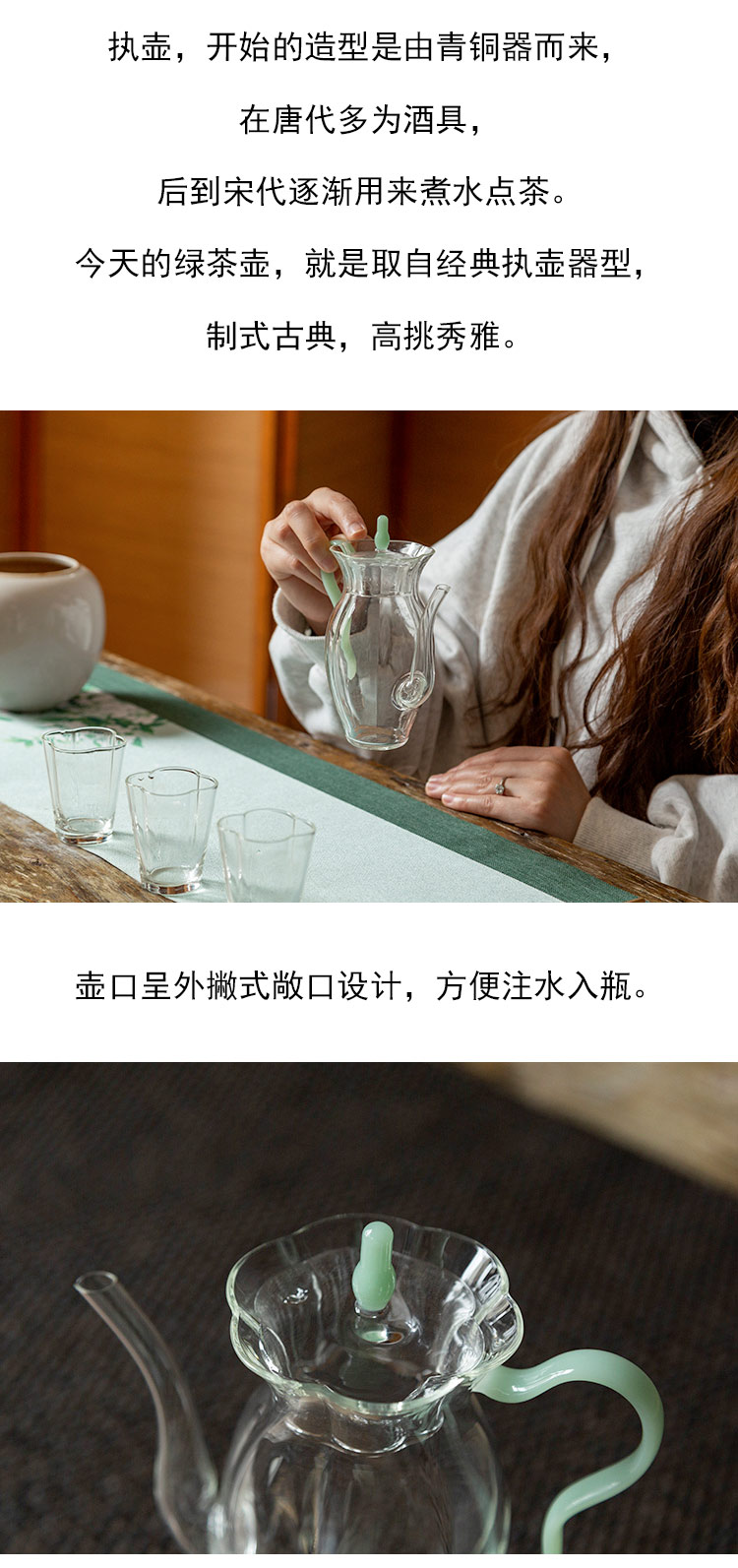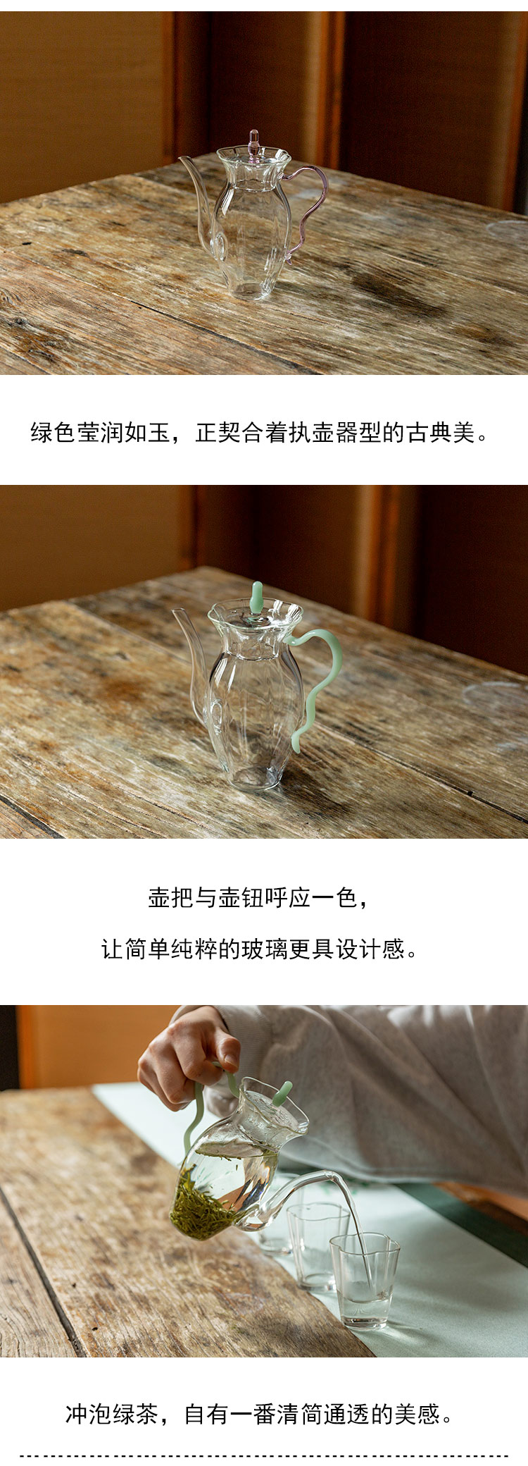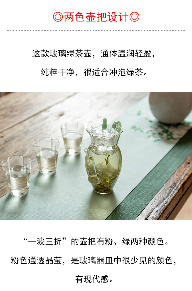 茶香记 透明玻璃彩把绿茶壶260ml执壶器型两色壶把设计高挑秀雅