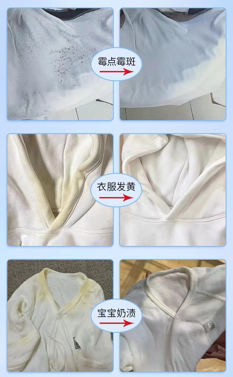 【白衣亮白!焕新衣物】衣物除霉剂快速白色衣物去渍剂白衣还原剂白衣物串色修复剂。xb