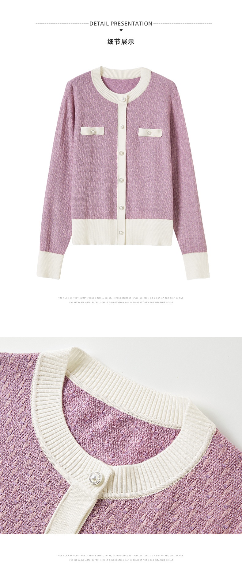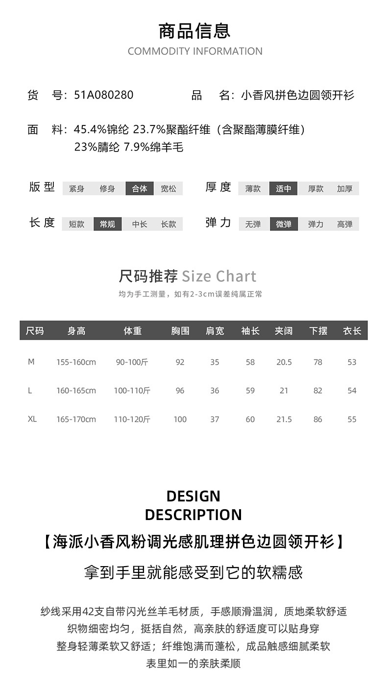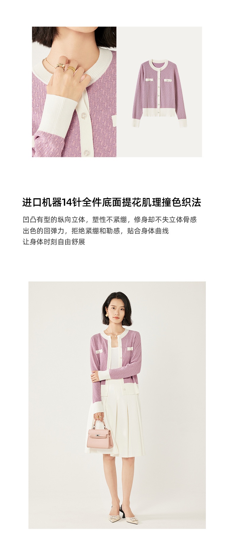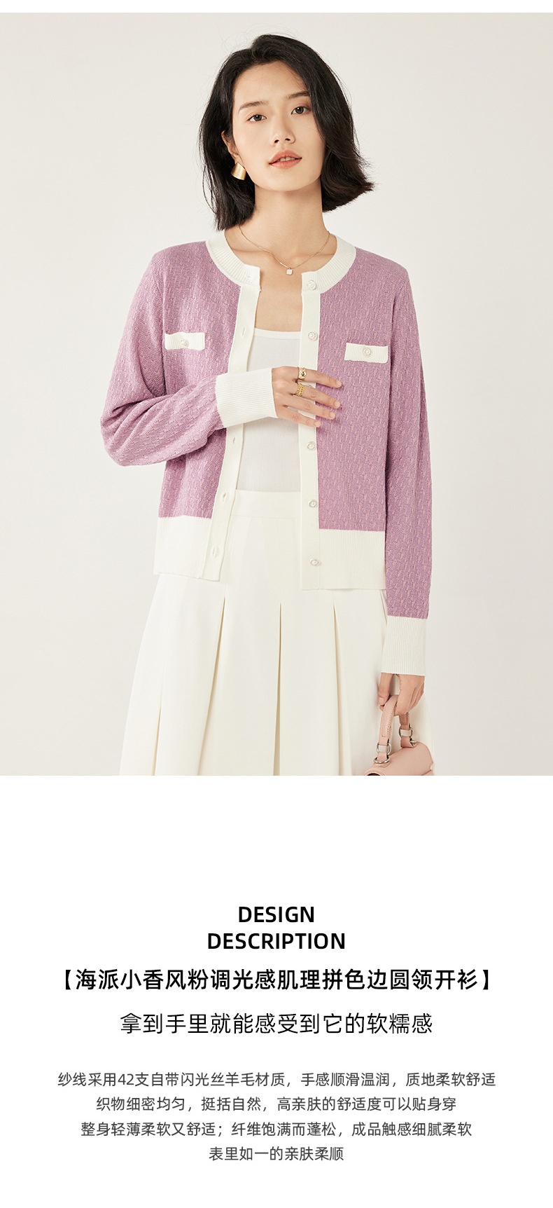 「自」全新升级【铂金会员330/天猫449/差价119】(73641)洛诗琳法式小香风拼接羊毛开衫2025秋季高级感针织外套女