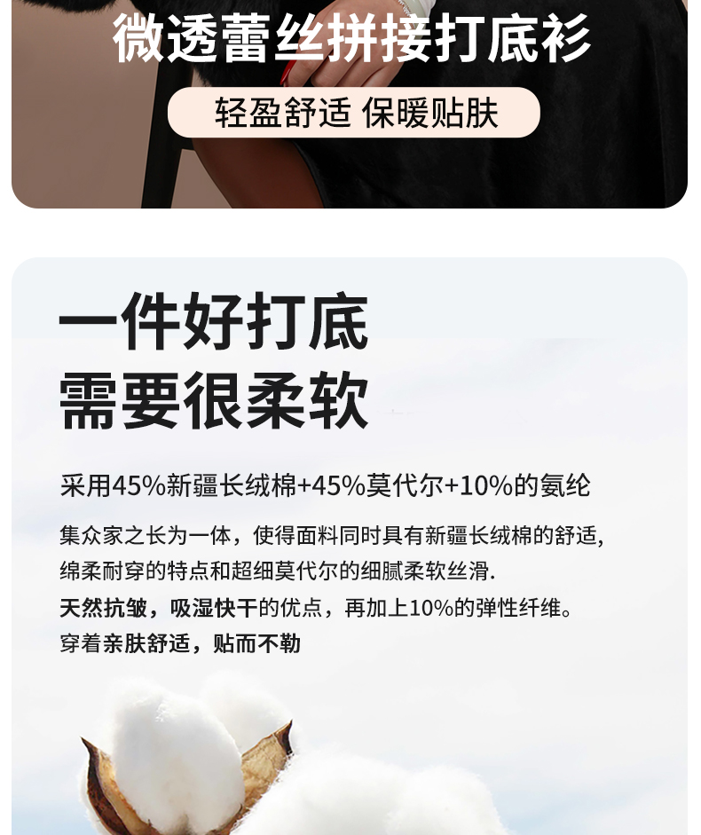 贝佳人2024秋冬新品“多元系列”蕾丝时尚冬季打底衫BW502410