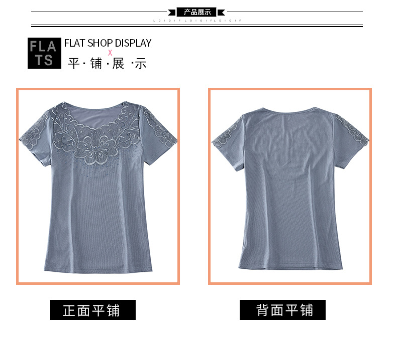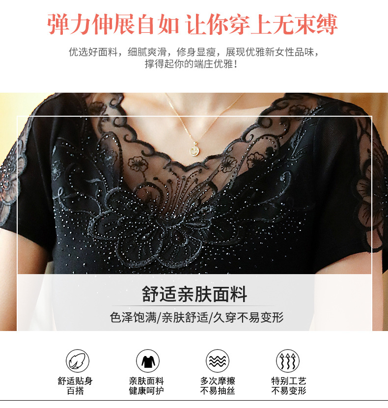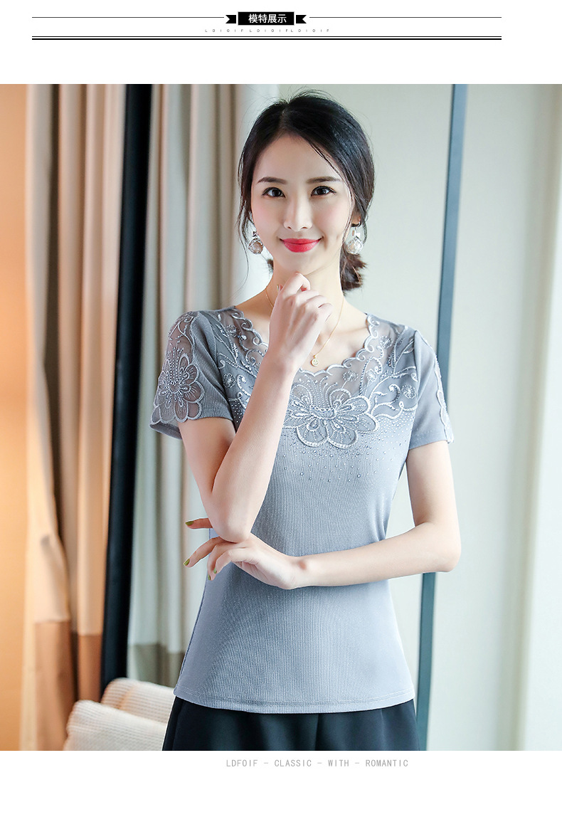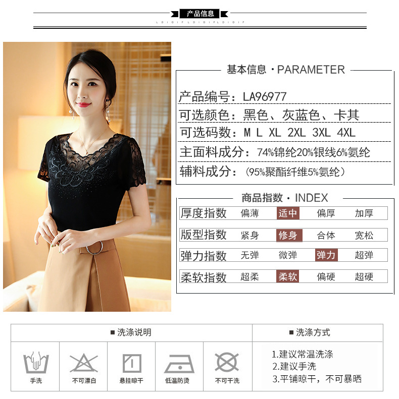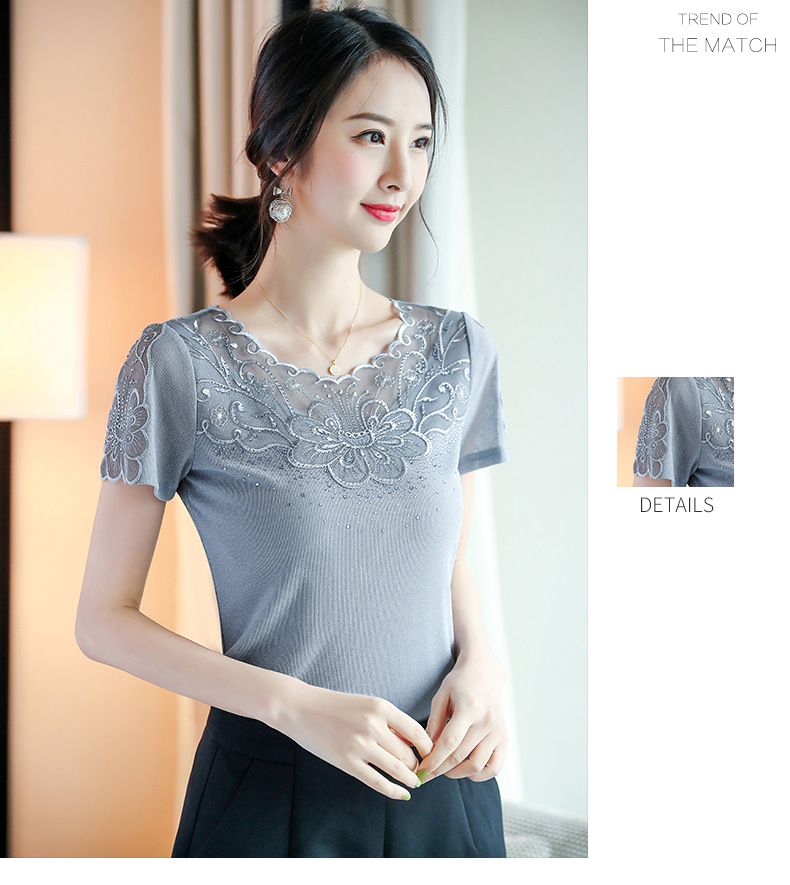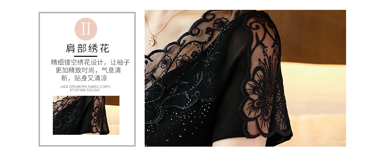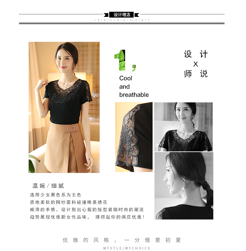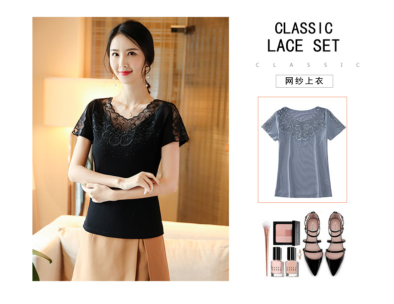ZZ-LA96977新款网纱打底短袖女圆领蕾丝性感洋气小衫