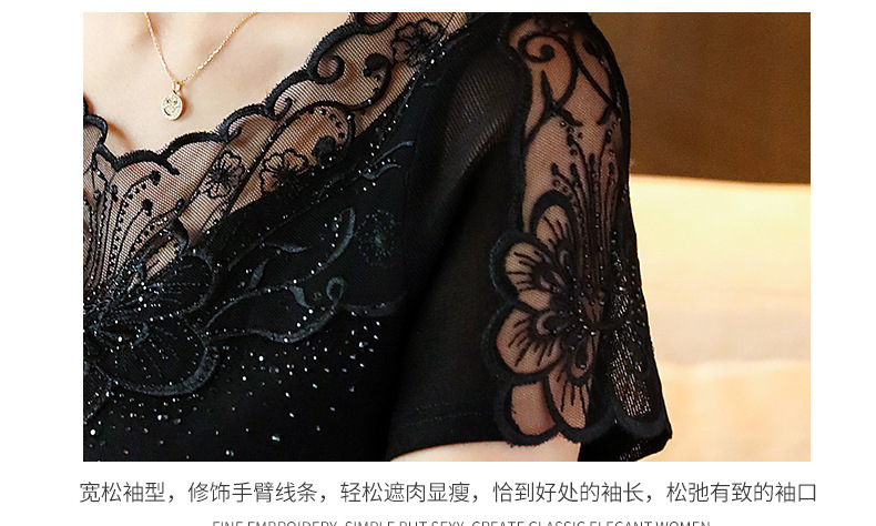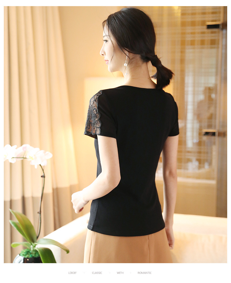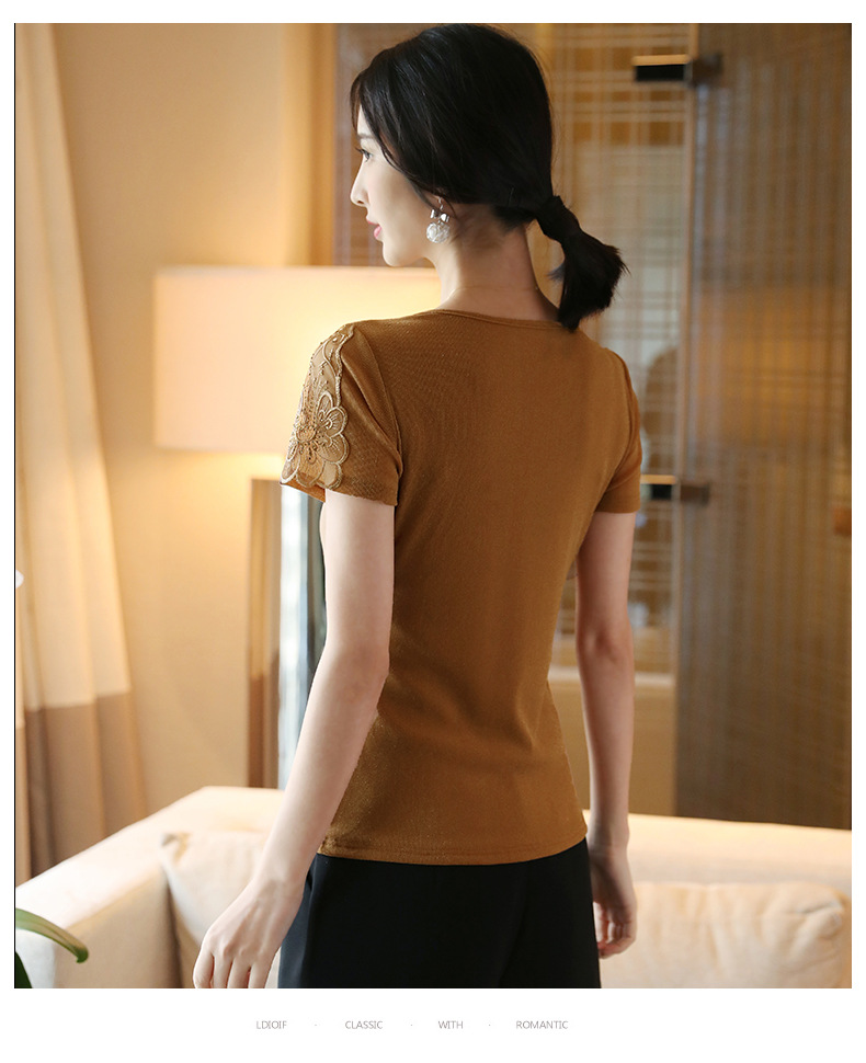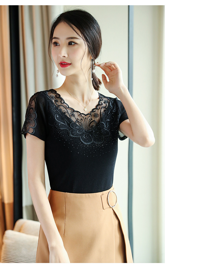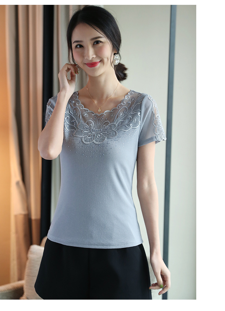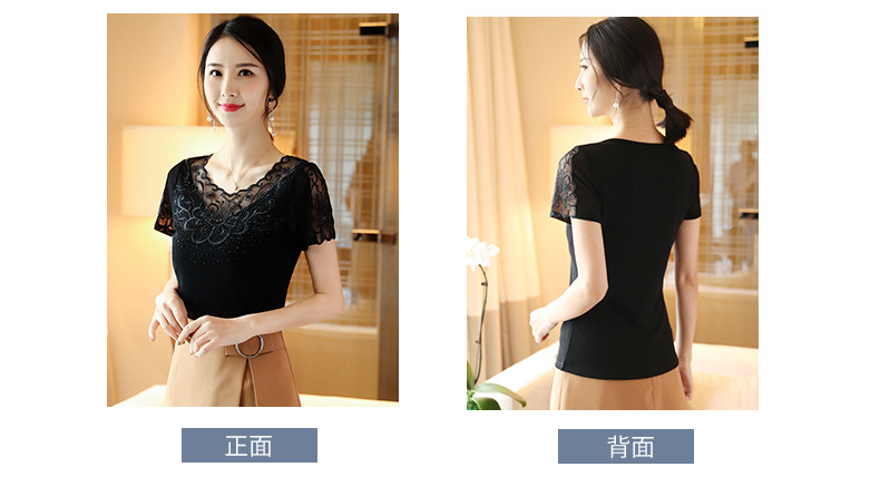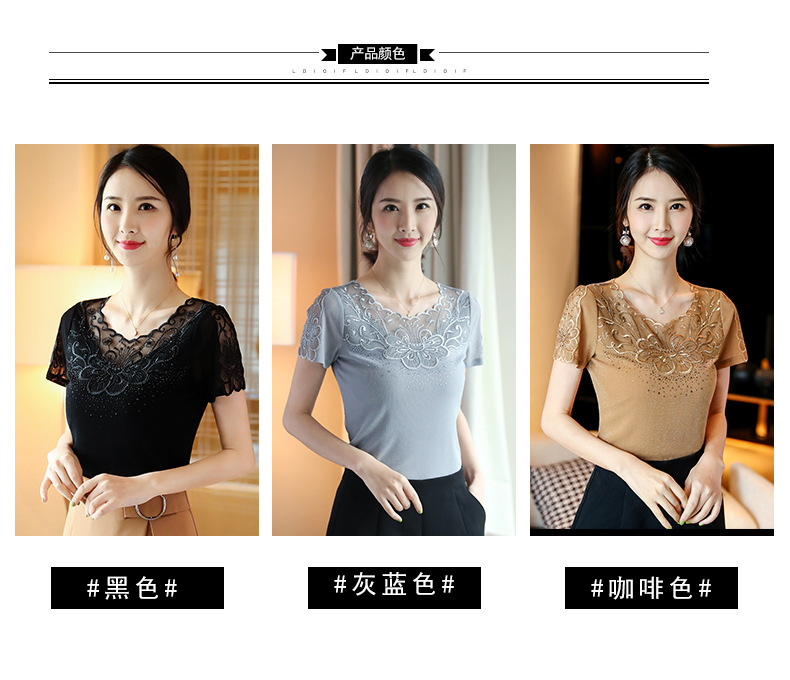 ZZ-LA96977新款网纱打底短袖女圆领蕾丝性感洋气小衫