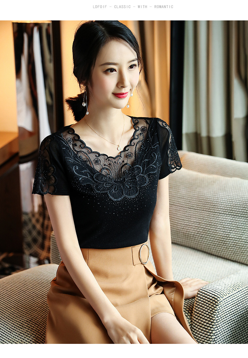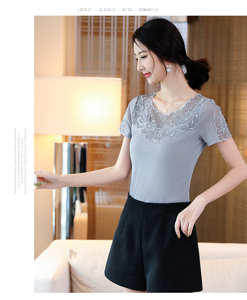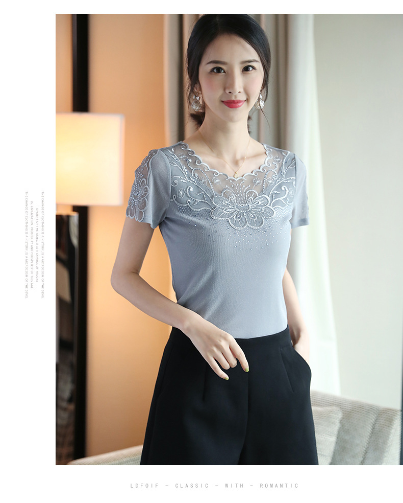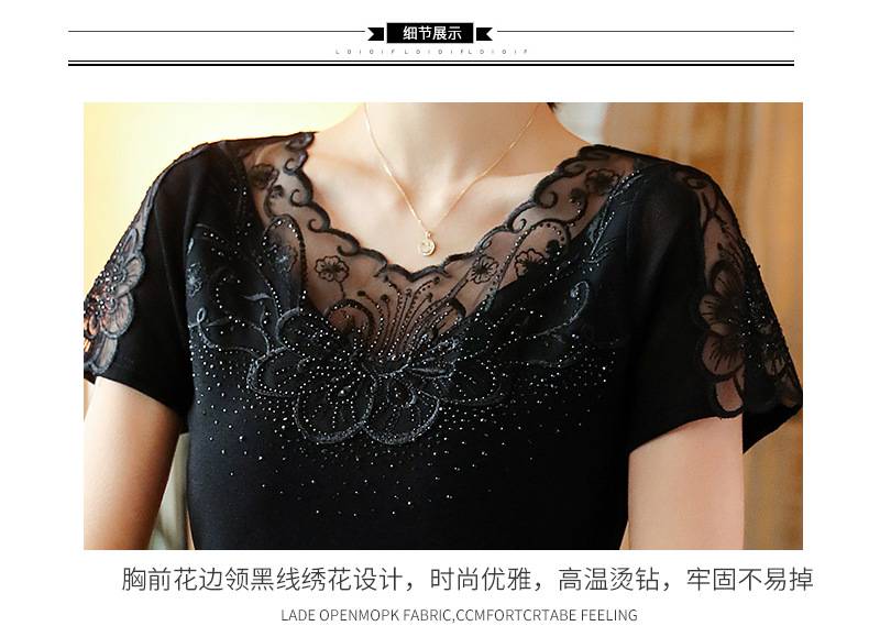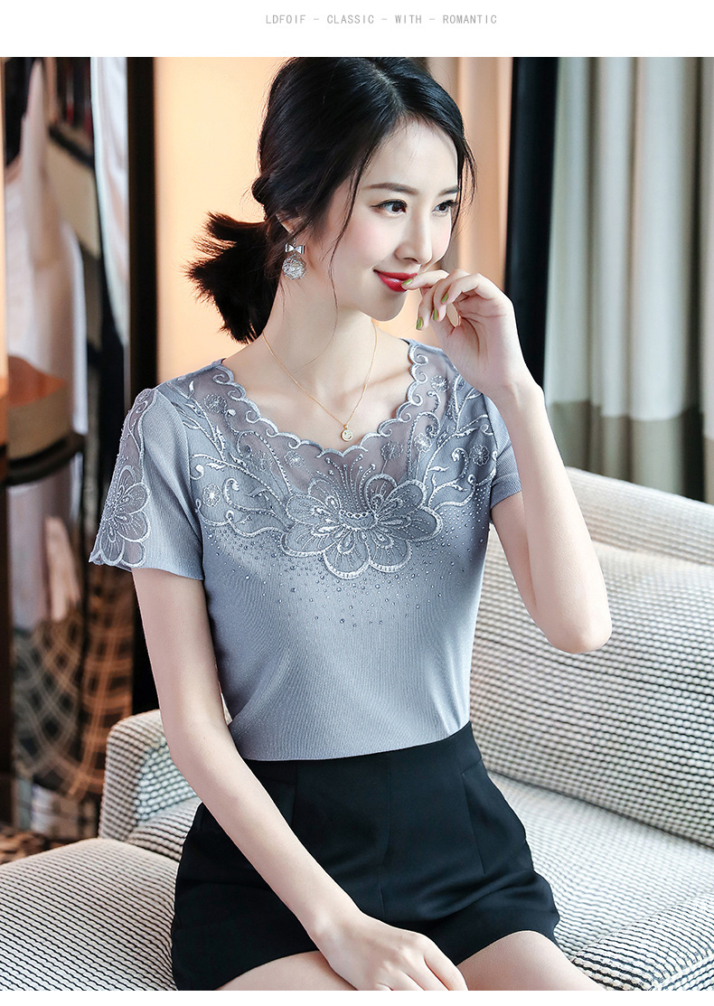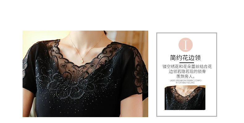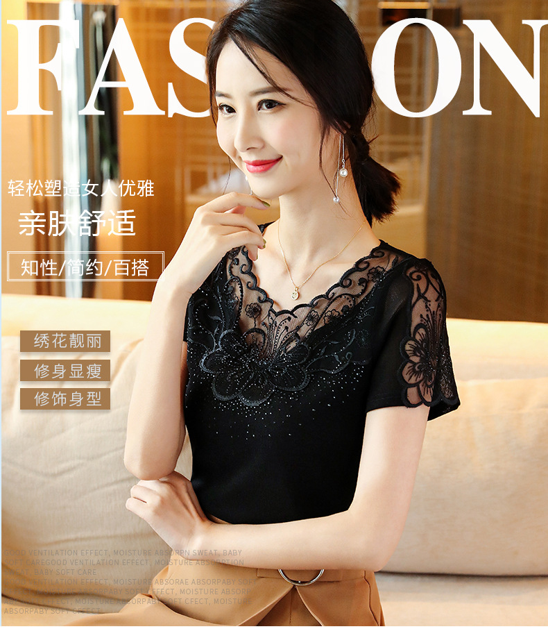 ZZ-LA96977新款网纱打底短袖女圆领蕾丝性感洋气小衫