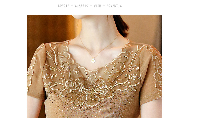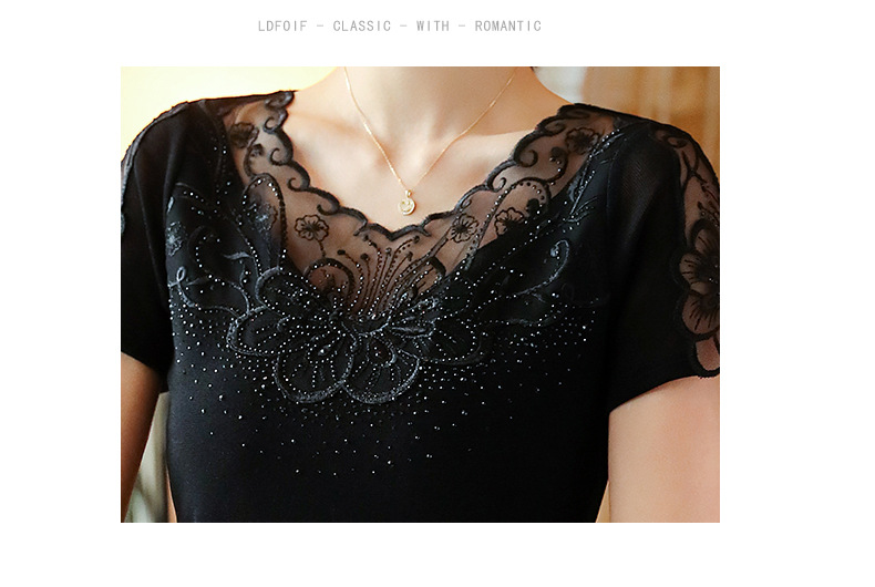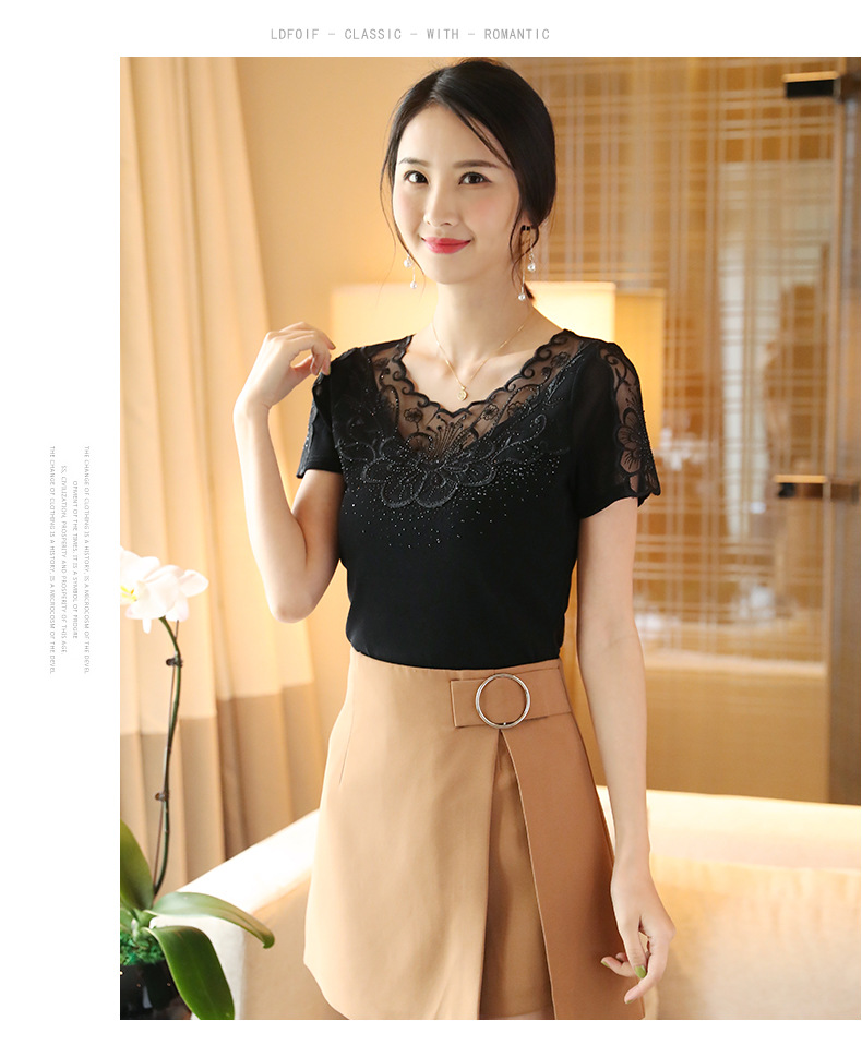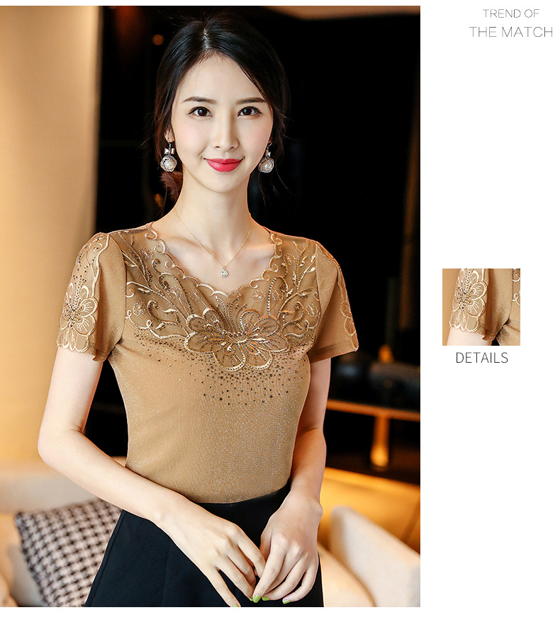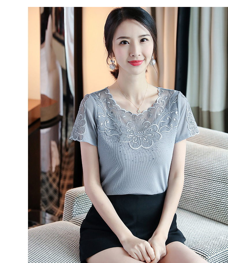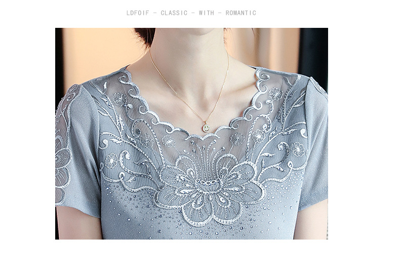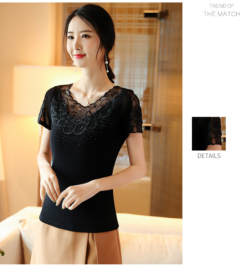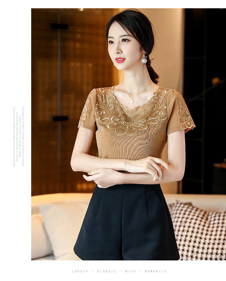 ZZ-LA96977新款网纱打底短袖女圆领蕾丝性感洋气小衫
