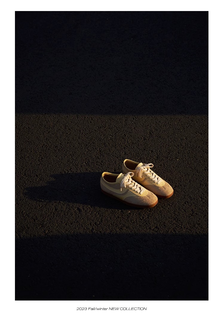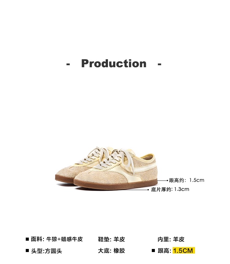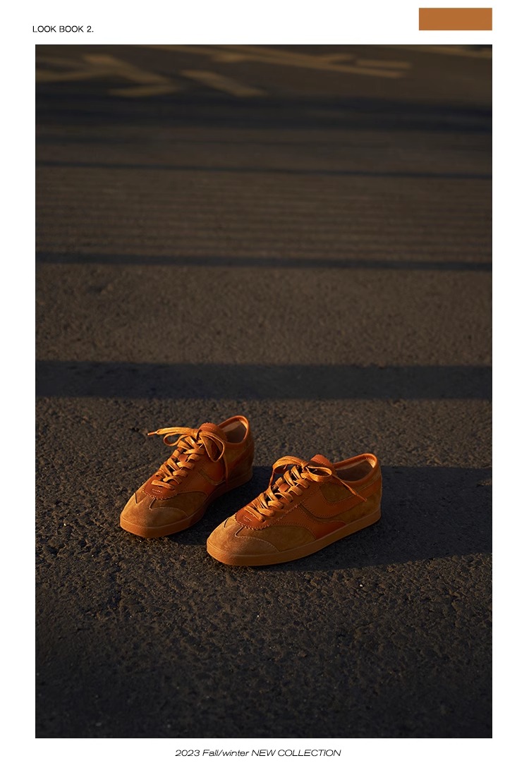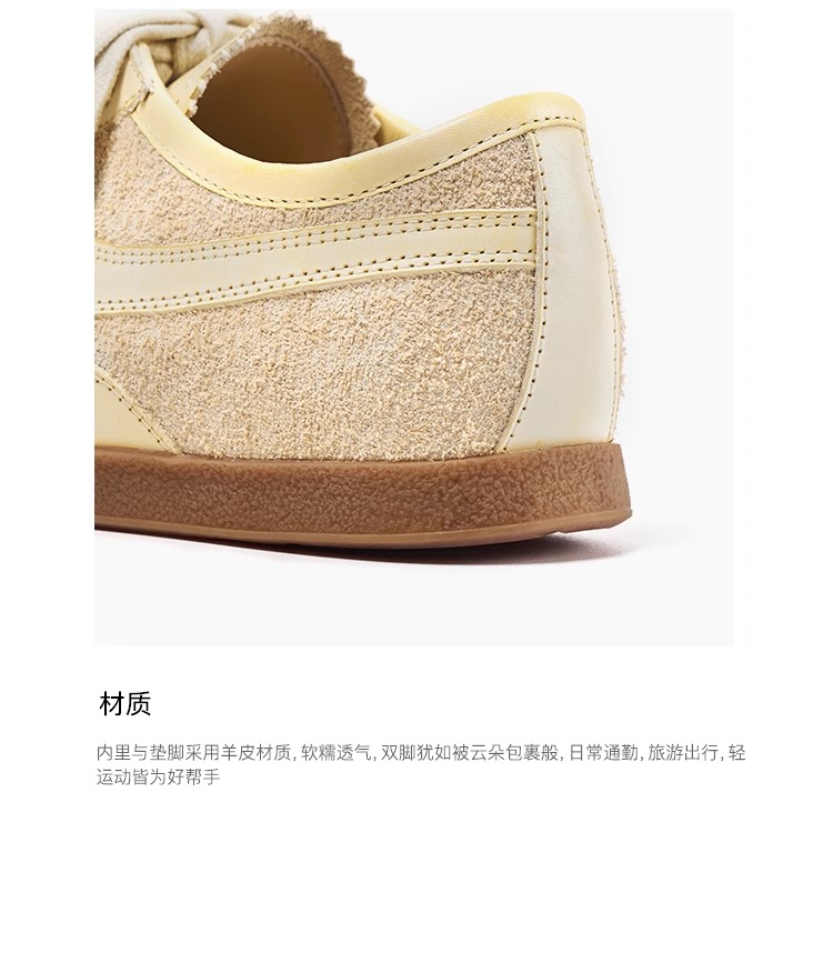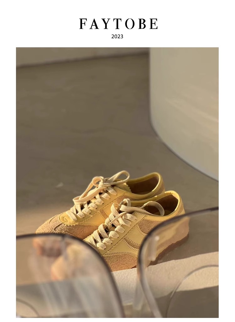 FAYTOBE 绒面休闲小牛皮羊皮轻盈德训鞋系带方圆头运动鞋