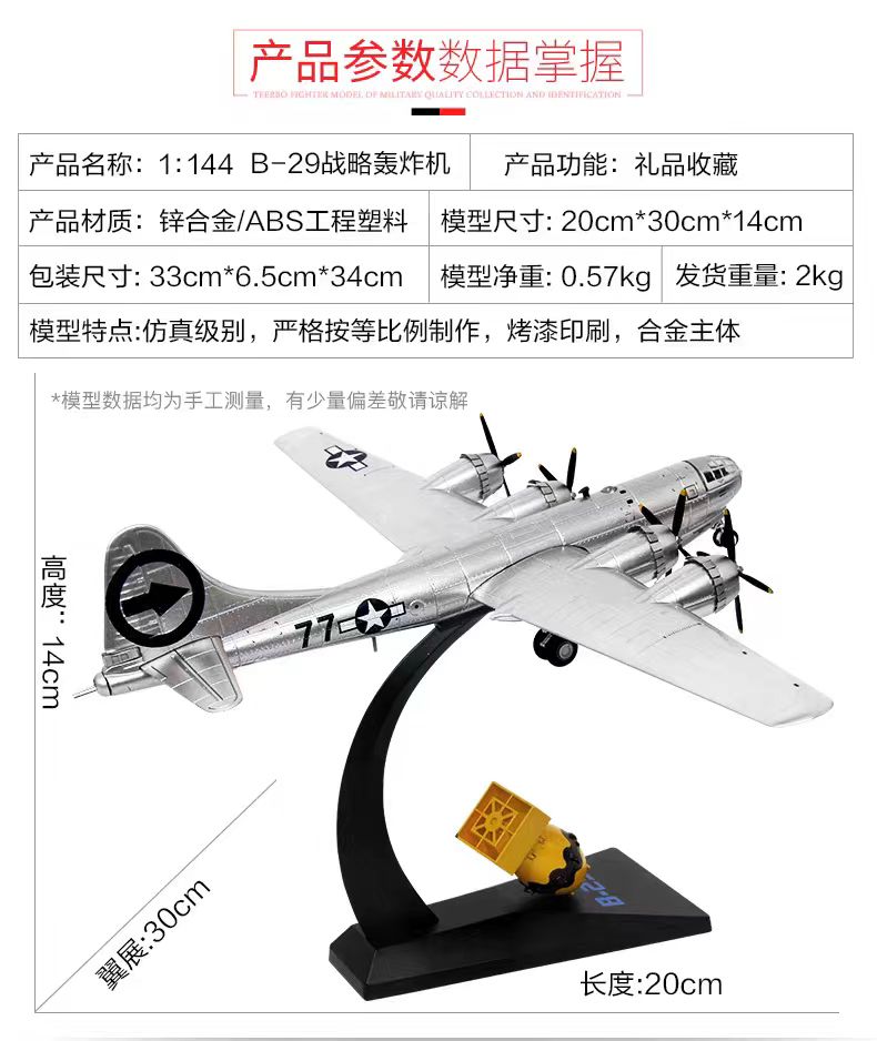 特尔博-长春航展、九三阅兵纪念品 1:144 B29轰炸机模型丨合金仿真军事模型丨收藏精品丨送礼佳品丨家居摆件