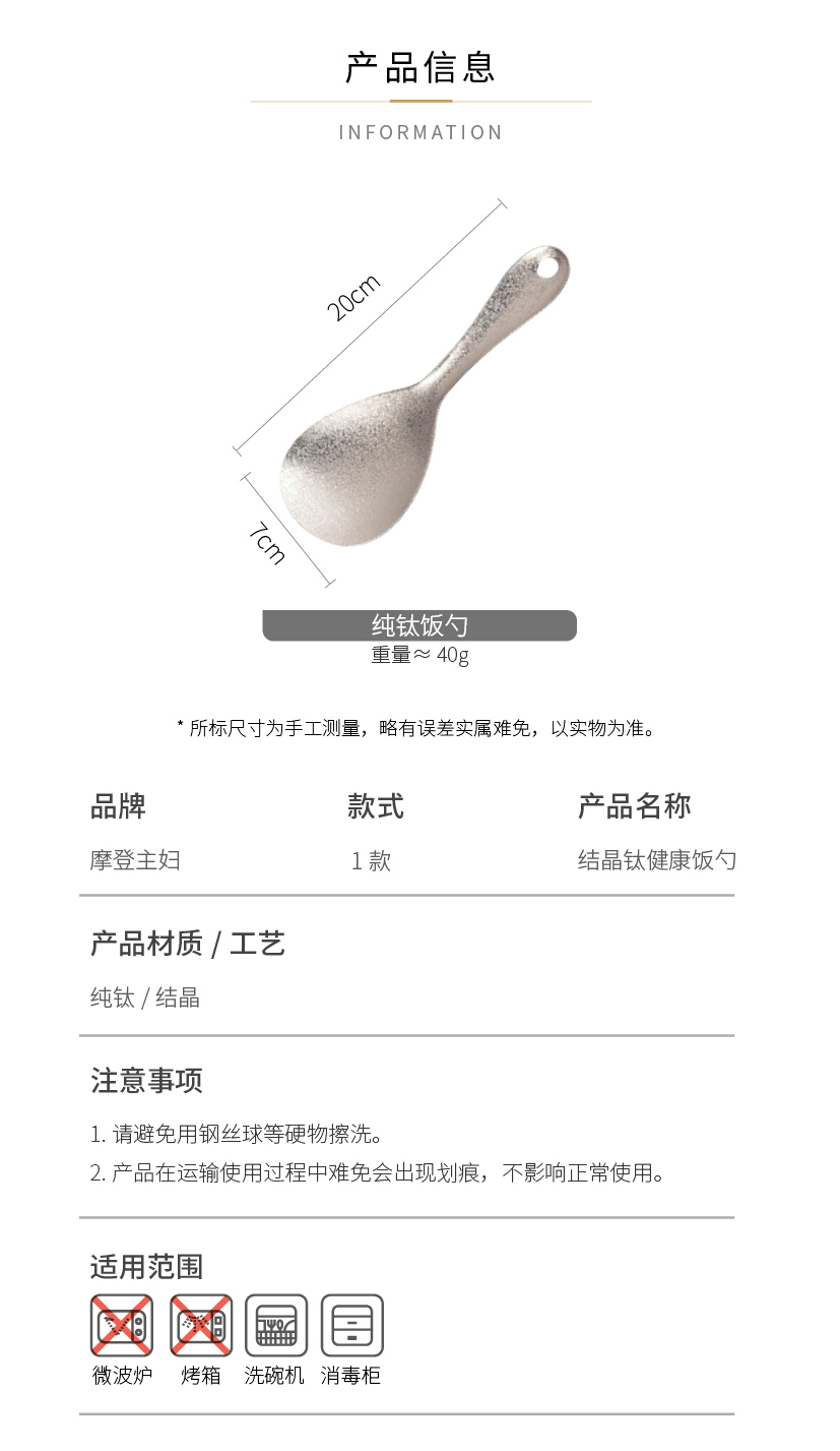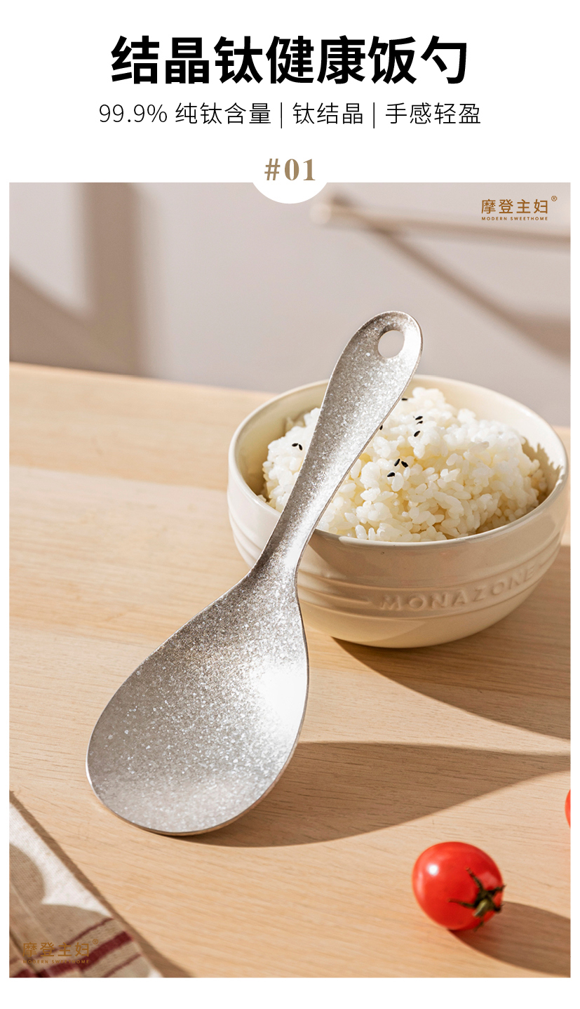 摩登主妇纯钛饭勺不粘米饭家用食品级高档精致盛饭勺子不伤锅饭铲