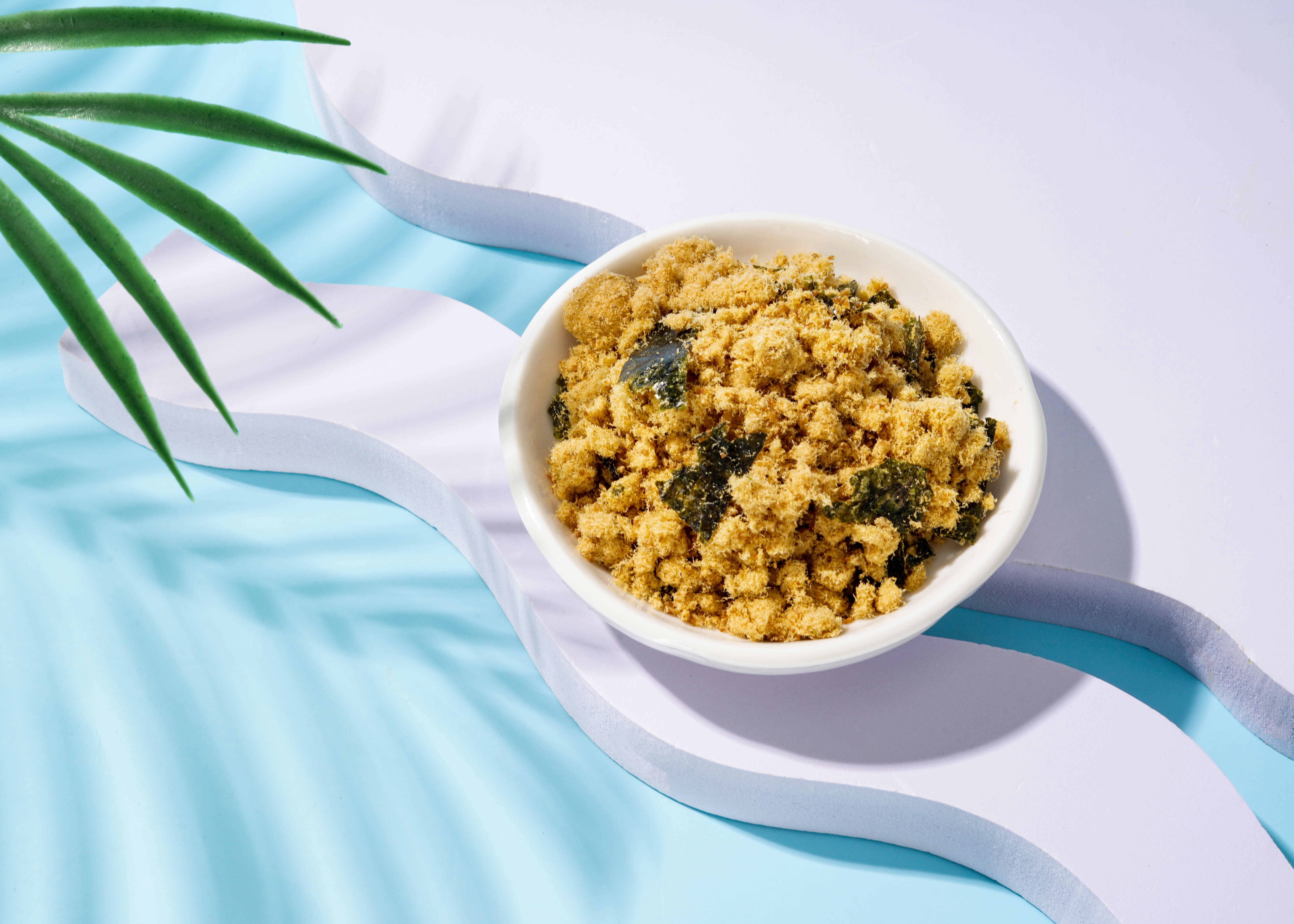 深海鱼松含有大量的蛋白质,脂肪含量较低,且多为不饱和脂肪酸,特别适合 减肥人士,吃沙拉或轻食缺乏味道,这时来点鱼松拌一拌,特别酥香,还能吃到鱼肉感。