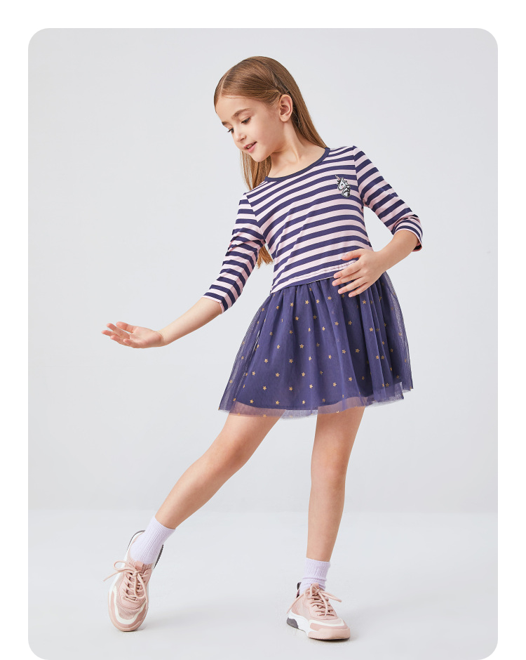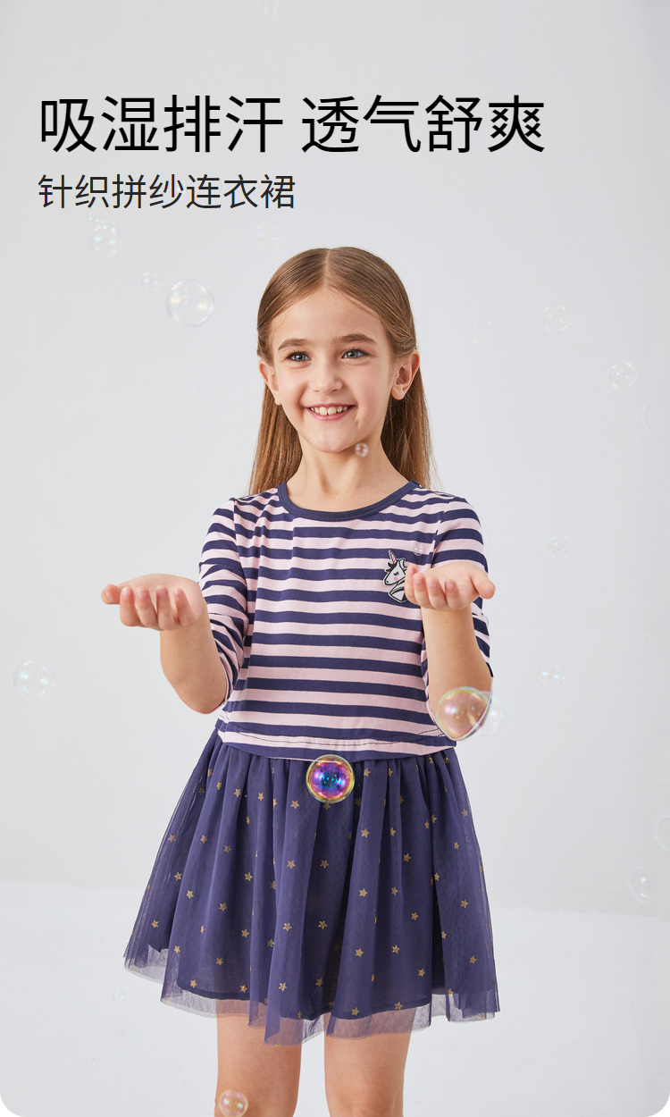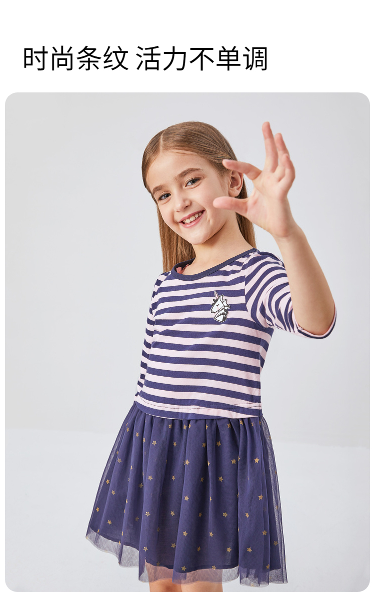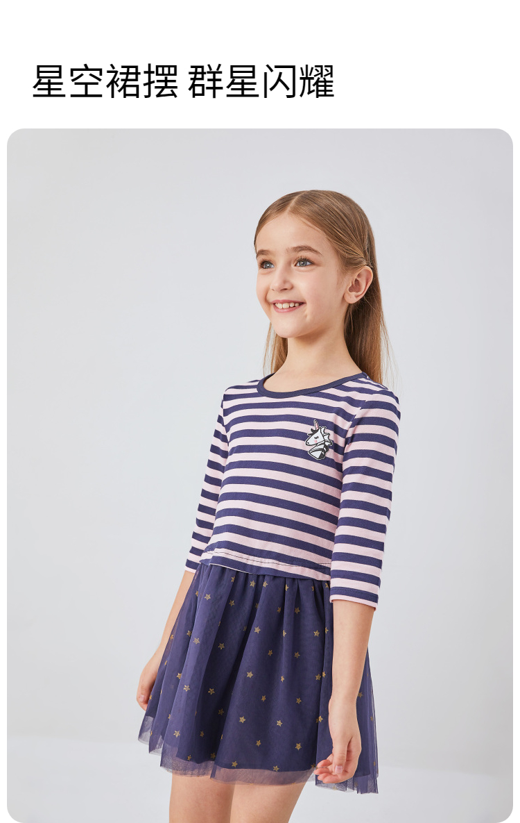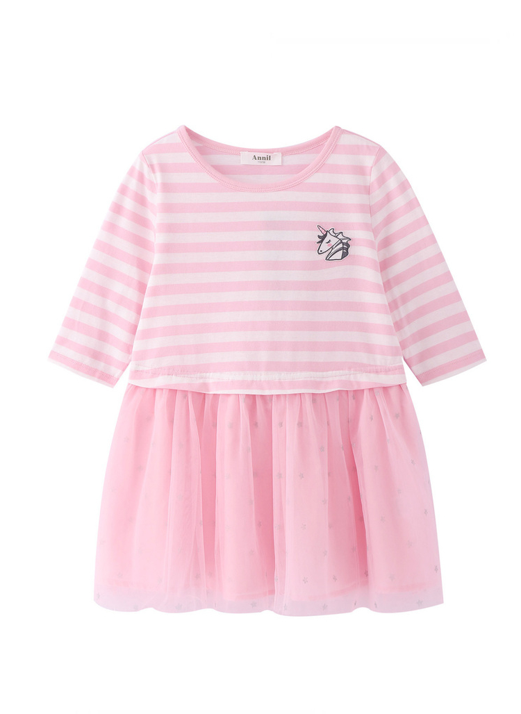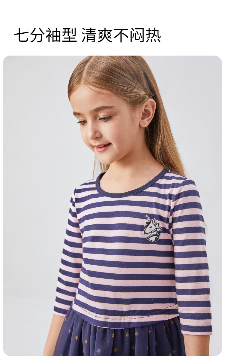 女童七分袖连衣裙春季新款安奈儿童装EG413110