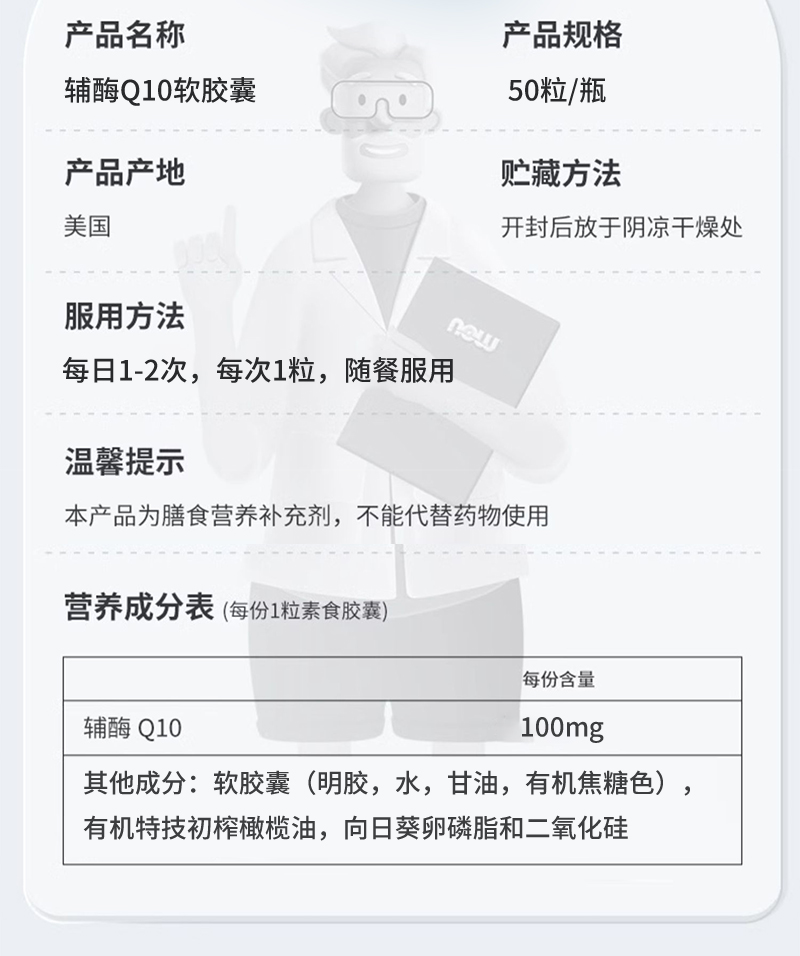【NOW】美国诺奥 辅酶Q10软胶囊 健康心脏备孕常备 COQ10 100mg*50粒