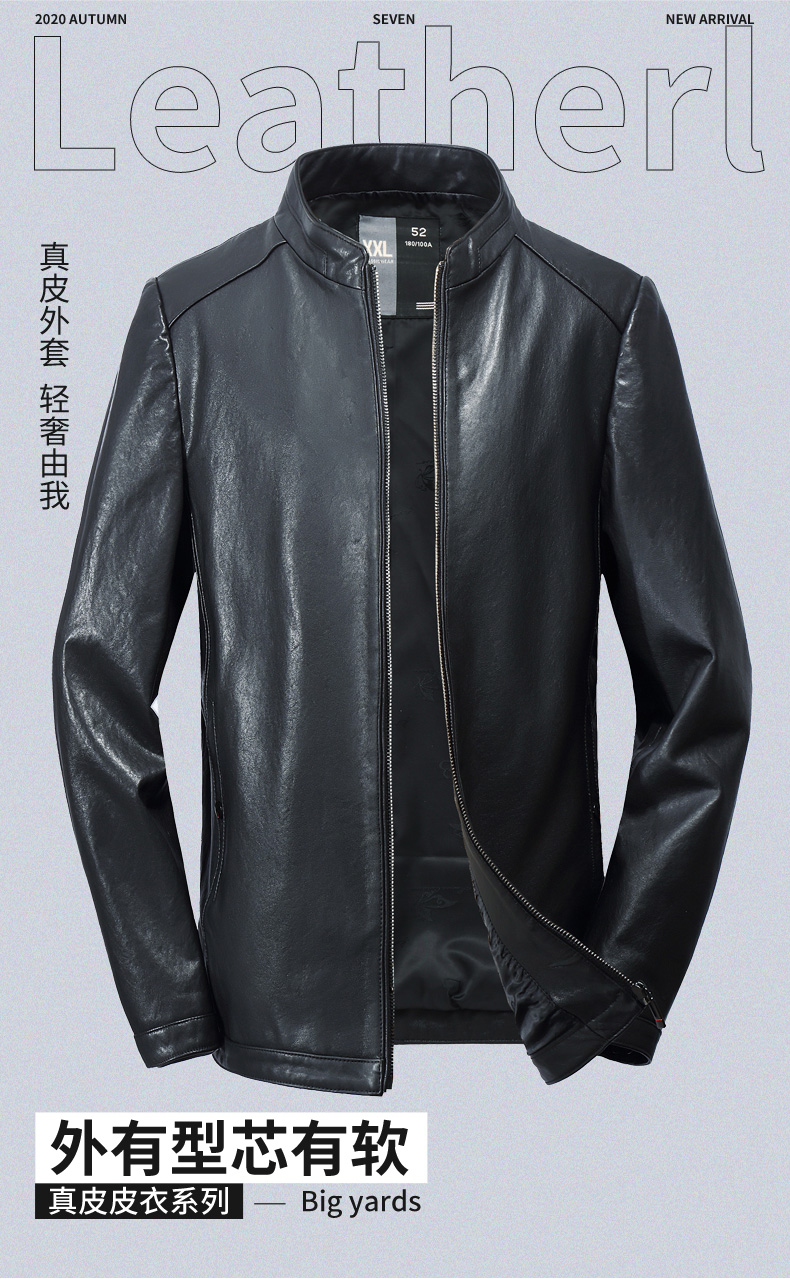 【真皮】大依优型绵羊皮大码皮衣加肥加大立领外套大号休闲皮夹克皮草