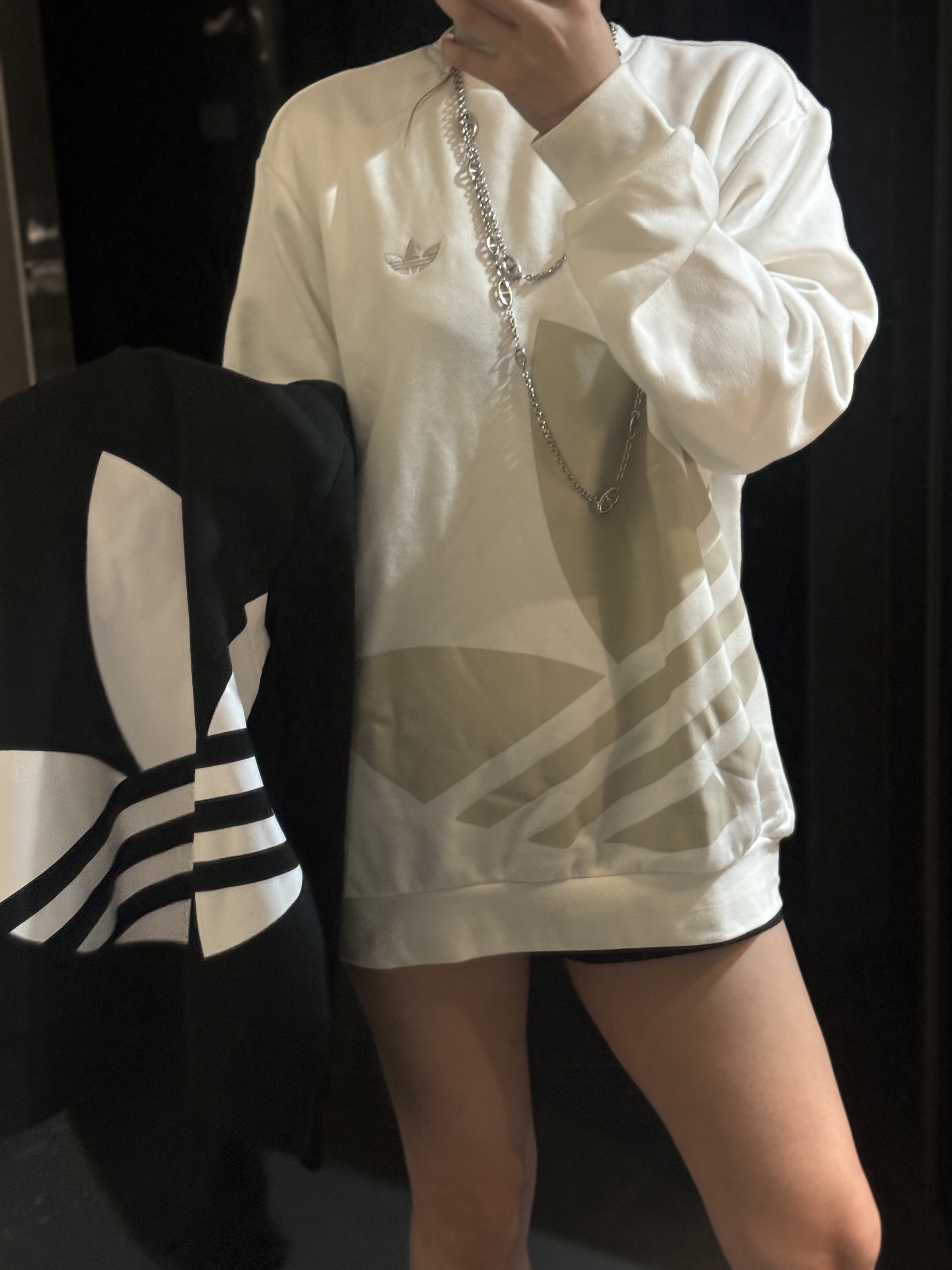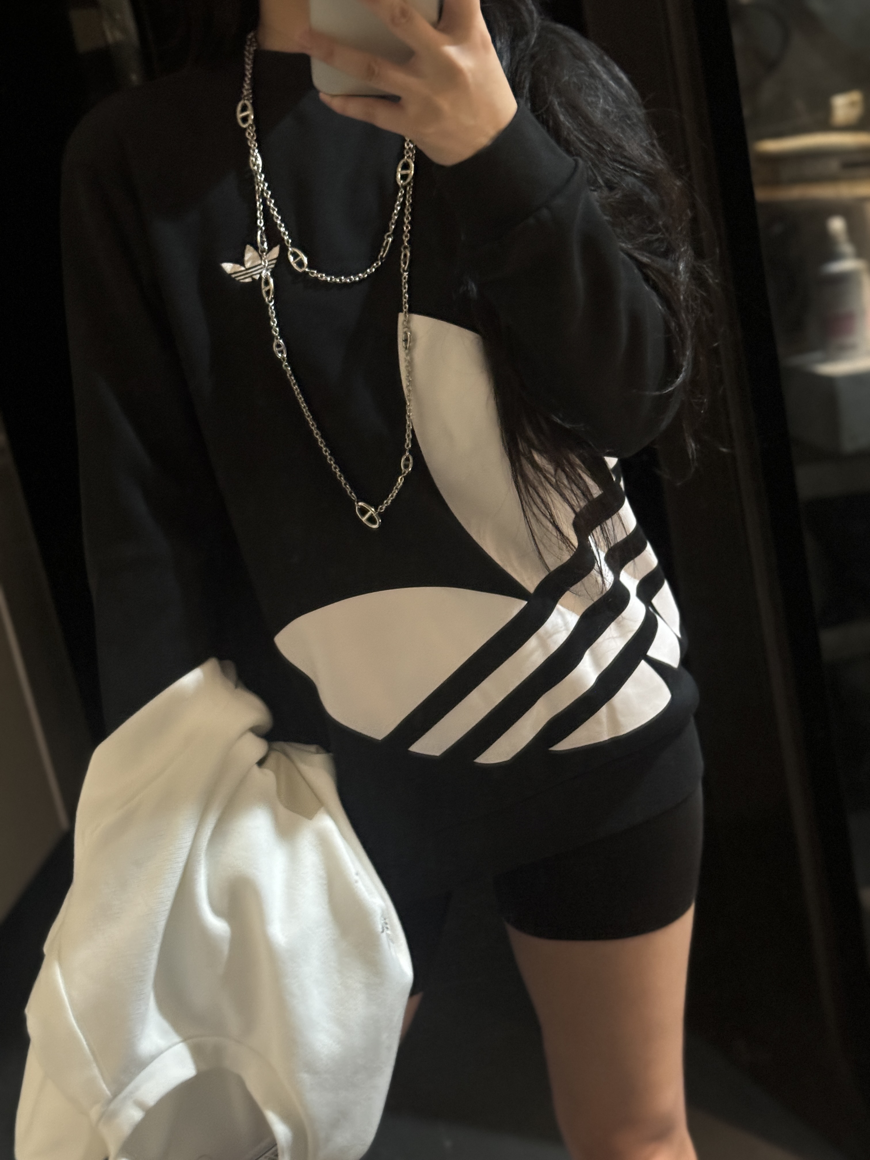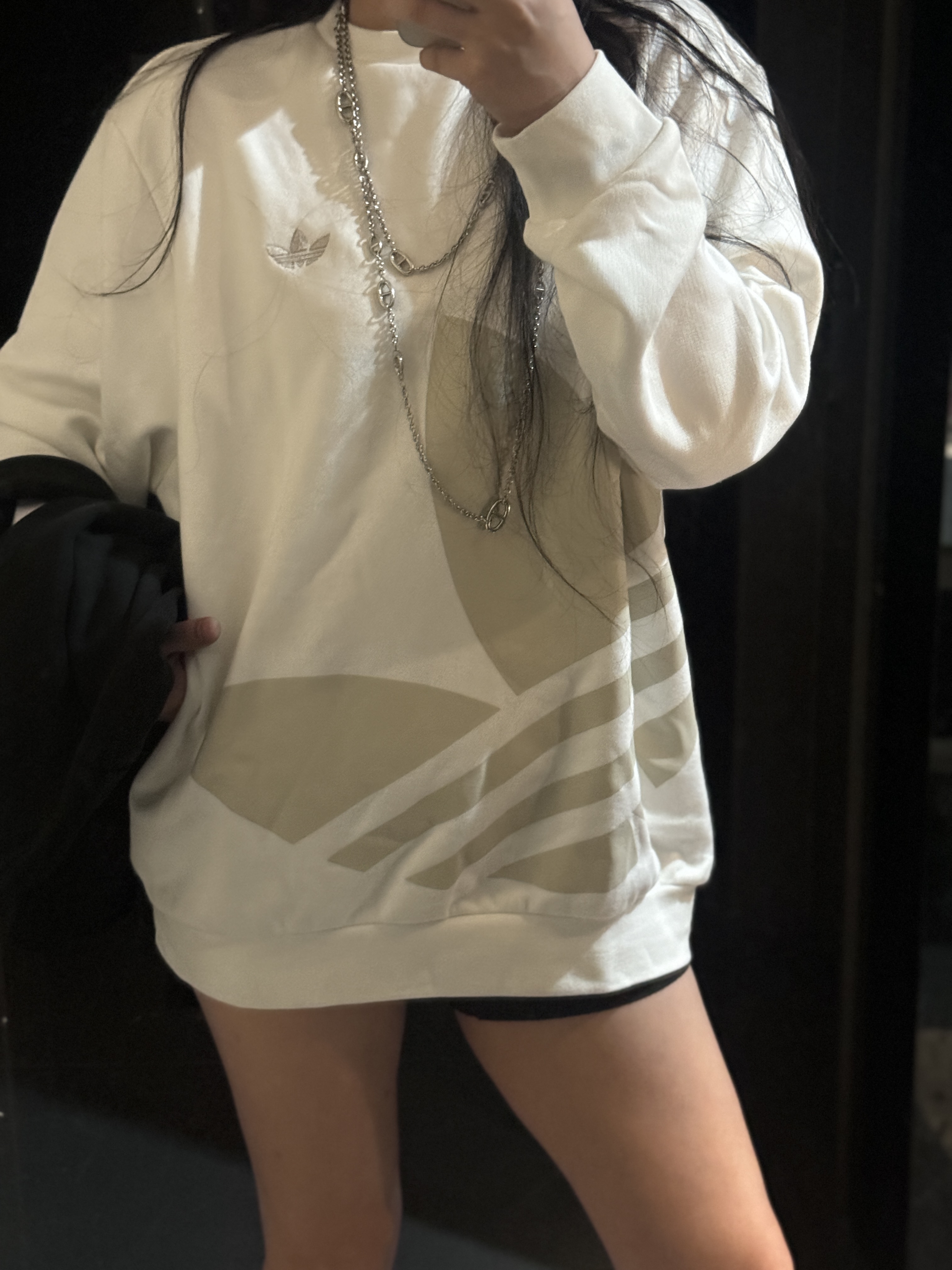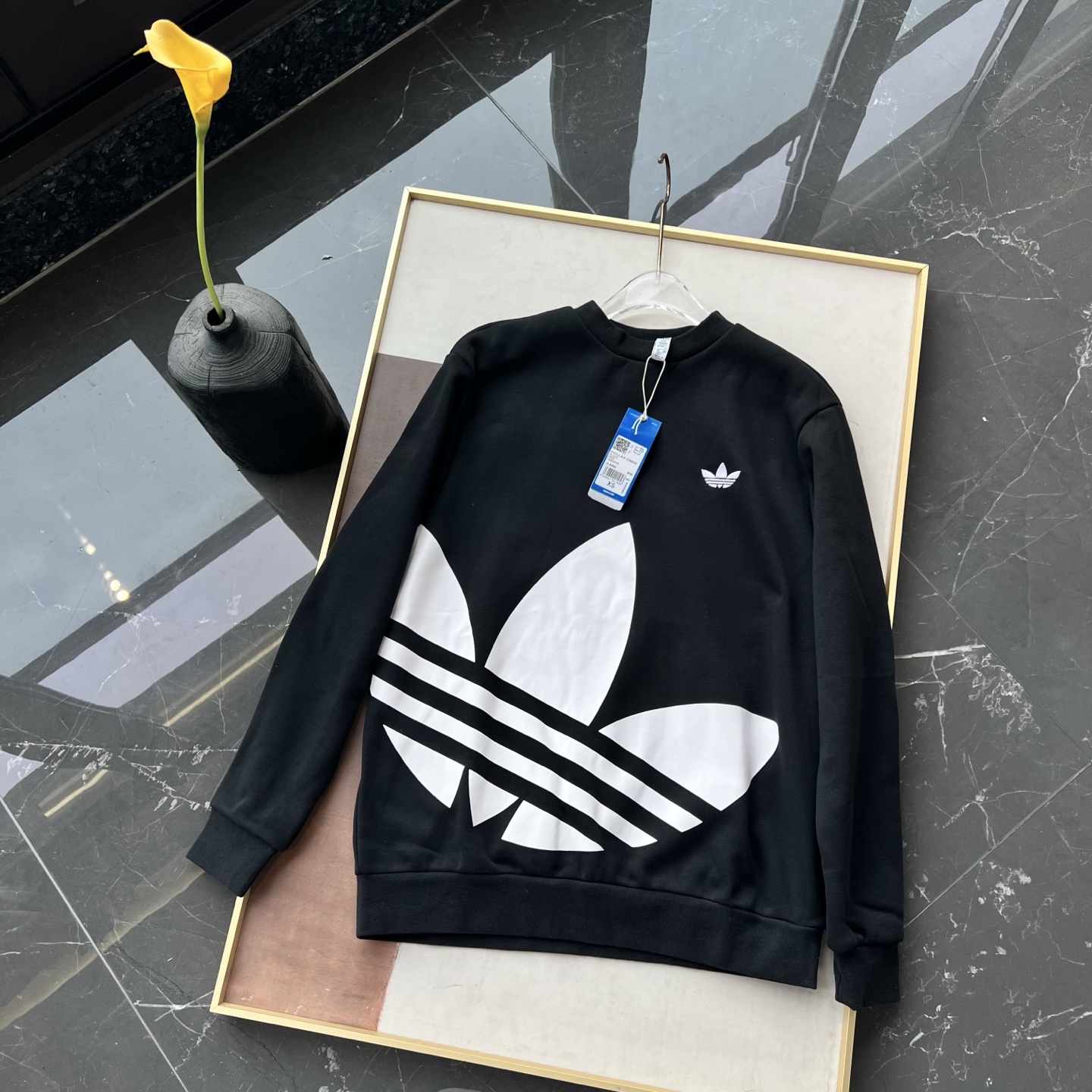 标志性大LOGO印花+经典三叶草小标,👀黑白撞色潮酷吸睛,往身上一穿就是街头焦点。宽松版型对各种身材友好,不管是配运动裤走休闲风,还是搭牛仔裤玩复古潮,它都能完美适配,让你在秋冬保暖圈里时髦到飞起~