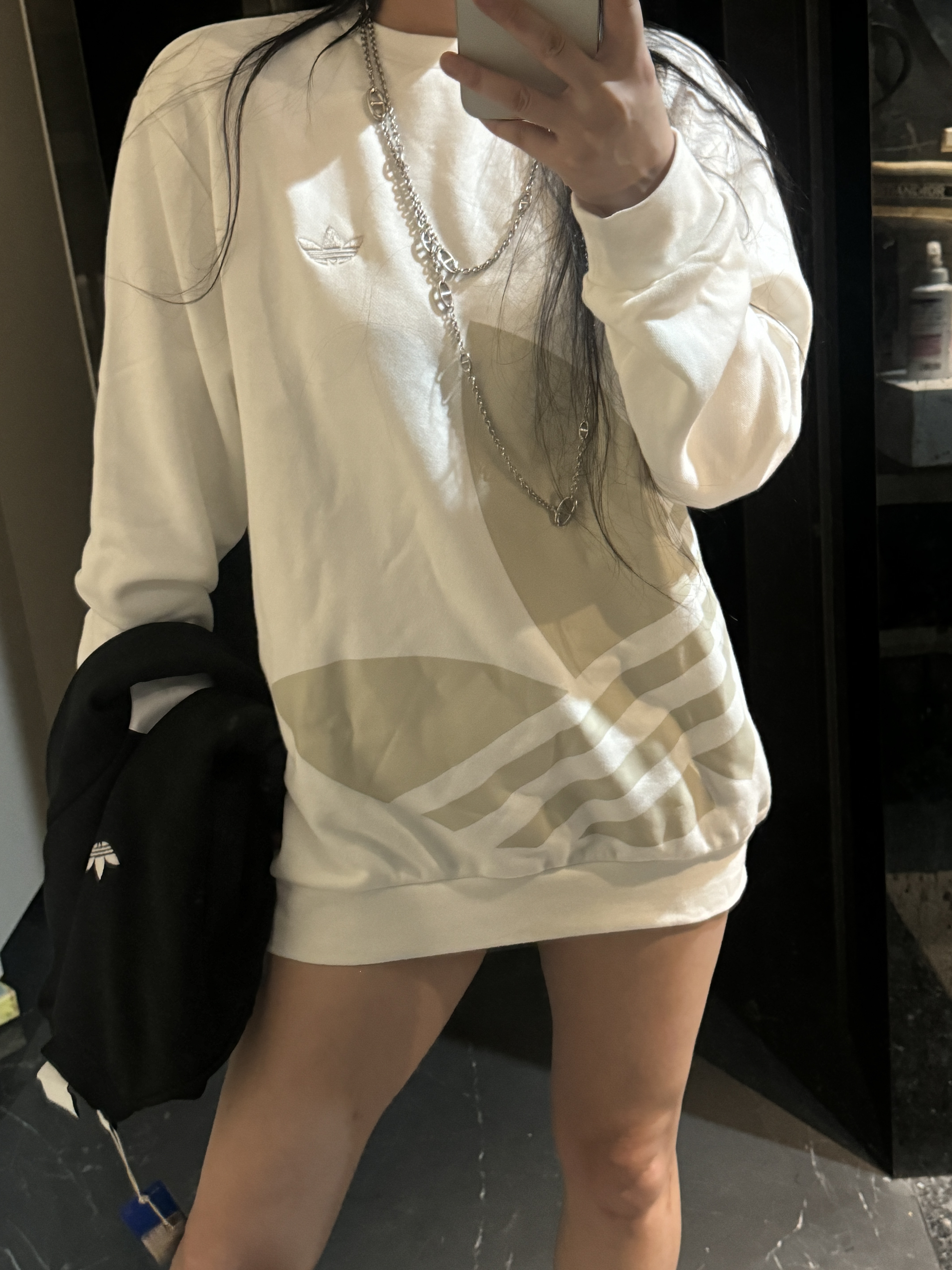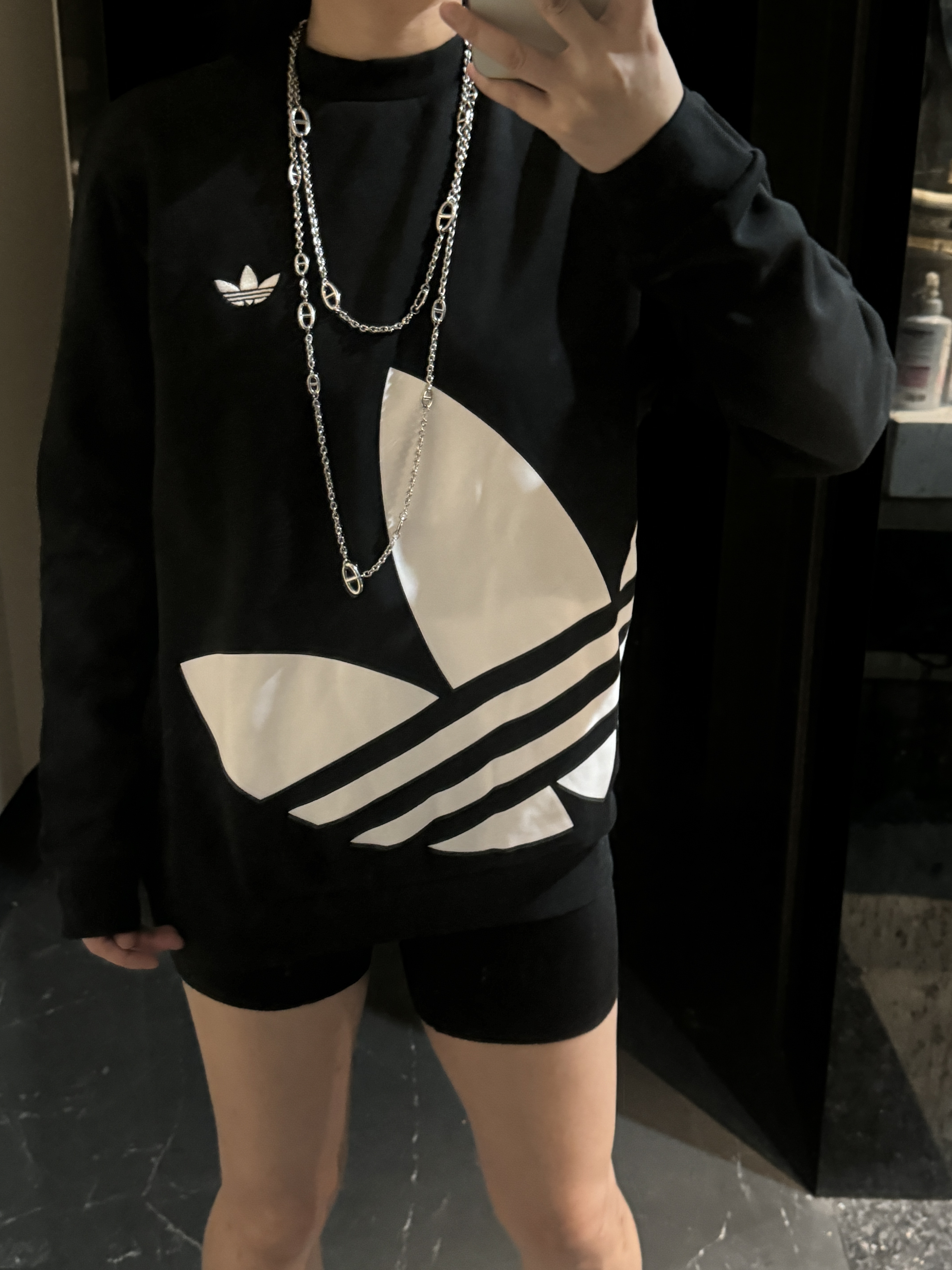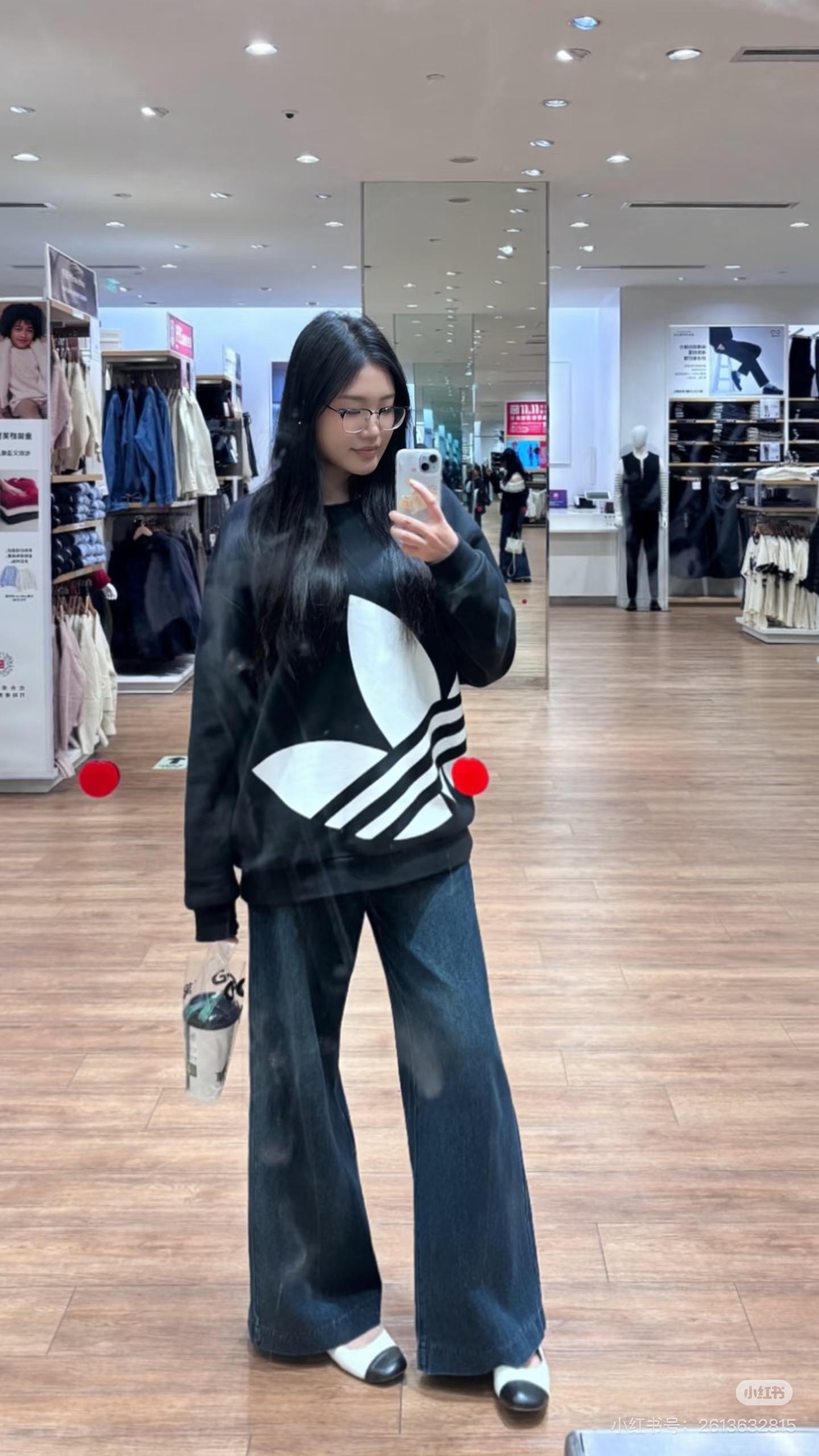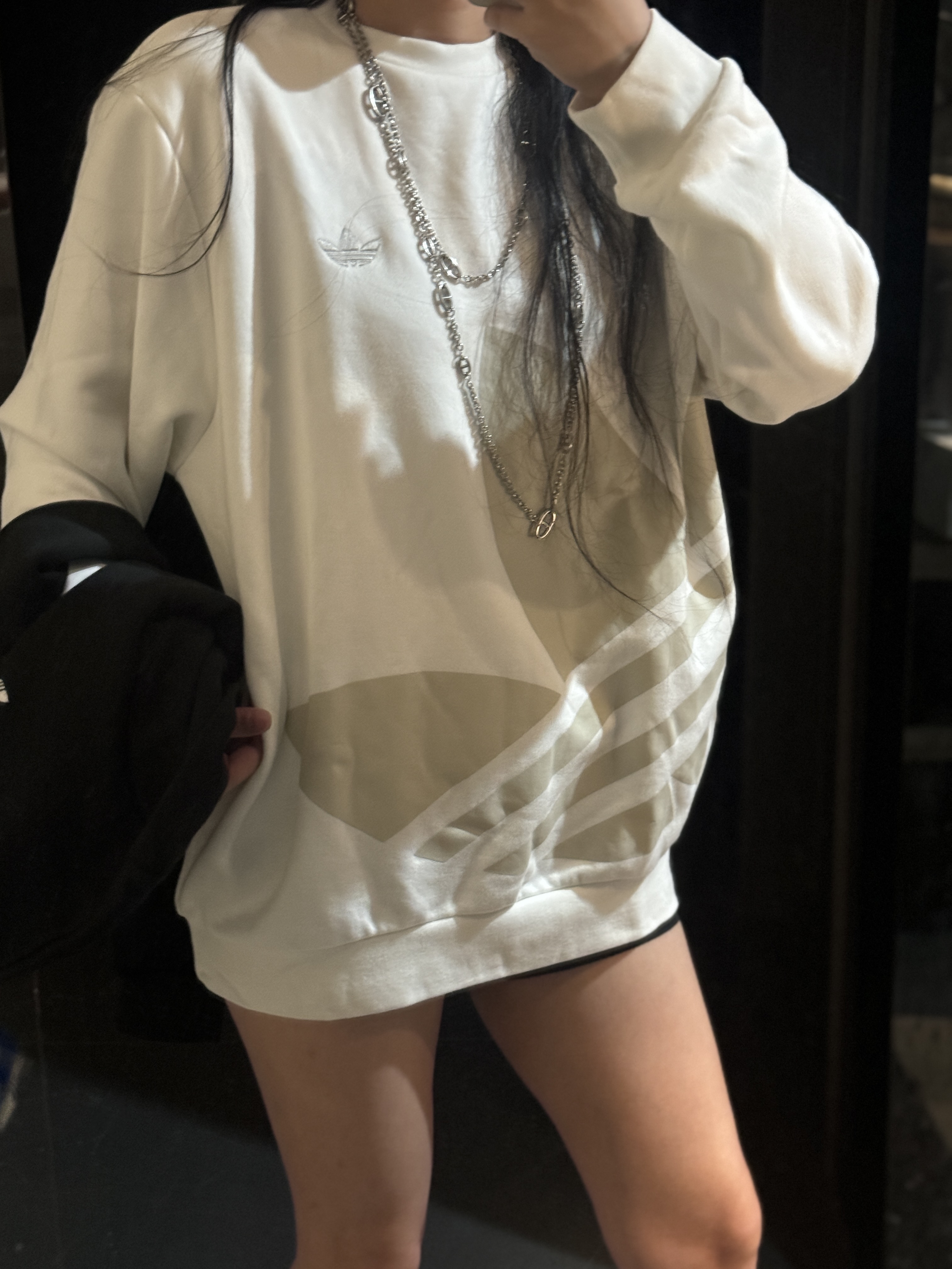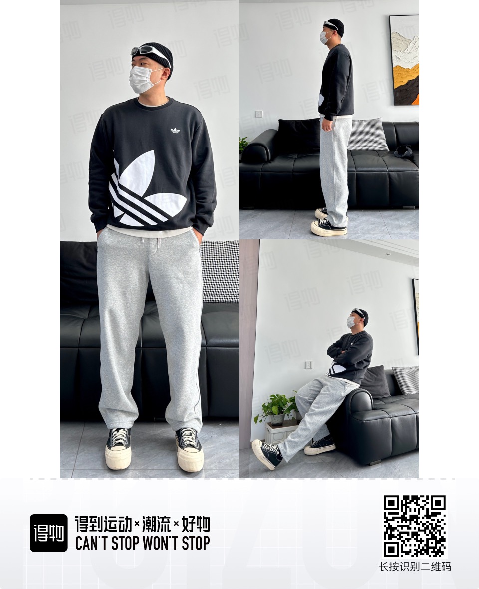 标志性大LOGO印花+经典三叶草小标,👀黑白撞色潮酷吸睛,往身上一穿就是街头焦点。宽松版型对各种身材友好,不管是配运动裤走休闲风,还是搭牛仔裤玩复古潮,它都能完美适配,让你在秋冬保暖圈里时髦到飞起~