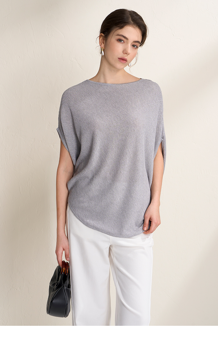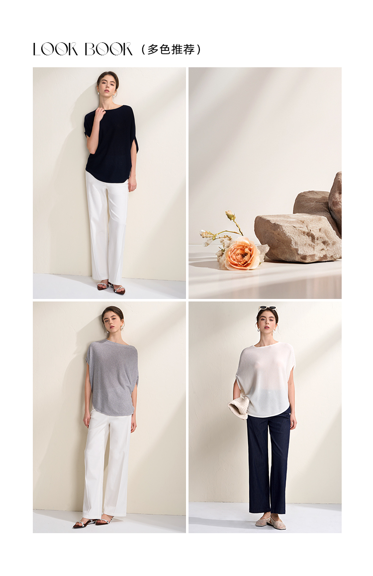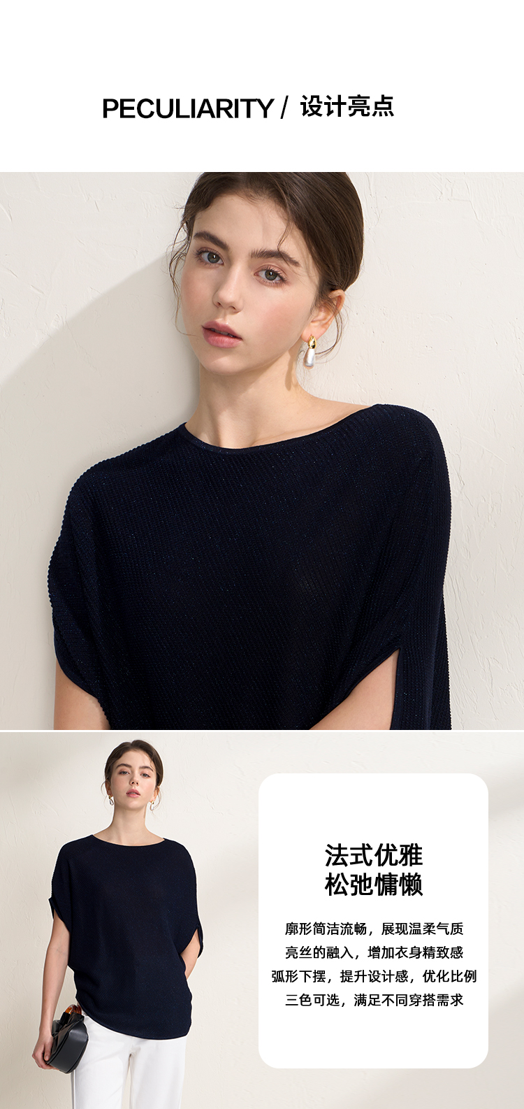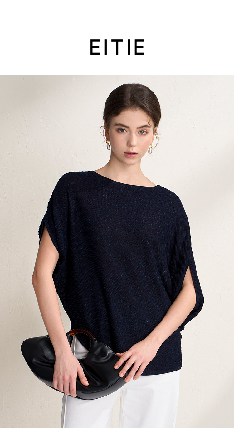 EITIE爱特爱温柔一字领慵懒宽松显瘦蝙蝠袖短袖T恤2026夏季新款B2601214