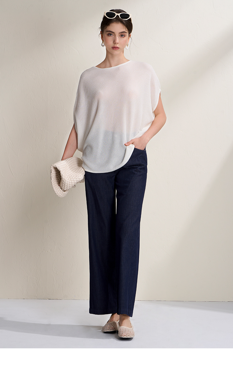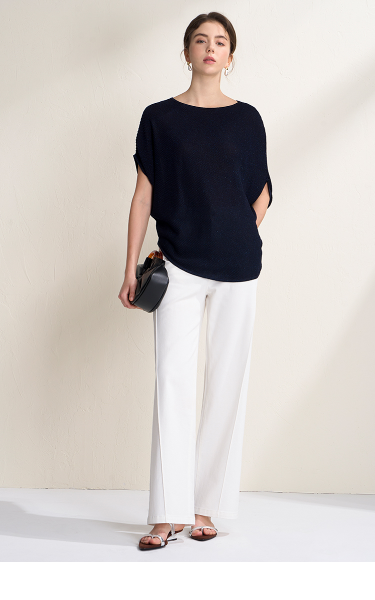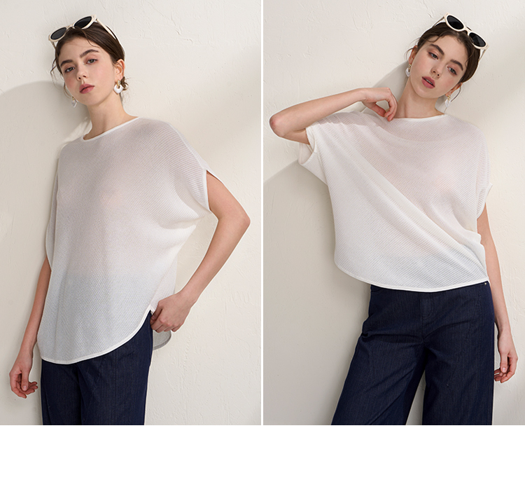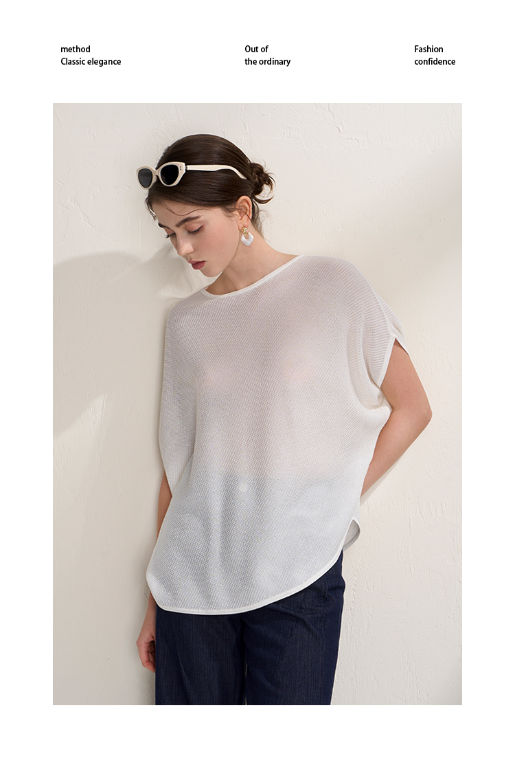 EITIE爱特爱温柔一字领慵懒宽松显瘦蝙蝠袖短袖T恤2026夏季新款B2601214