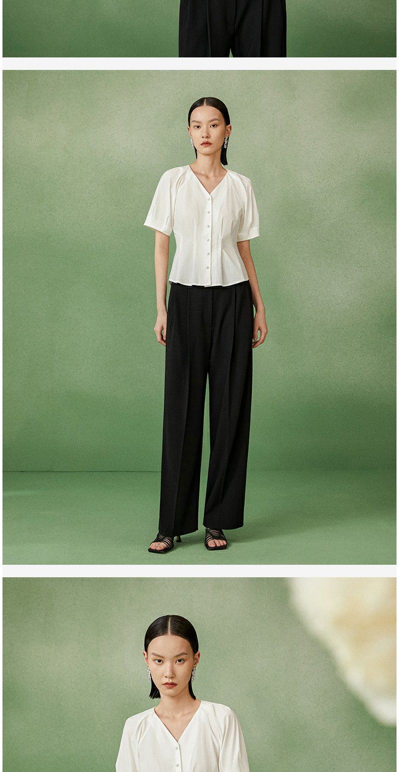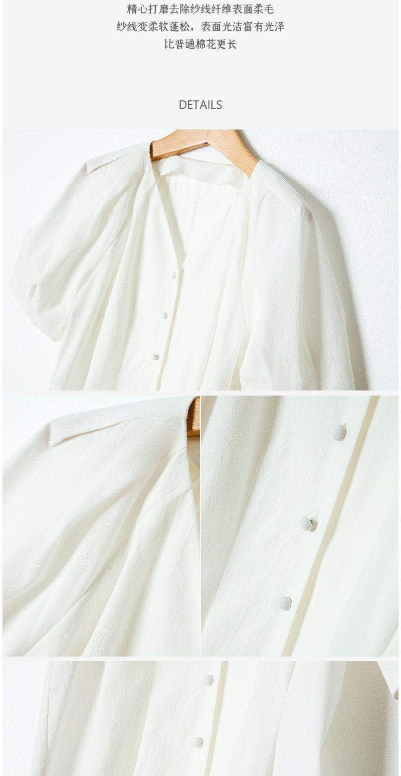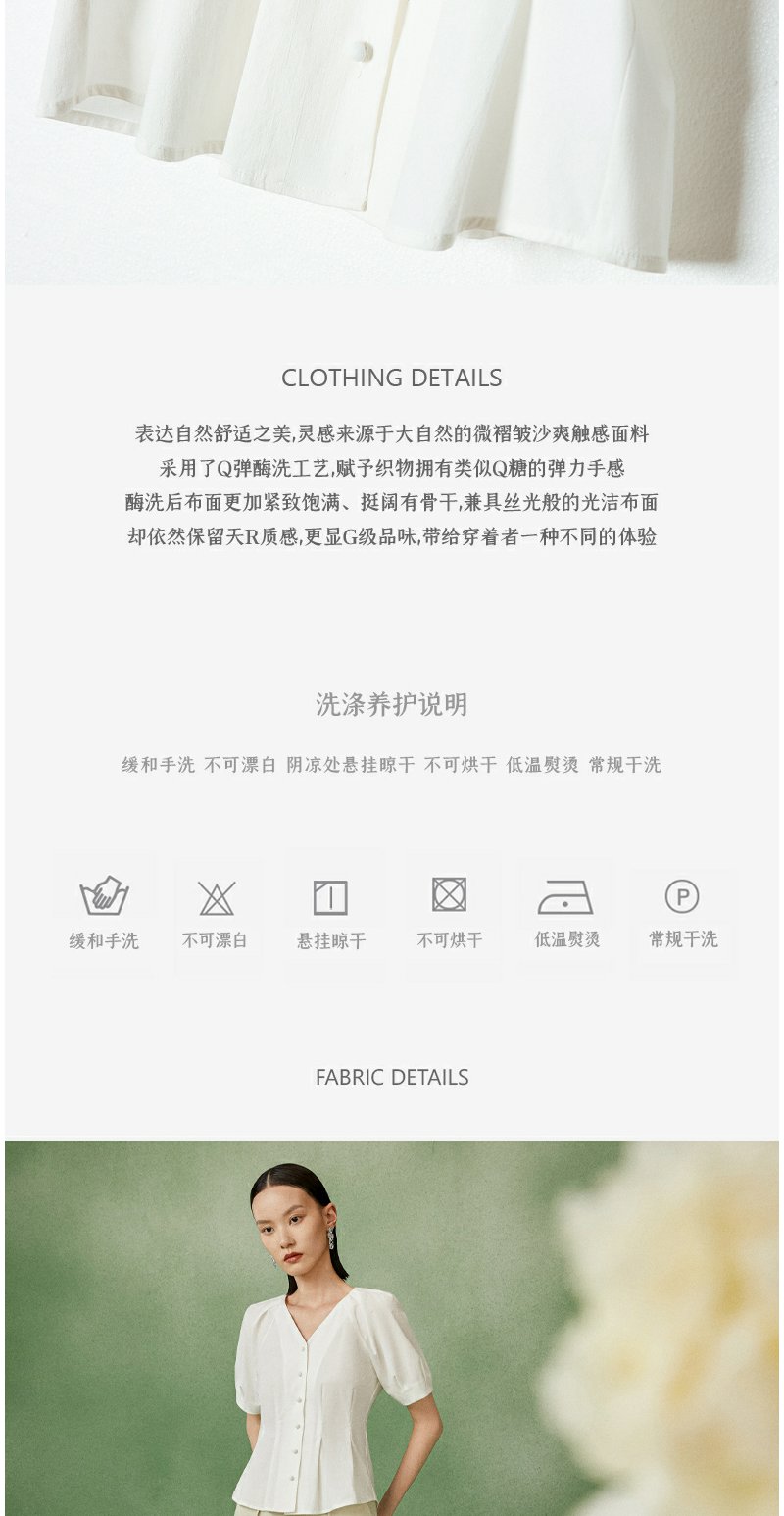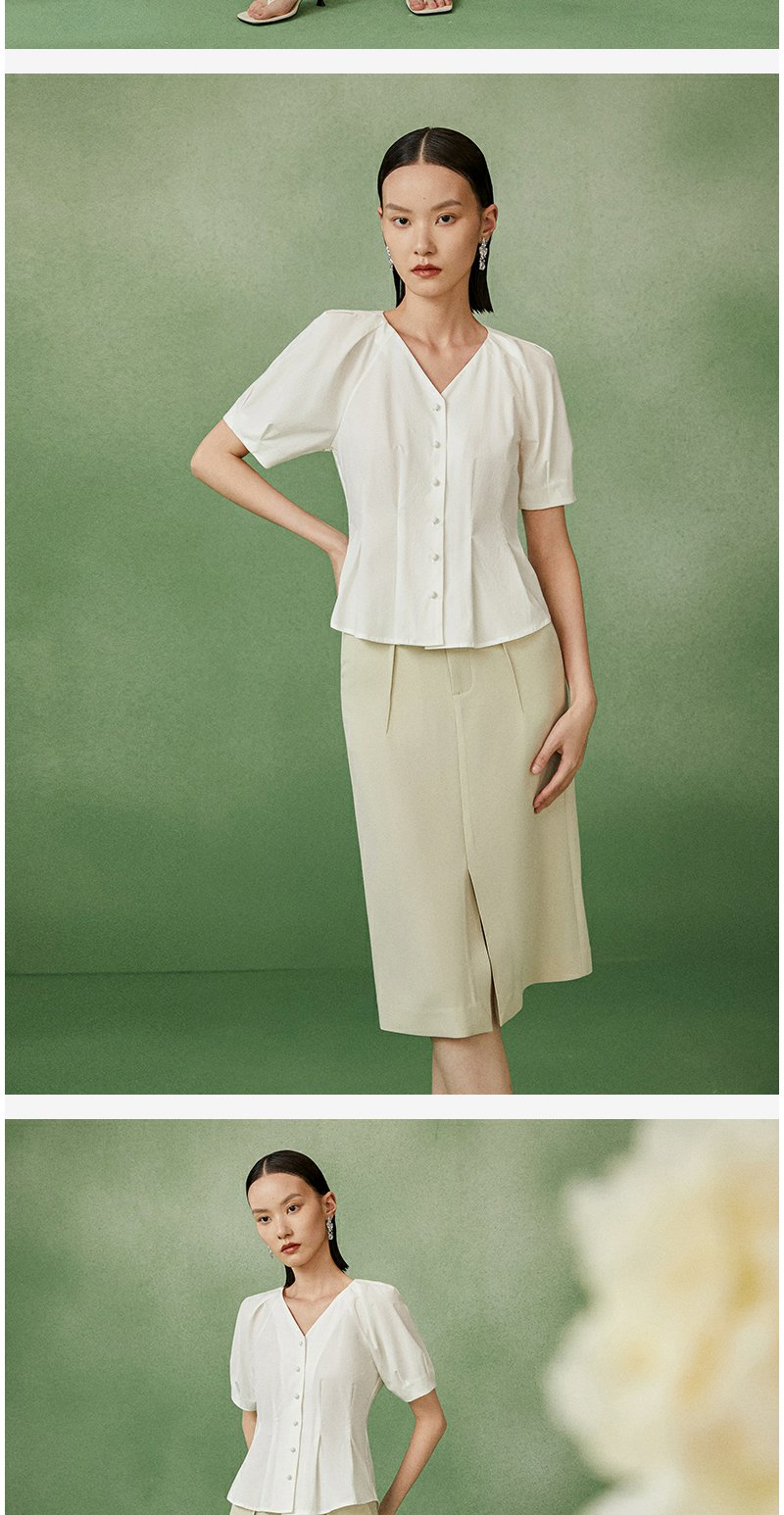 C+IMPRESS/西嘉 新疆长绒棉白色法式宫廷复古V领泡泡袖衬衫上衣女CS2202021