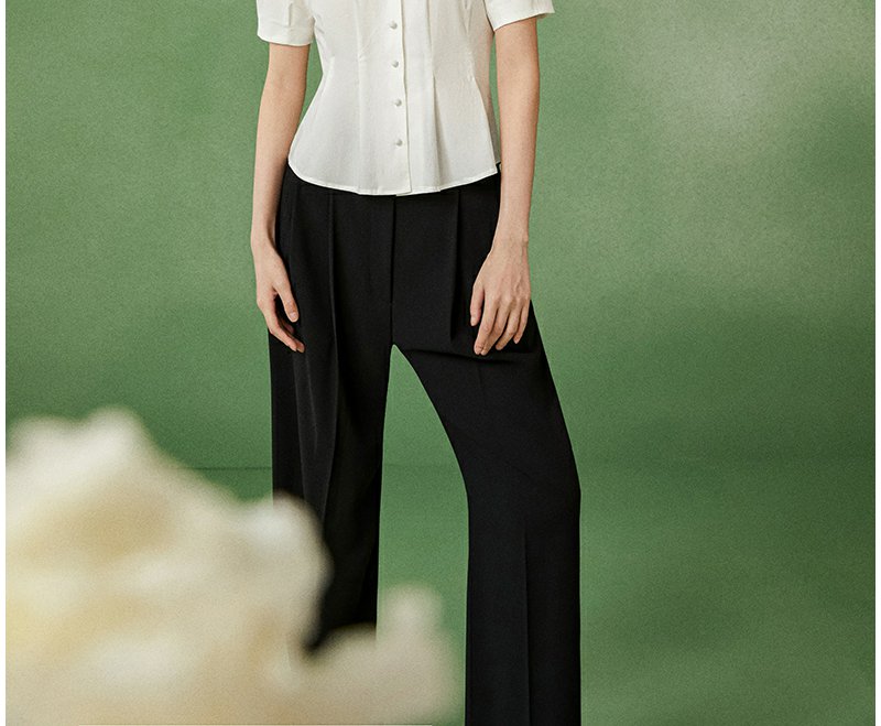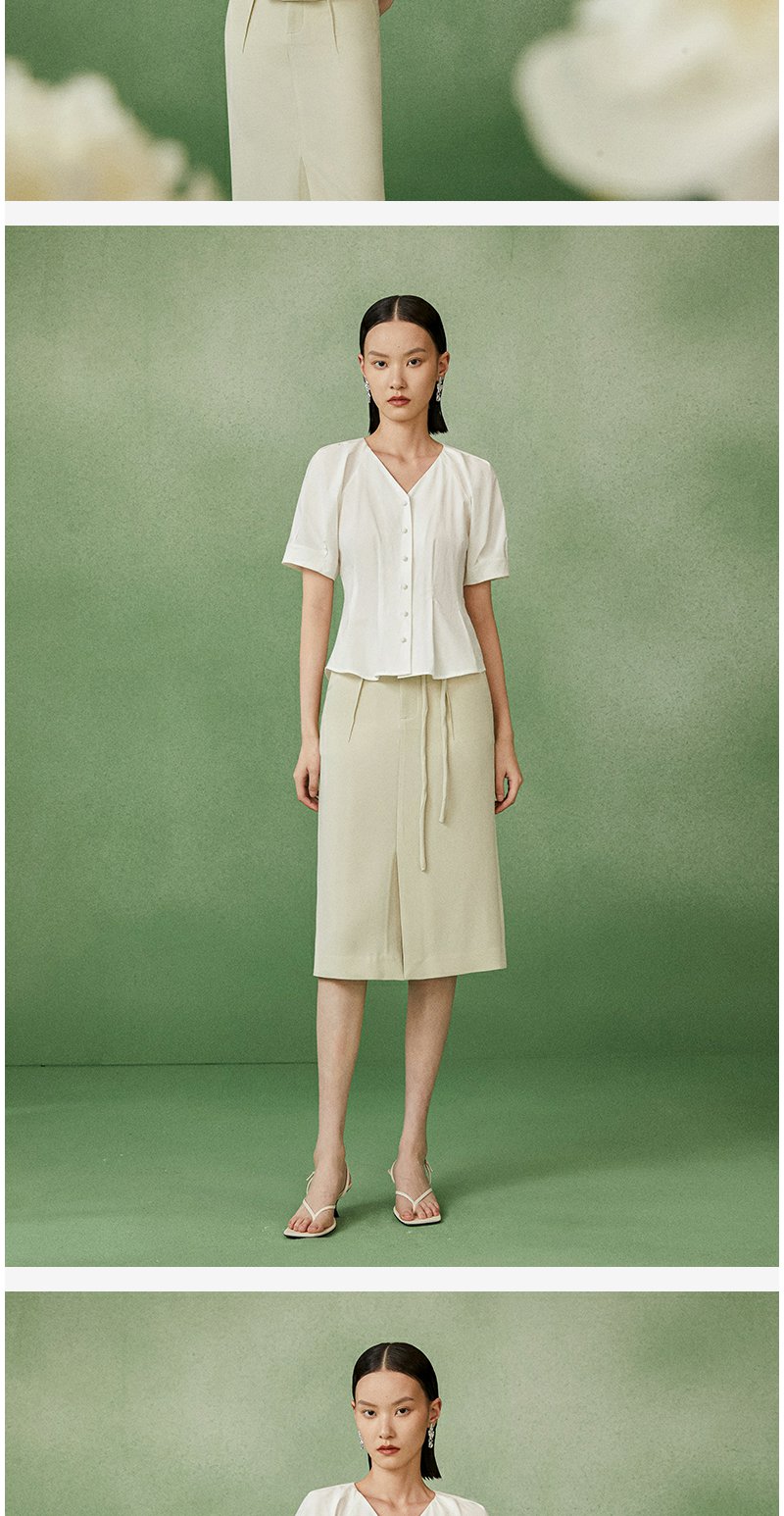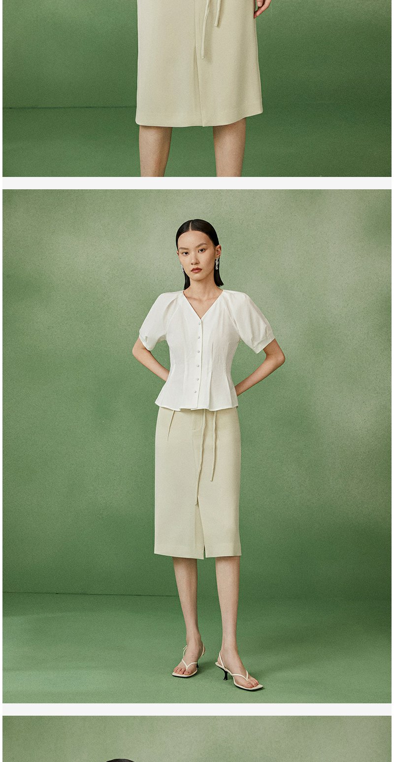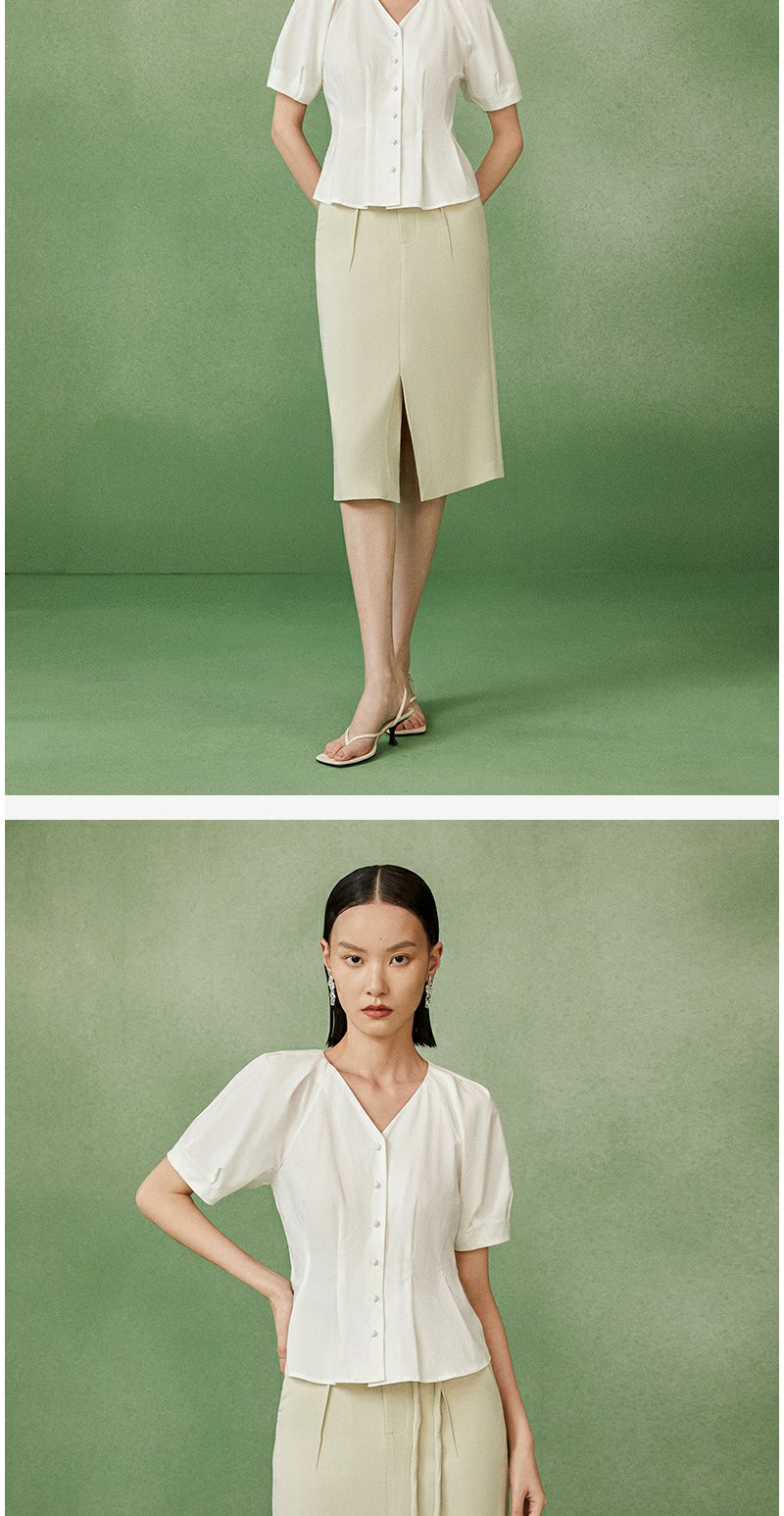C+IMPRESS/西嘉 新疆长绒棉白色法式宫廷复古V领泡泡袖衬衫上衣女CS2202021
