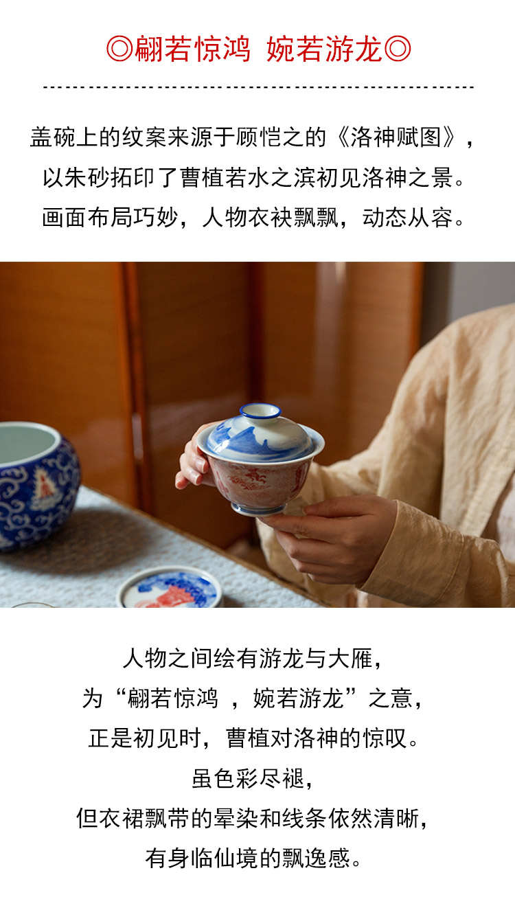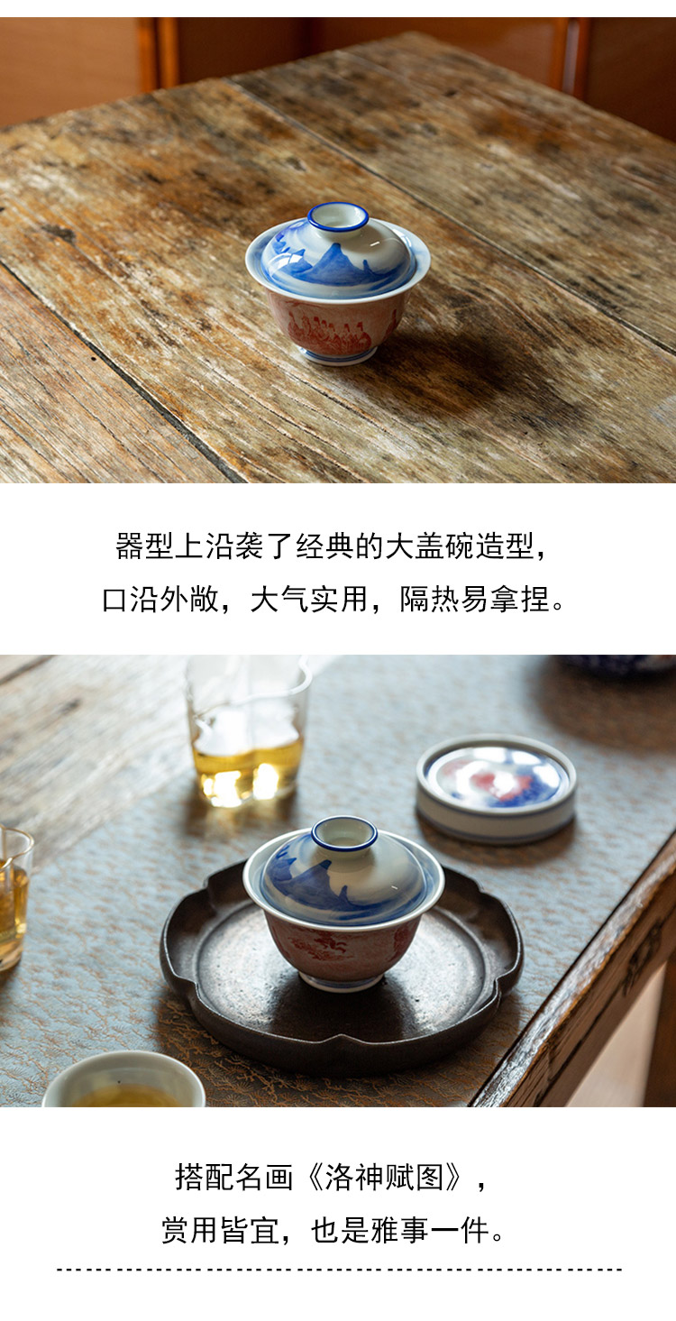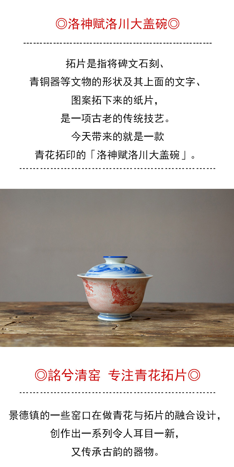 茶香记 洛神赋洛川大盖碗 詺兮清窑 洛神赋图 青花拓片 防烫实用