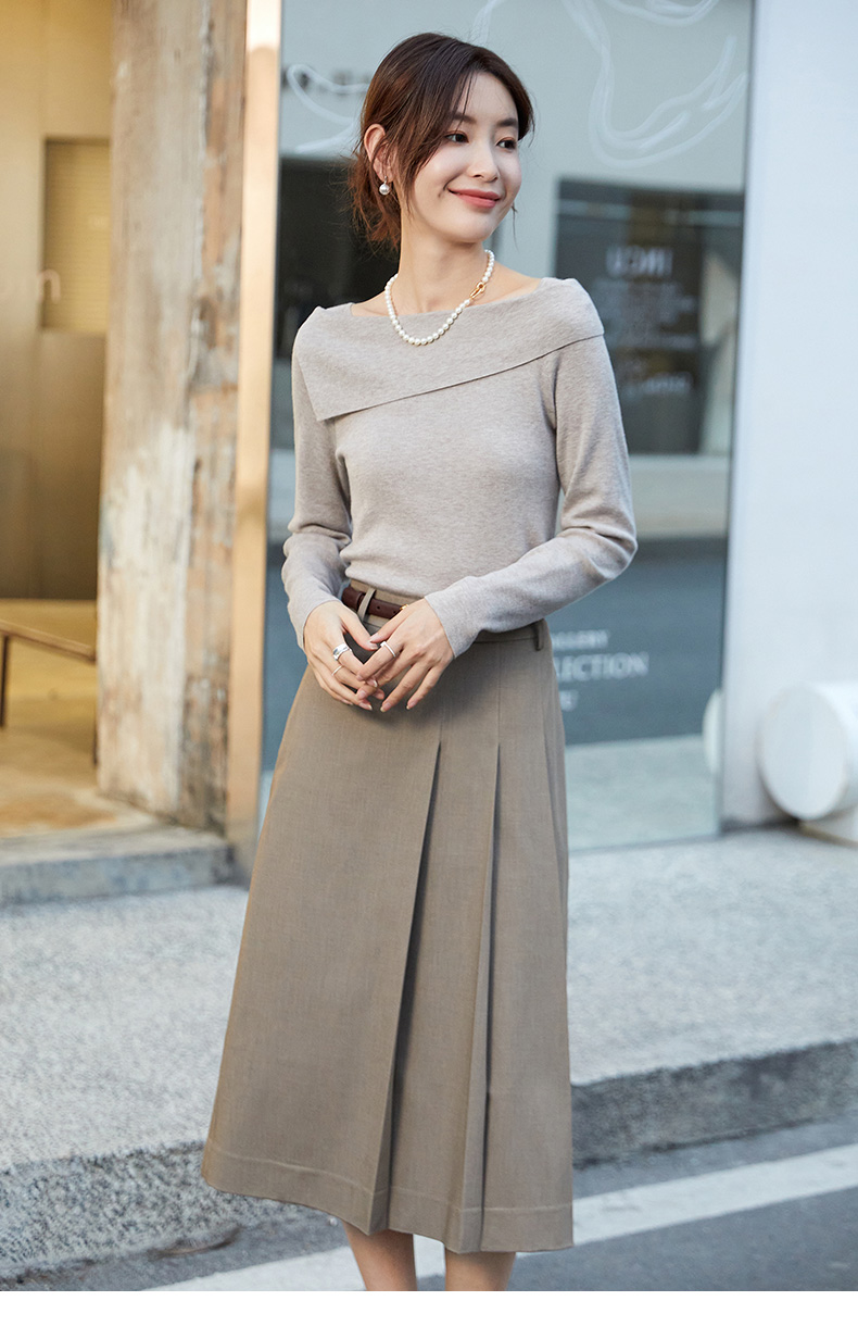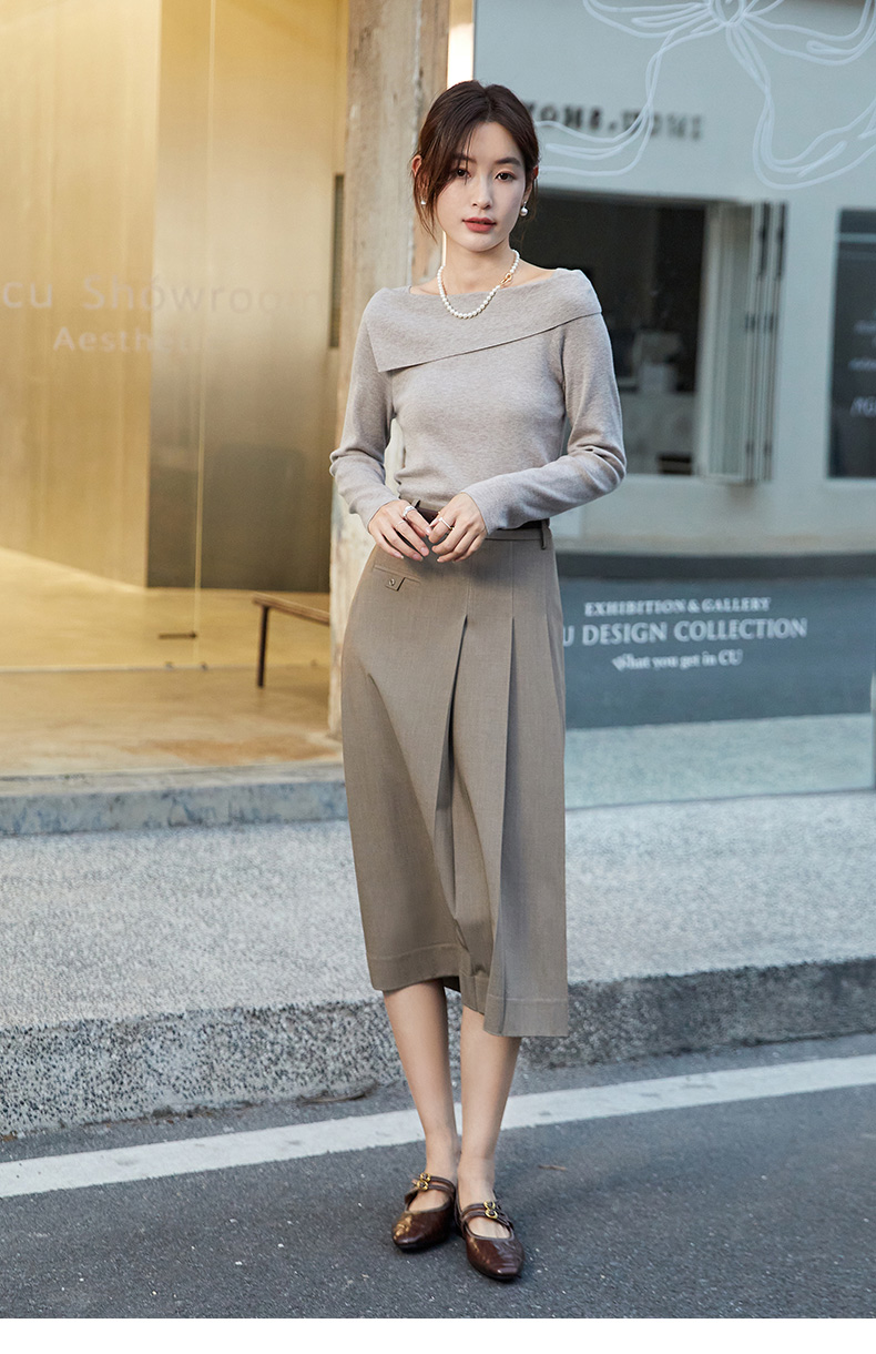 秋季新款斜领针织衫女 温柔风修身显瘦长袖毛衣气质内搭上衣