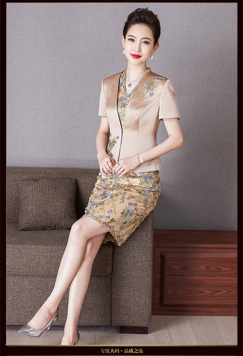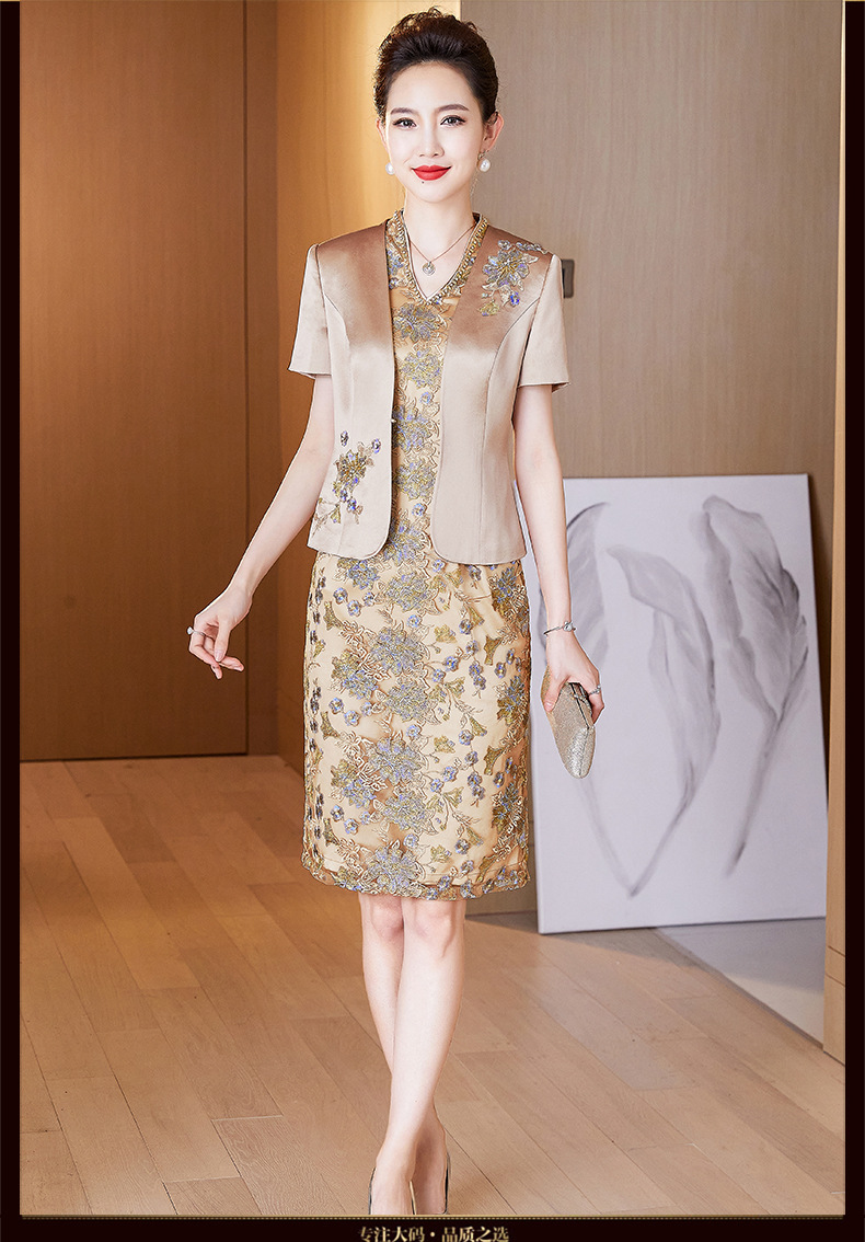 LC经典香槟金丈母娘刺绣礼服春洋气年轻喜婆婆婚宴装