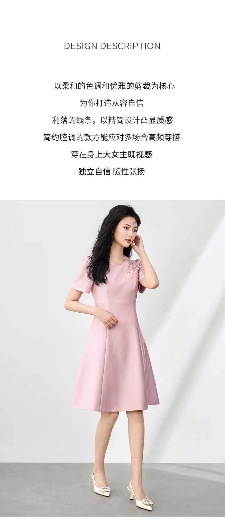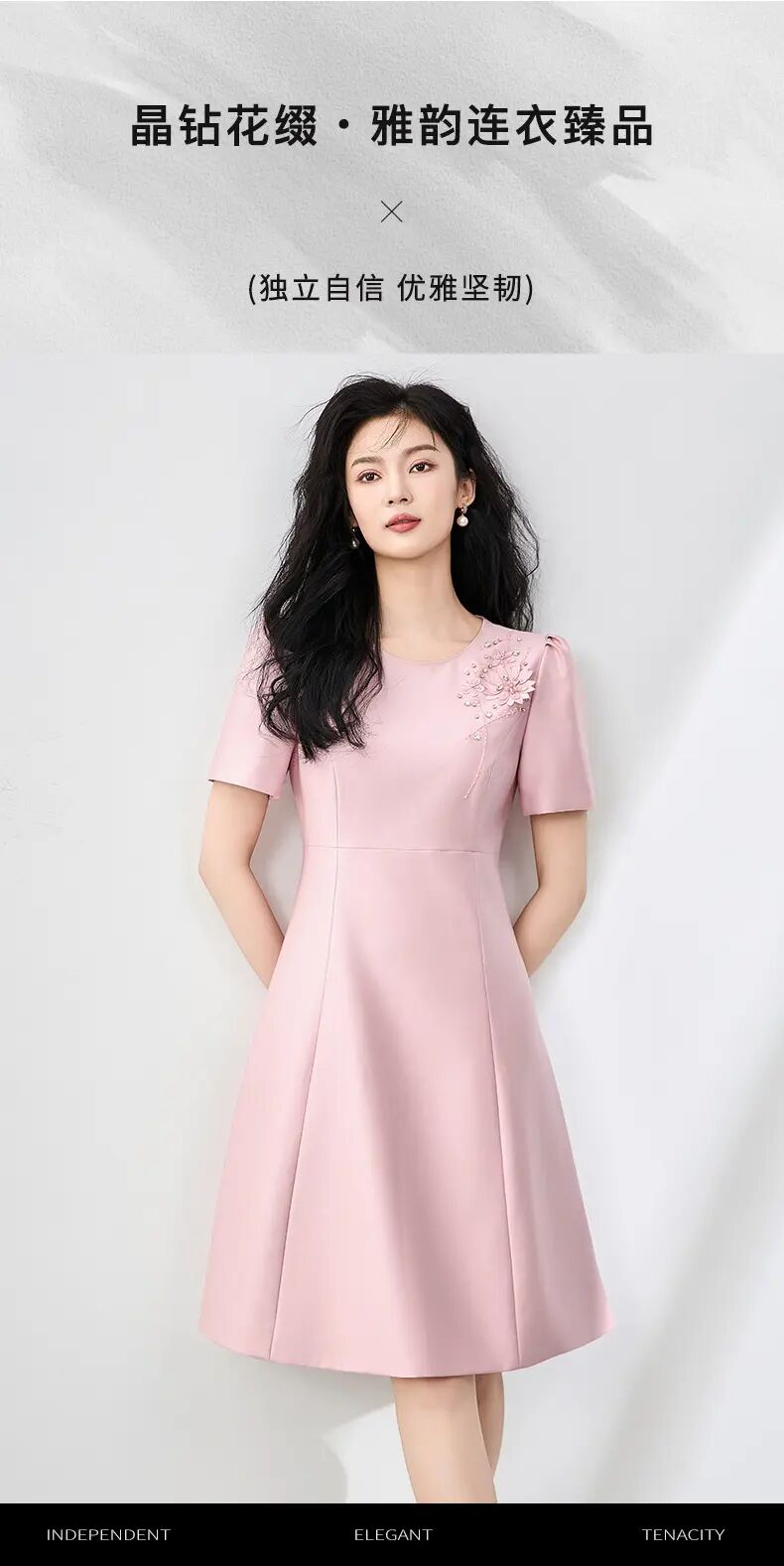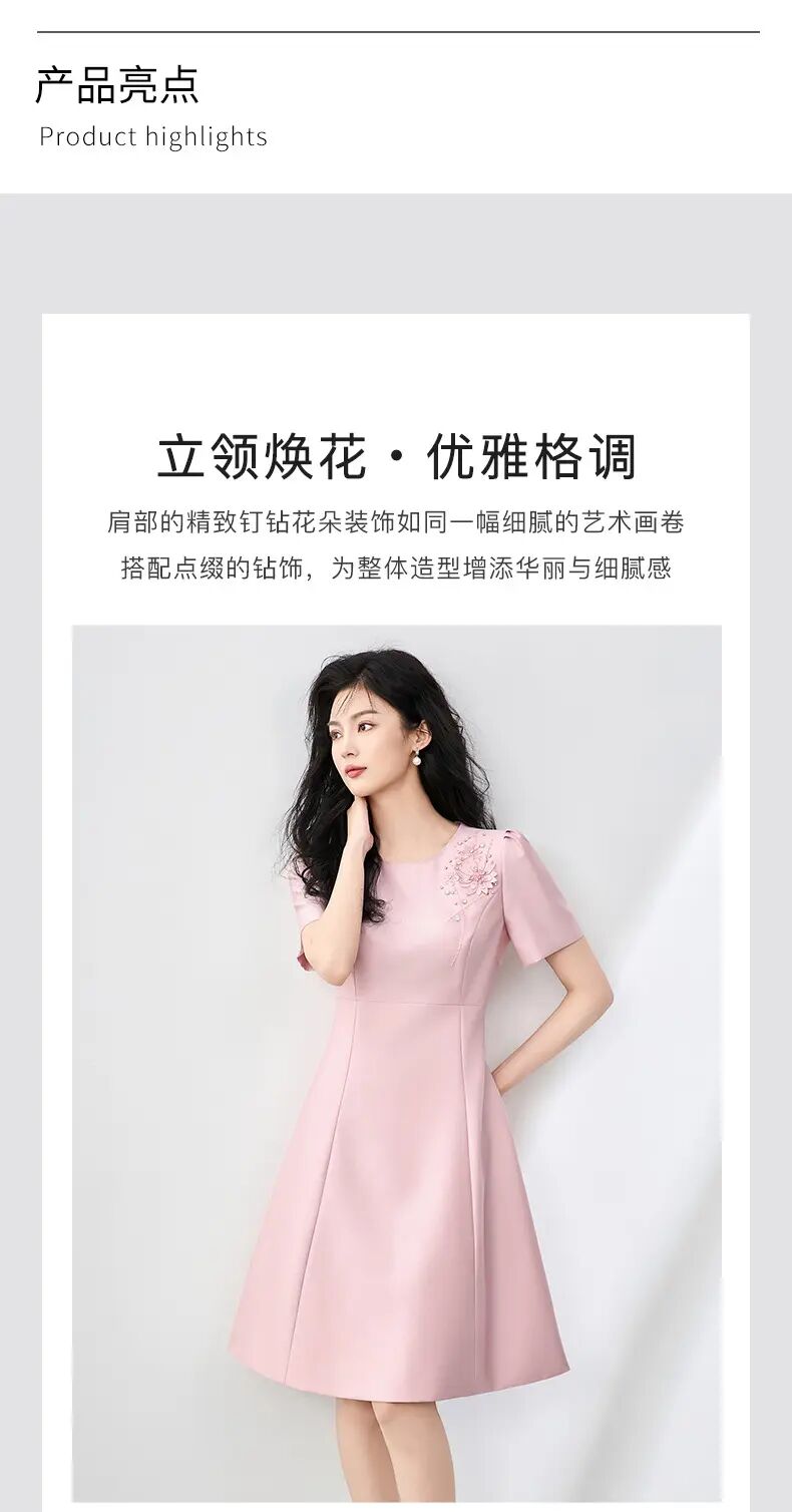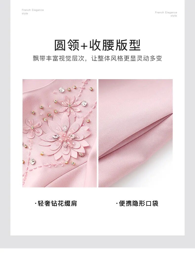 「高货wl」全新升级【铂金会员349/天猫469/差价120】(01621)洛诗琳轻奢气质立体镶钻花连衣裙2025夏季洋气优雅轻礼服裙01621